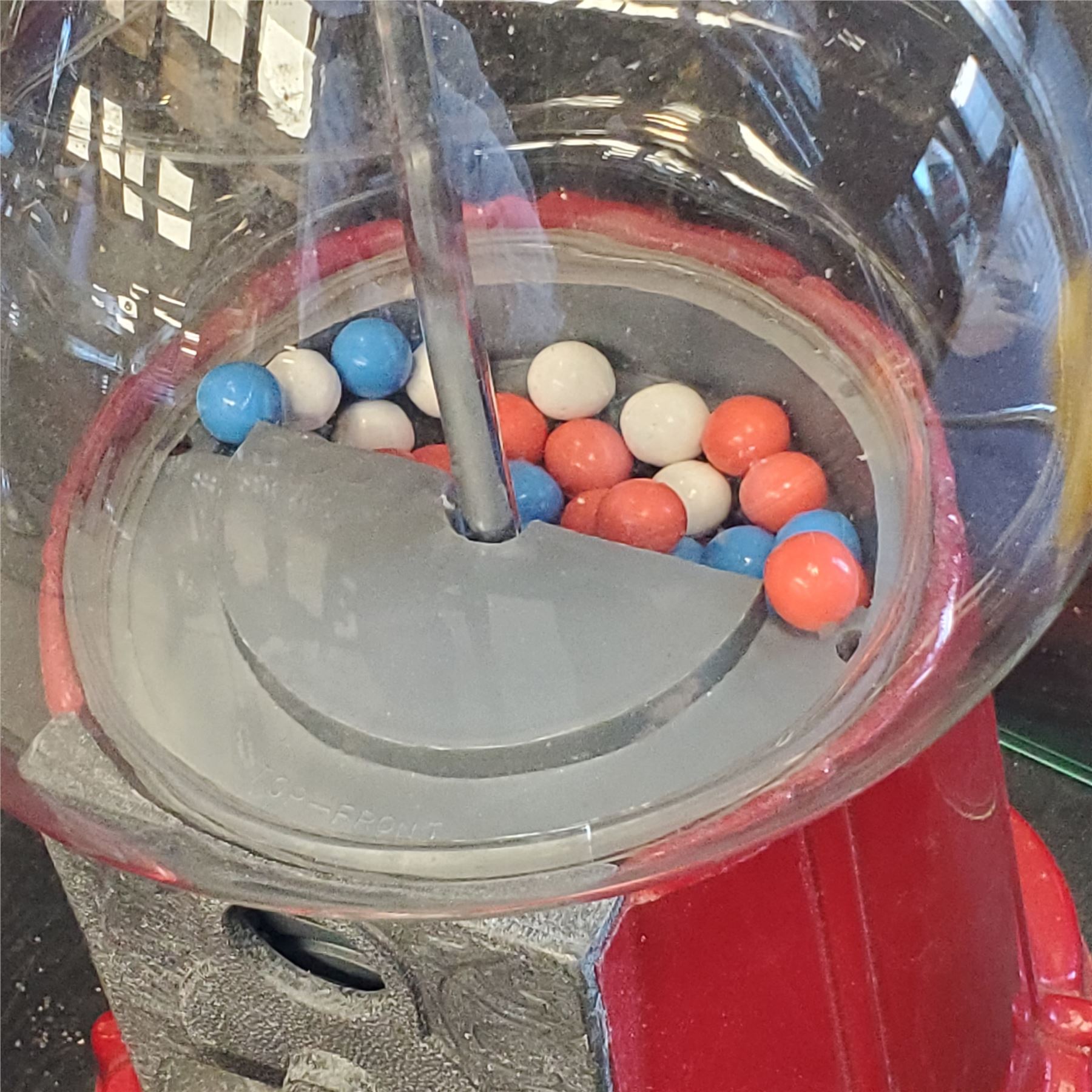 Set of two vintage gumball machines measuring 11-Inch tall and 14-Inch tall respectively. Classic coin-operated designs with metal and glass construction. Suitable for displaying small candies or gumballs. Items are as pictured.