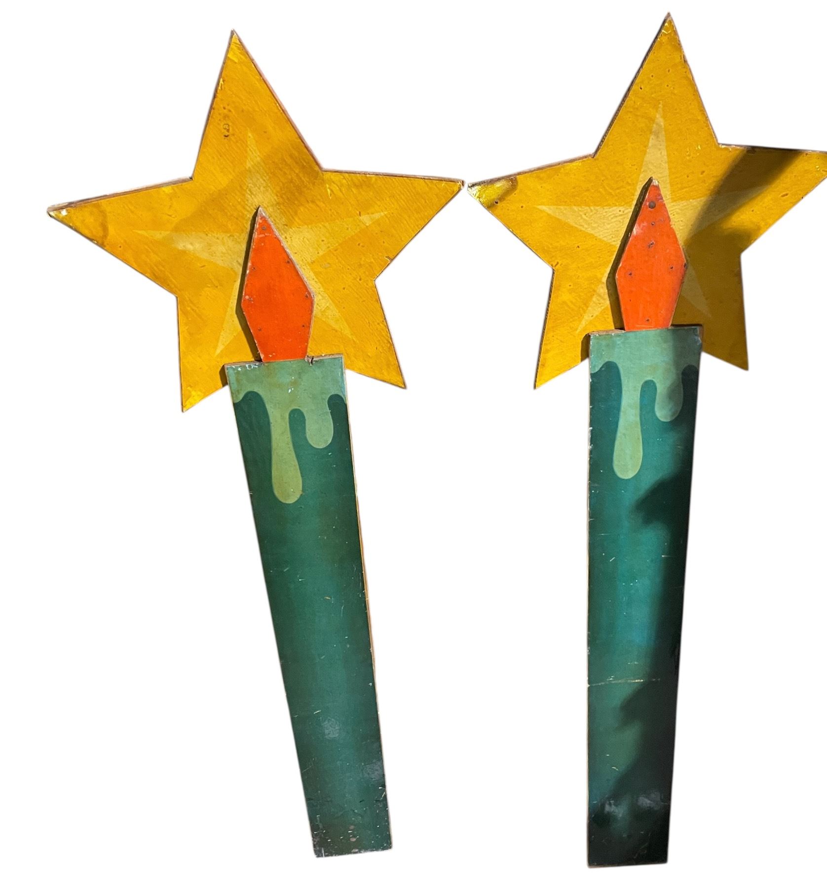 Vintage Hand-Painted Christmas Display Cutouts - Assorted Characters & Candles