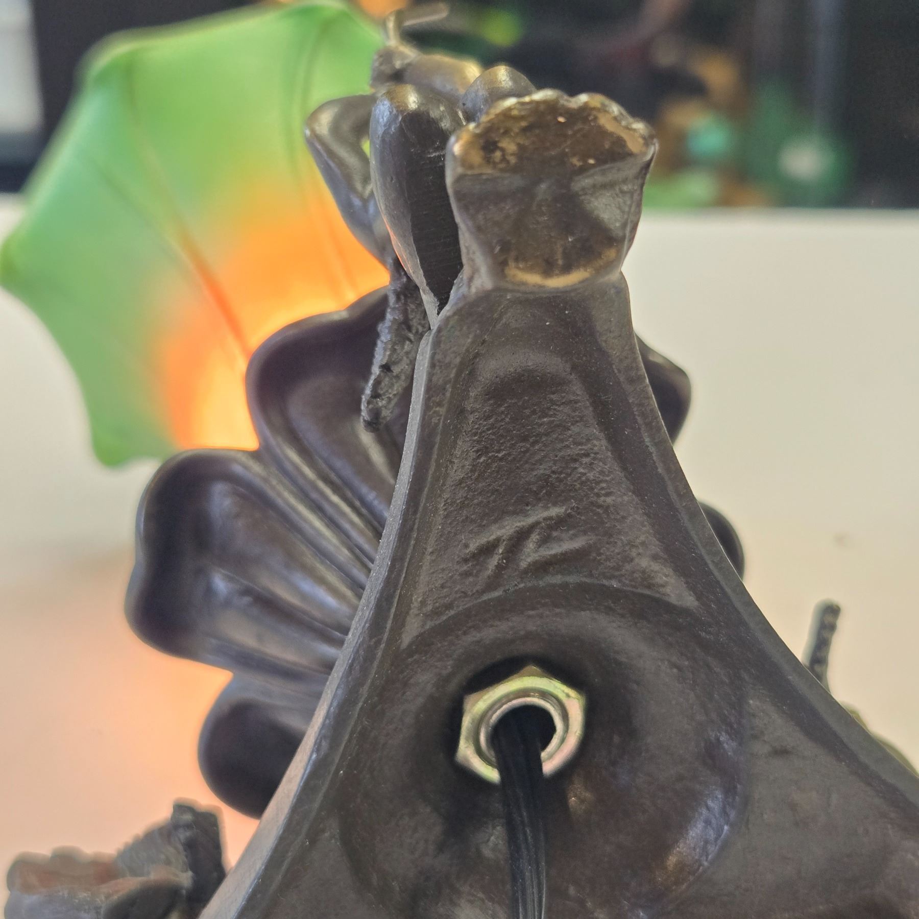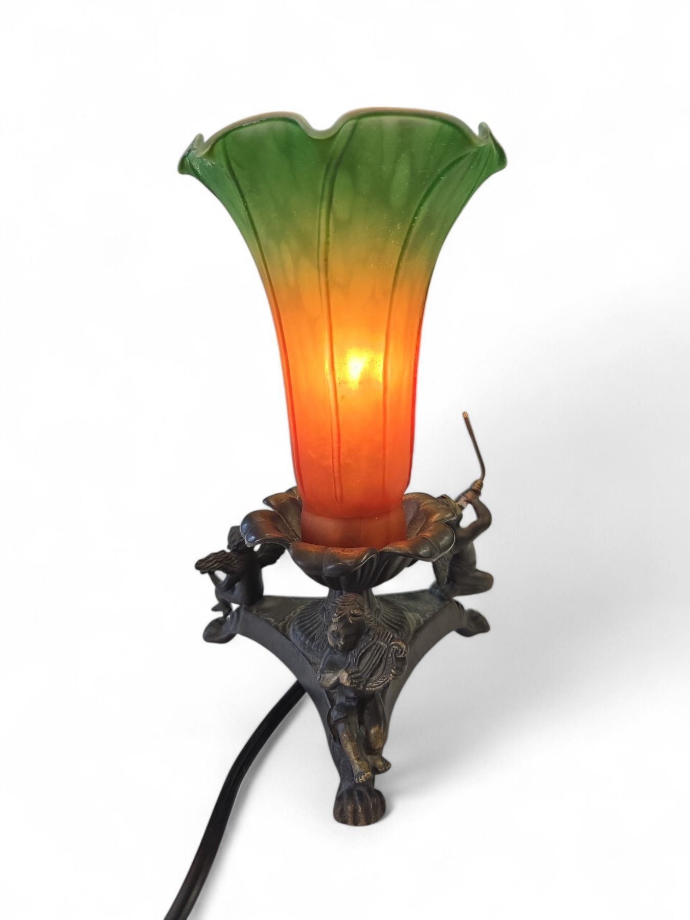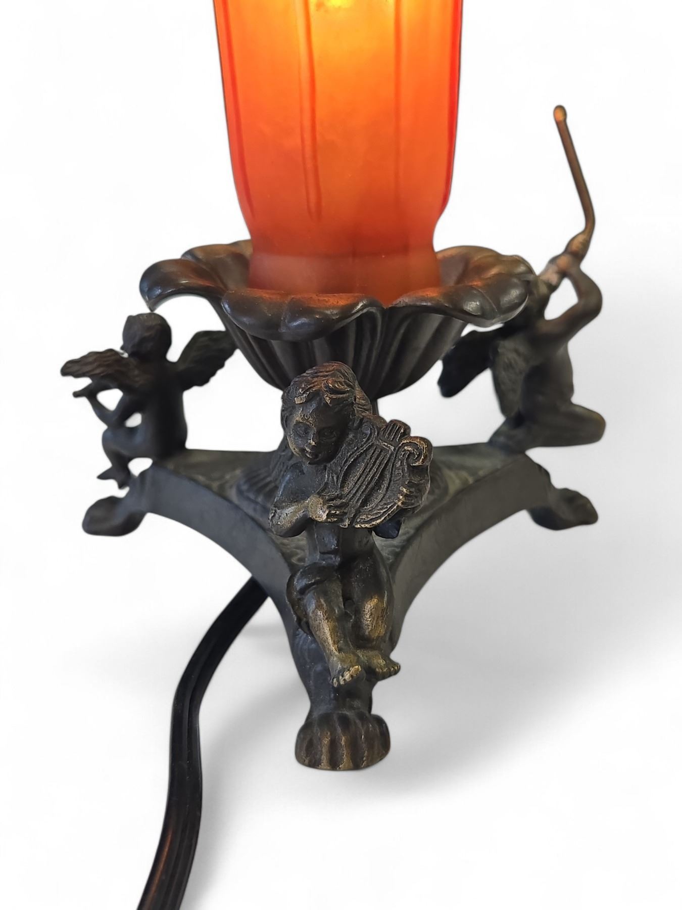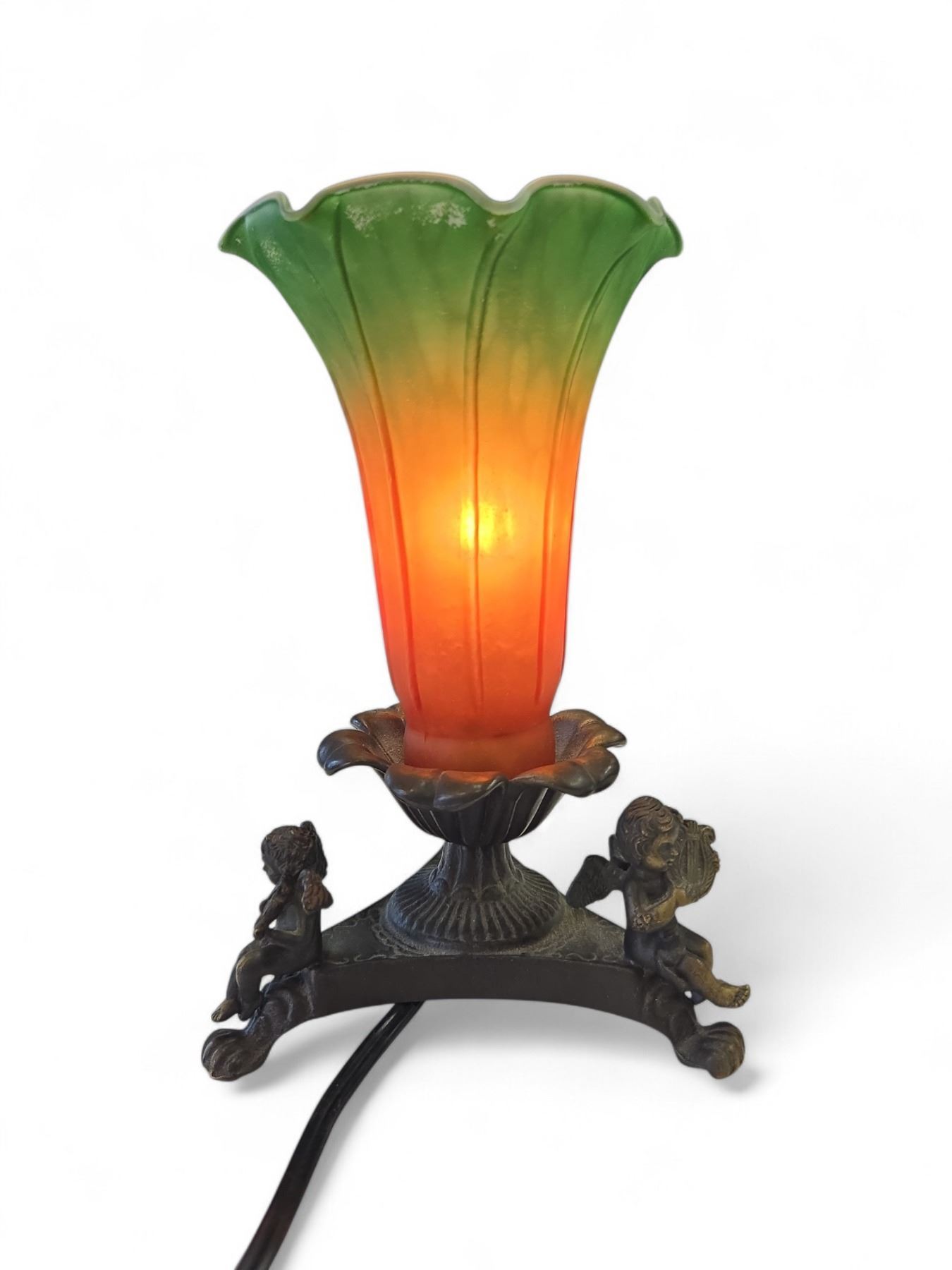 Vintage Hand Painted Tulip Glass Lamp with Angel on the Base (7.5" Tall with a 4" Diameter Shade)