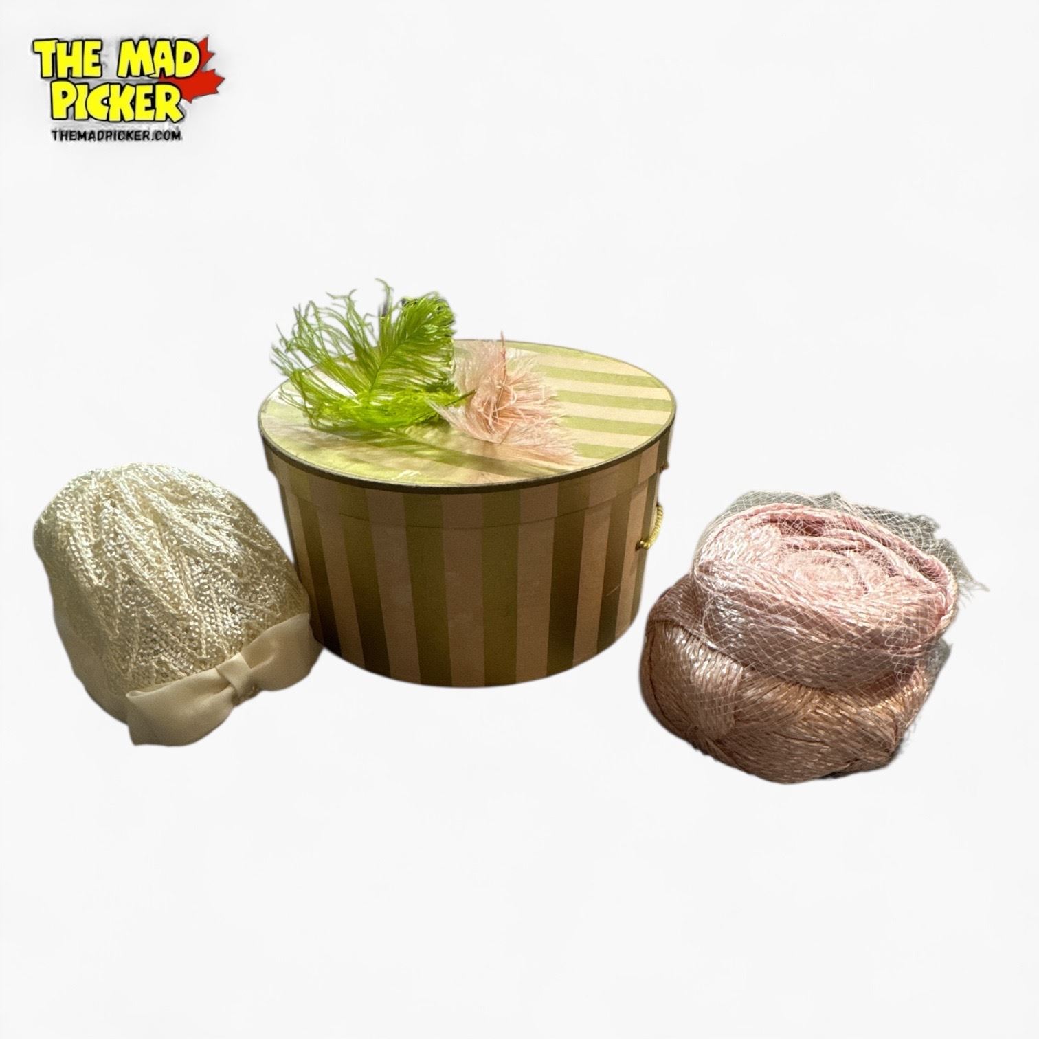 Vintage Hat Box with Elizabeth Hat & Shiaparelli Paris Hat