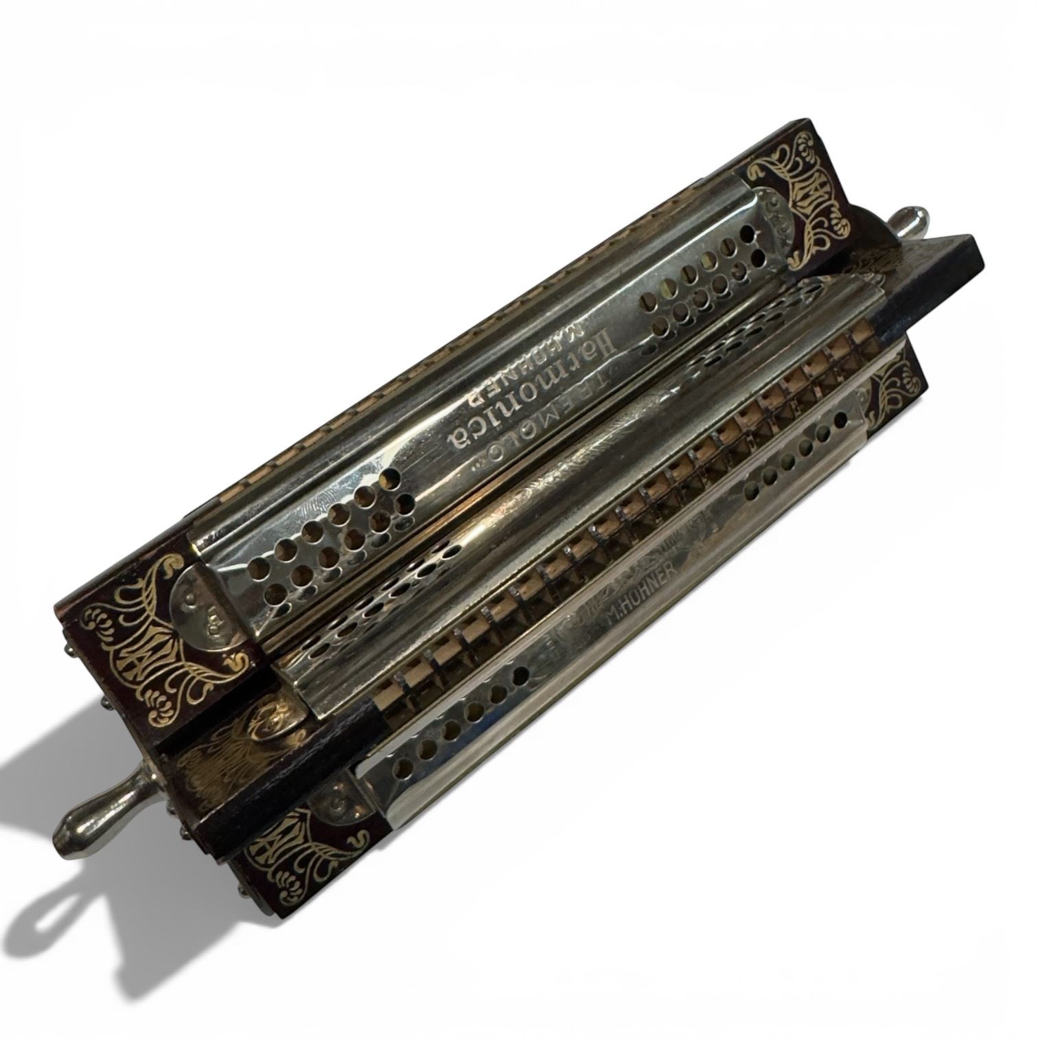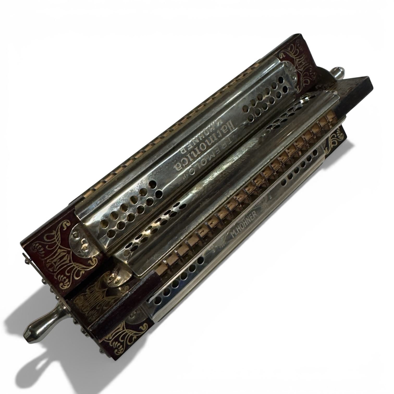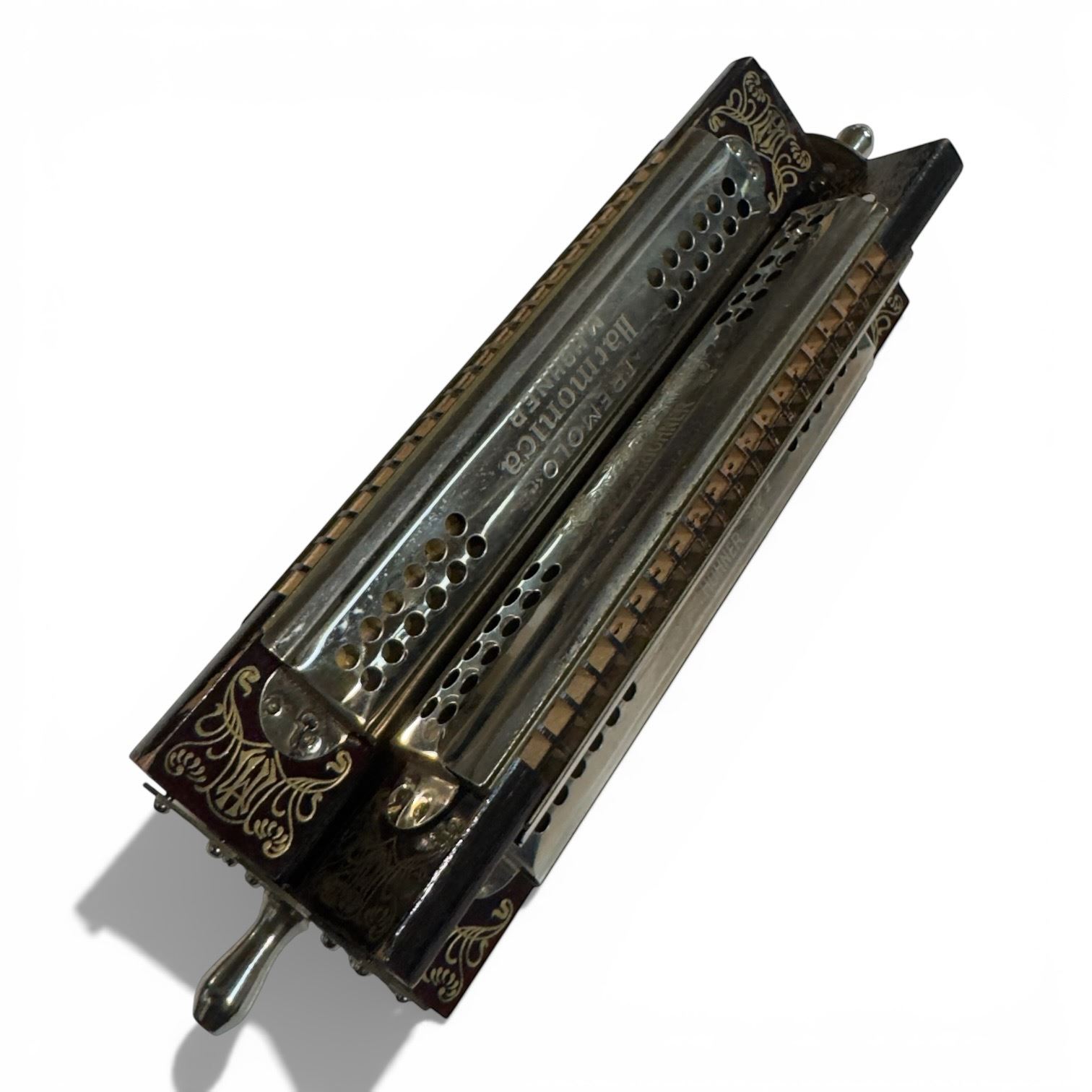 Vintage Horner Tremolo Quartet Harmonica. Includes original box. Tremolo-style harmonica with multiple tone chambers designed for distinct sound effects. Box features branding consistent with era of manufacture. Item is as pictured.