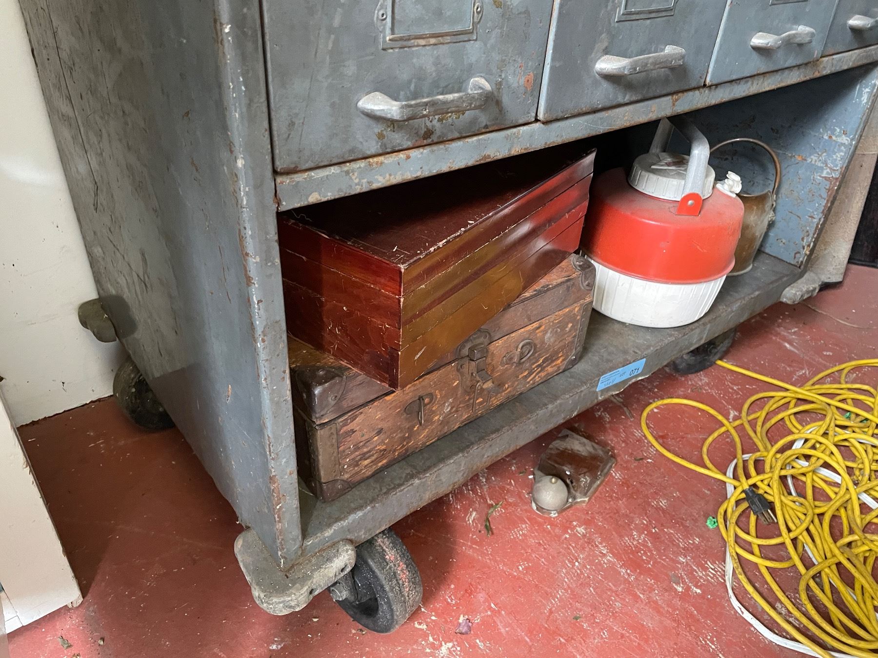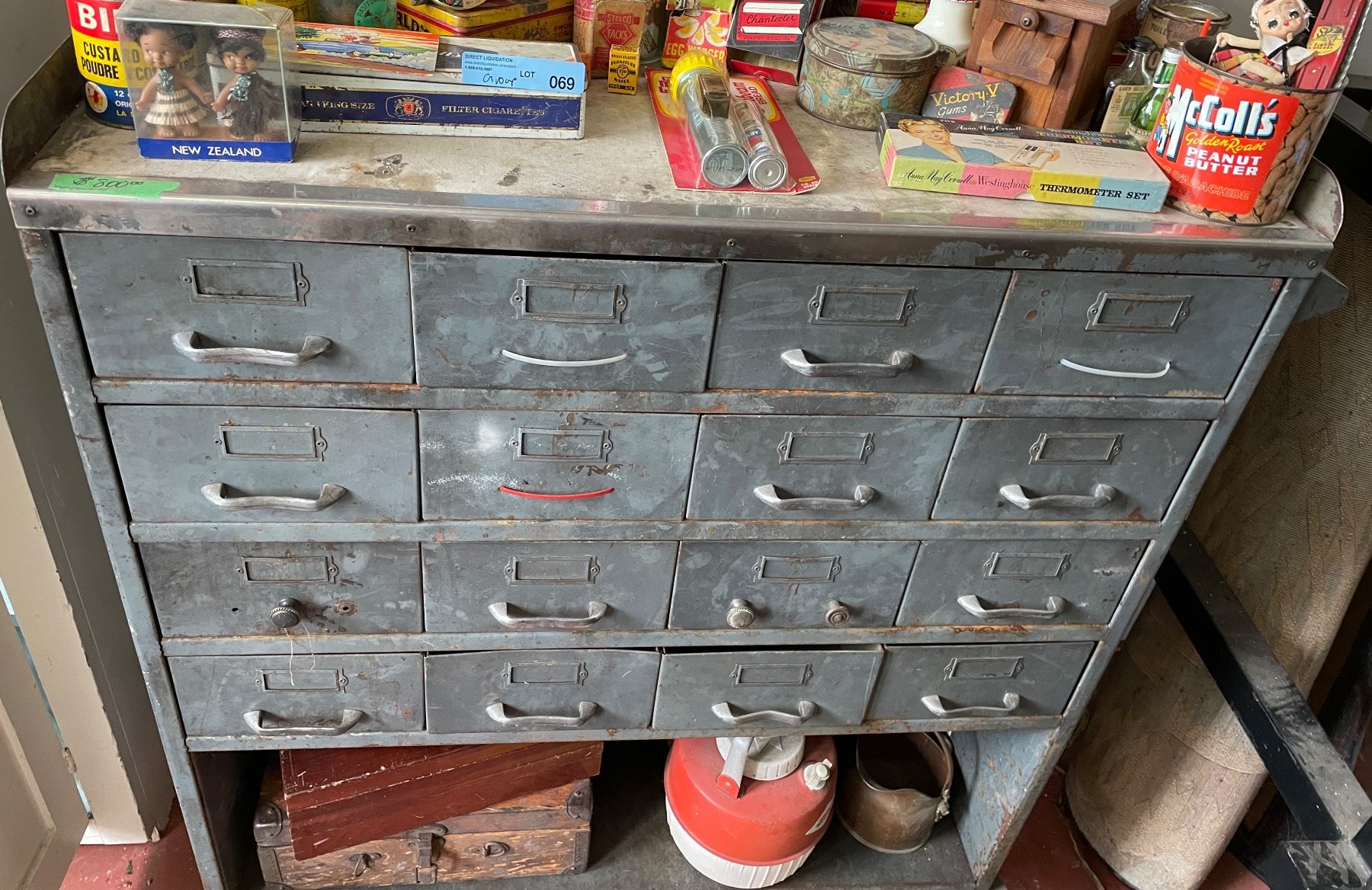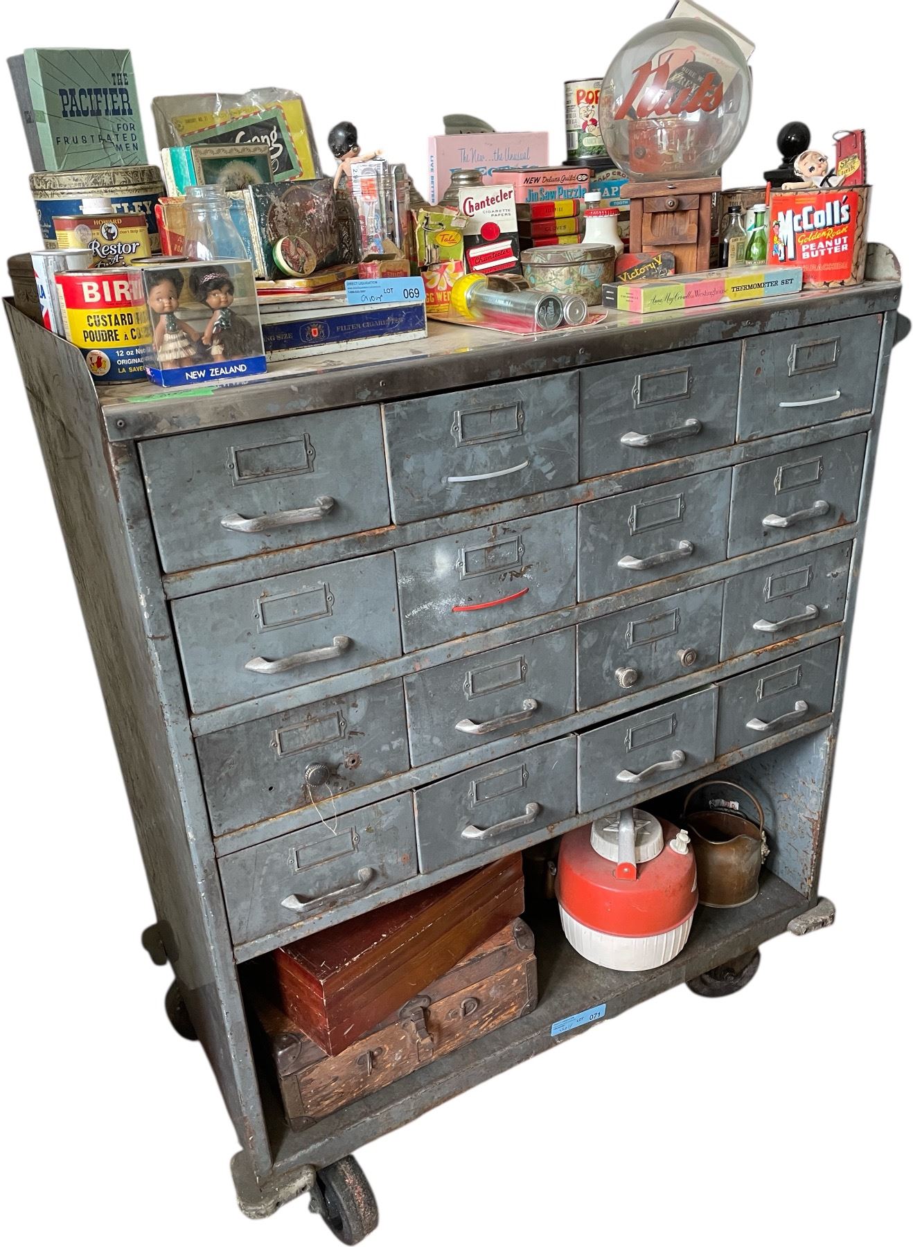 Vintage Industrial Steel Parts Cabinet, Multi-Drawer Hardware Organizer on Wheels
