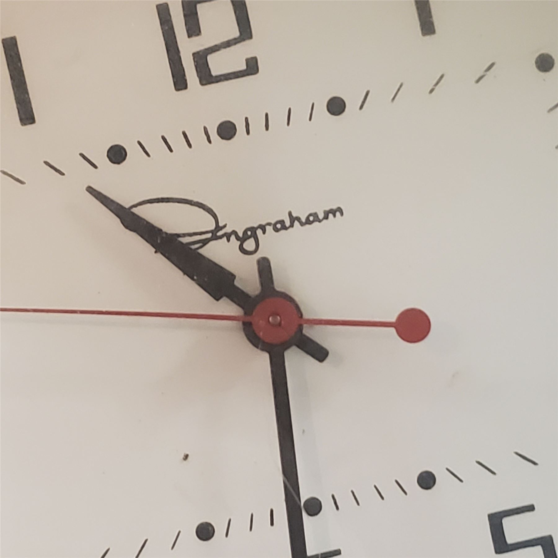Vintage Ingraham electric wall clock measuring 7.5x6.25-Inch. Features electric-powered mechanism and classic design. Ingraham clocks were known for their durable builds and reliable performance. Item is as pictured.
