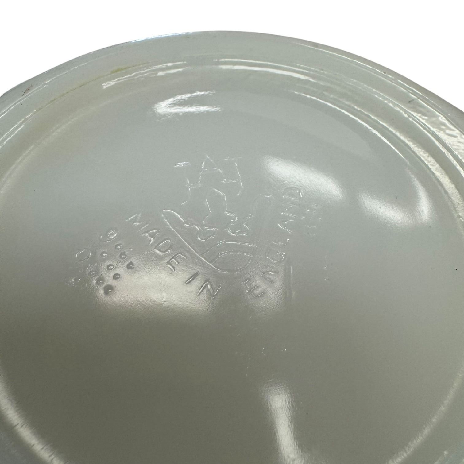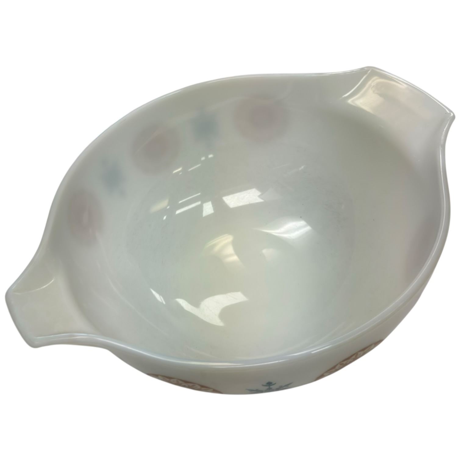 Vintage JAJ Pyrex Cinderella bowl featuring the 'Morning Star' pattern, likely produced in England during the 1960s-1970s. Bowl measures 8.75-Inch in diameter. Known for its iconic design and durable material, JAJ Pyrex was widely popular during this era. Item is as pictured. No chips