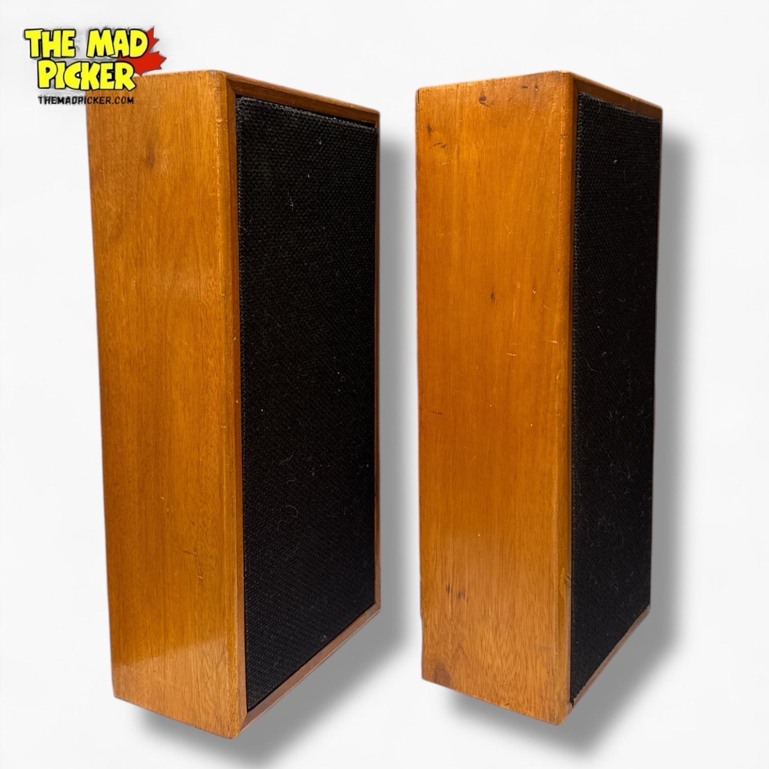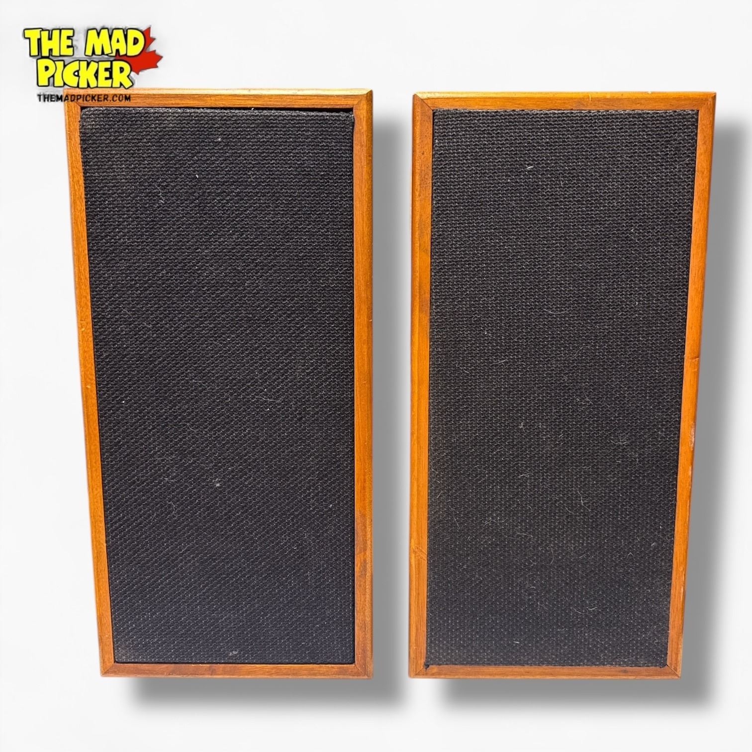 Pair of vintage JVC speakers with wooden cabinets, unmarked model. Likely produced during the 1970s based on design style. Features integrated grille and standard speaker terminals. No visible branding or labels but attributed to JVC due to construction and materials consistent with the brand's vintage models.