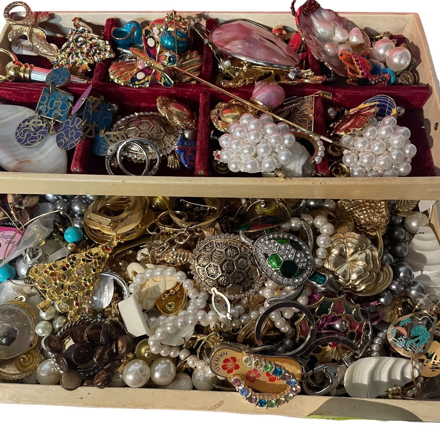 Vintage Jewelry Box Full of Jewelry & the Occasional Trinket