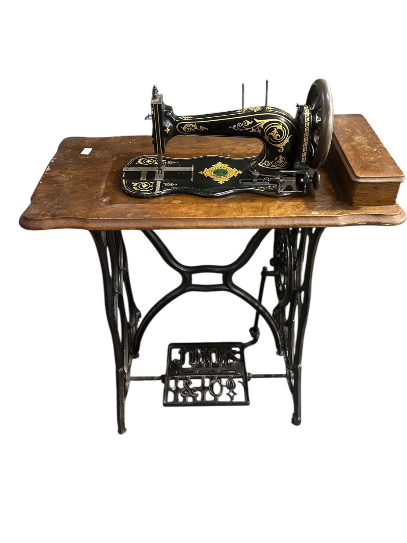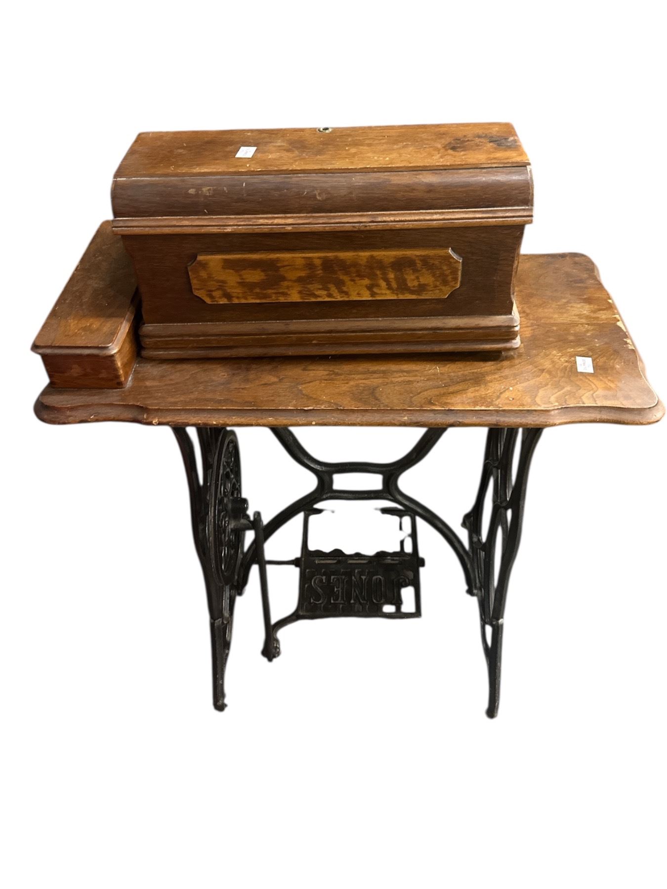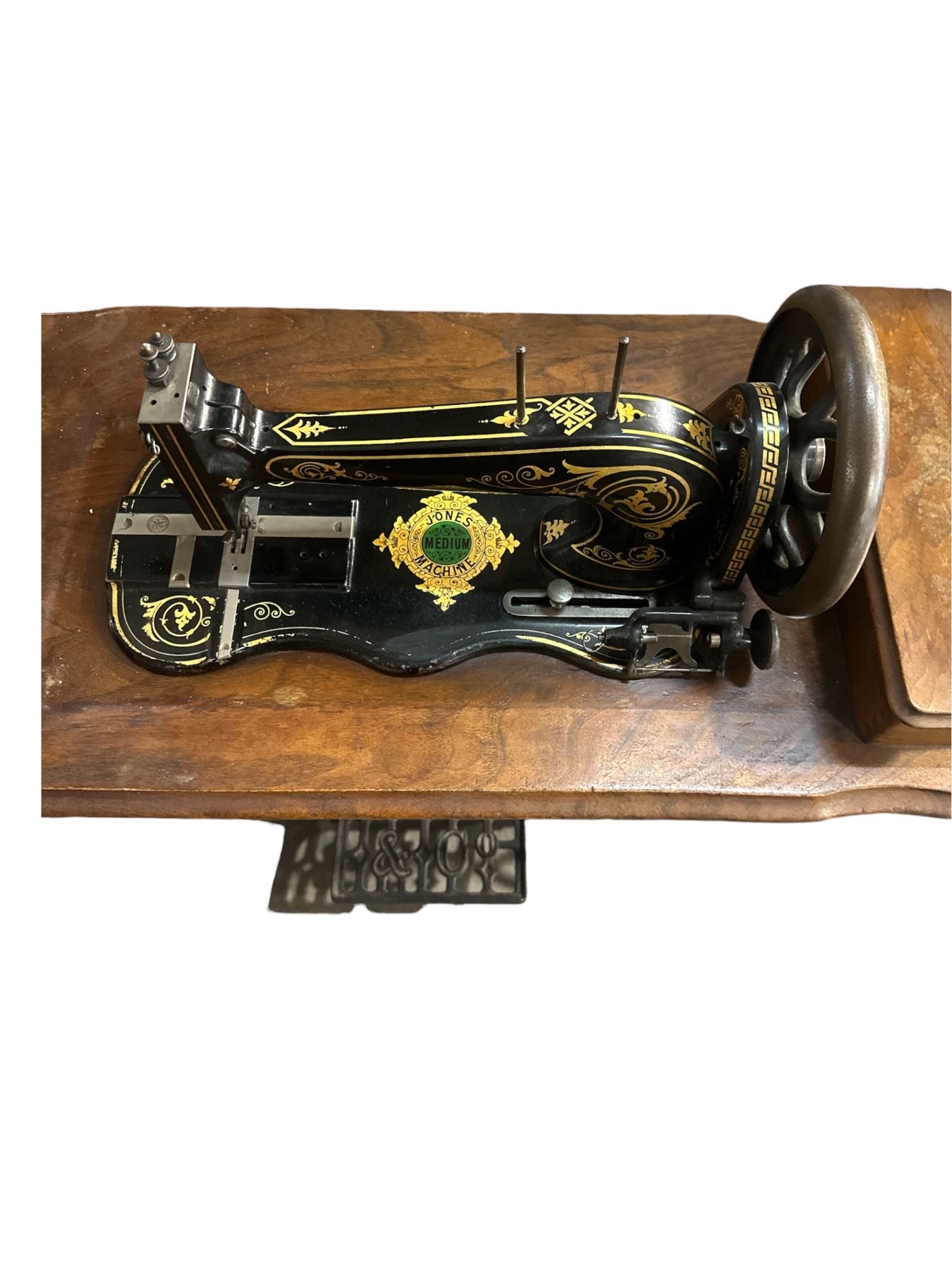 Vintage Jones Medium Sewing Machine with Table and Cover