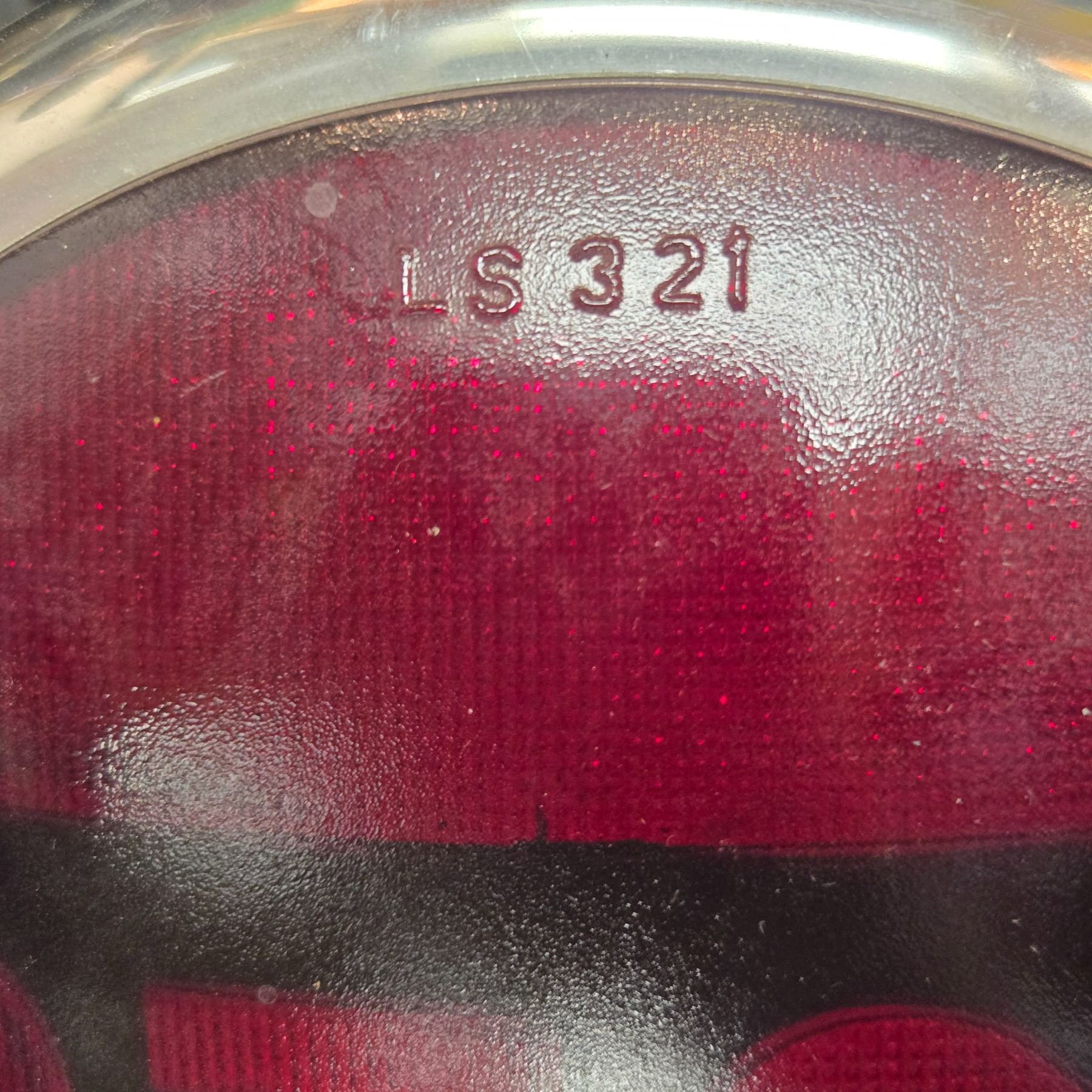 Pair of vintage jumbo red stop light lenses, each with a 7-inch diameter. Designed for 12V systems. The lenses are sold without original box or mounting hardware. Suitable for automotive or industrial applications requiring stop lights. Condition is consistent with vintage items.