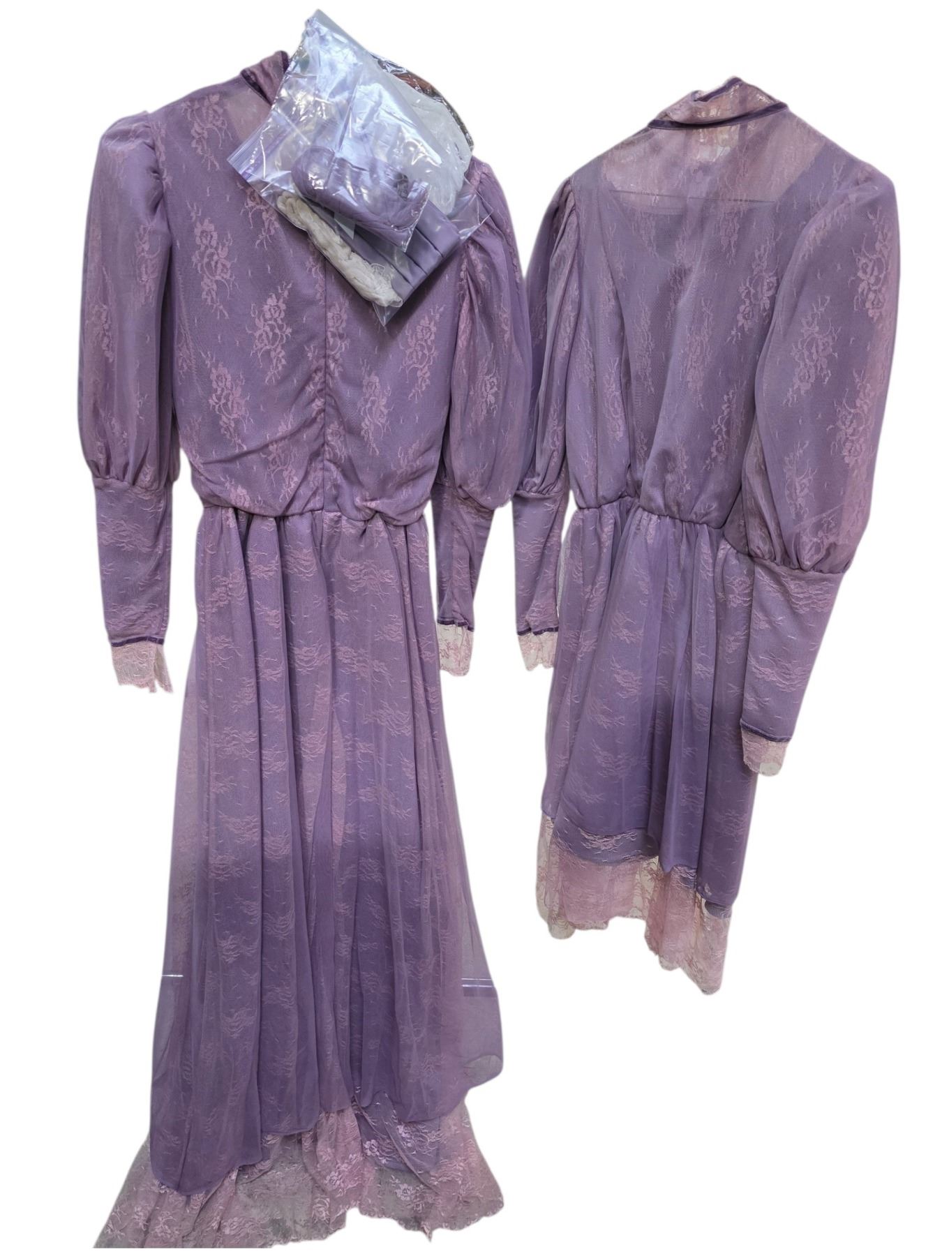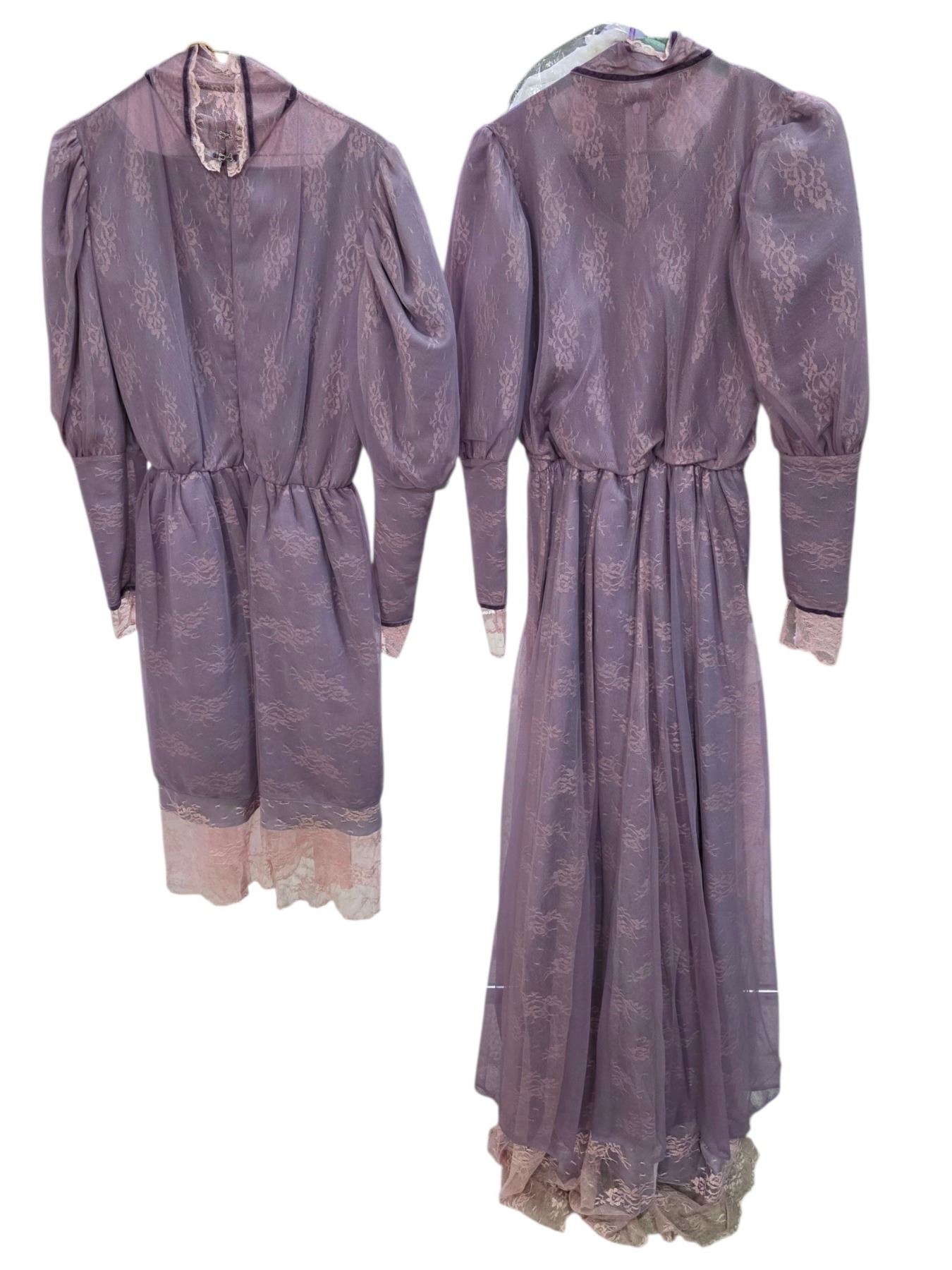 Vintage Lavender Lace Long Sleeve Dress with Sheer Overlay & High Neck Detail - Film/TV Wardrobe