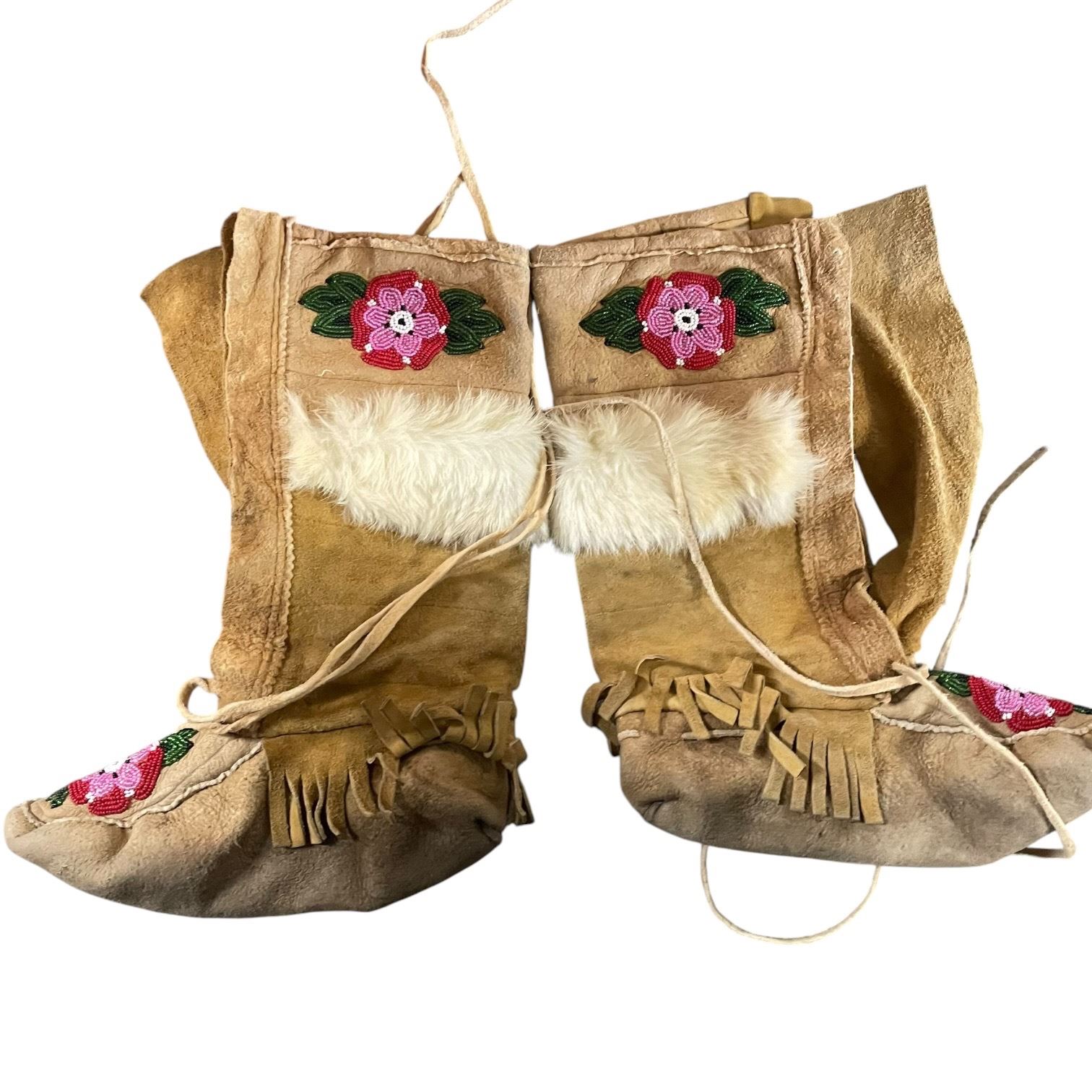 Vintage Leather Indigenous First Nations Beaded Leather Moccasins