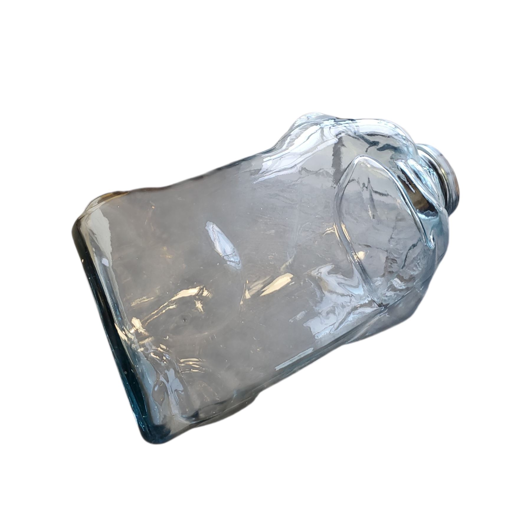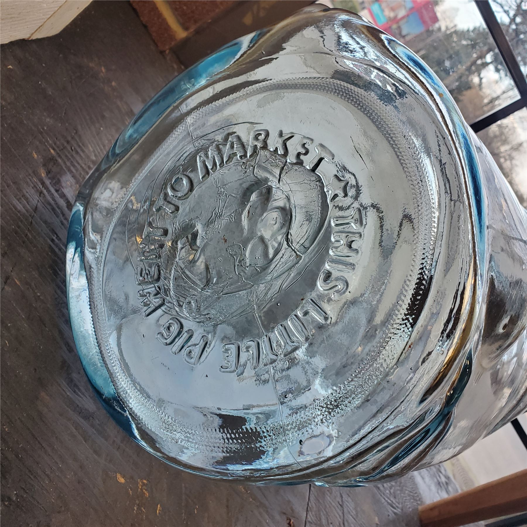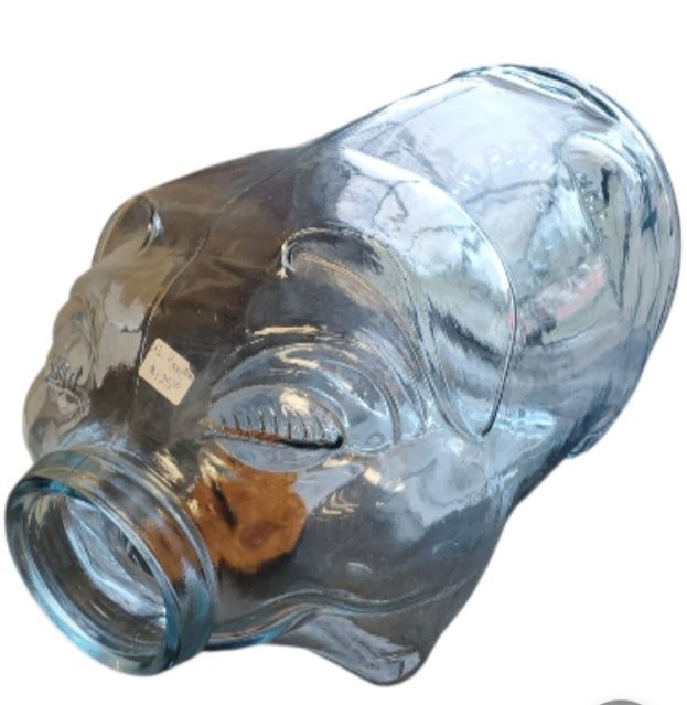 Vintage Libbey glass container featuring the 'This Little Pig Went to Market' design. Holds up to 5 gallons and measures 18.5-Inch in length. Crafted from durable clear glass, this item showcases distinctive artwork on its surface. Item is as pictured.
