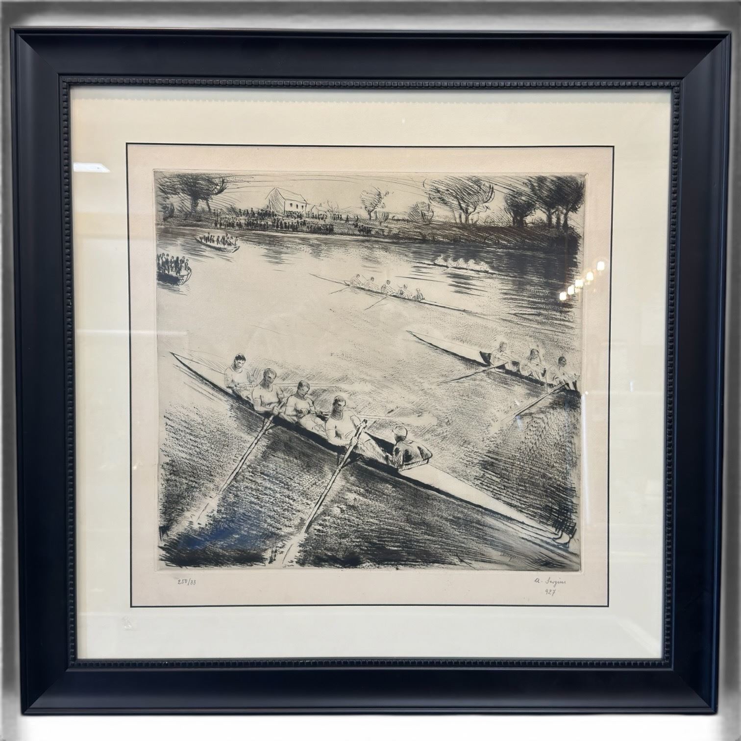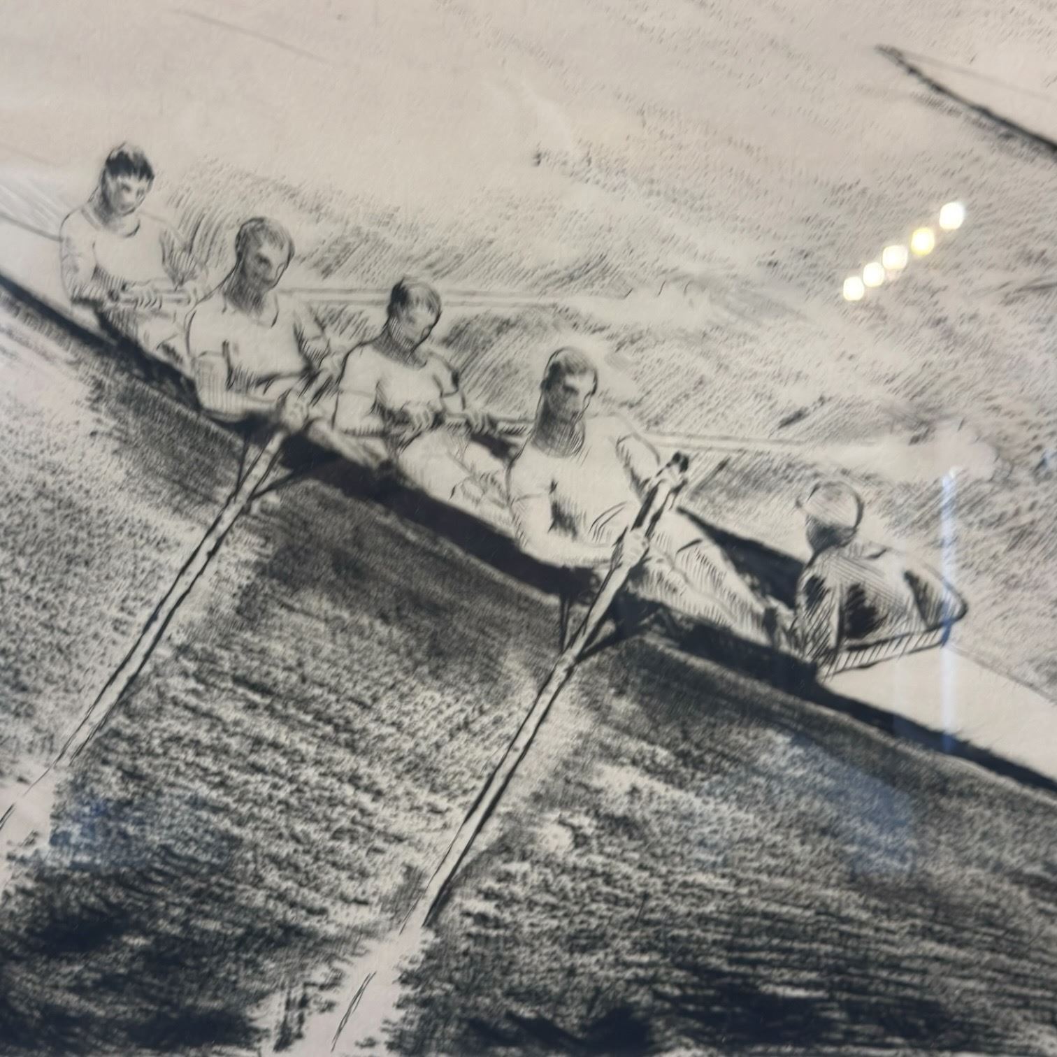 Vintage Ltd. Edition Etching of Rowers #33/250 Signature is possible A. Sergini 927 (frame dimensions 26" x 26")