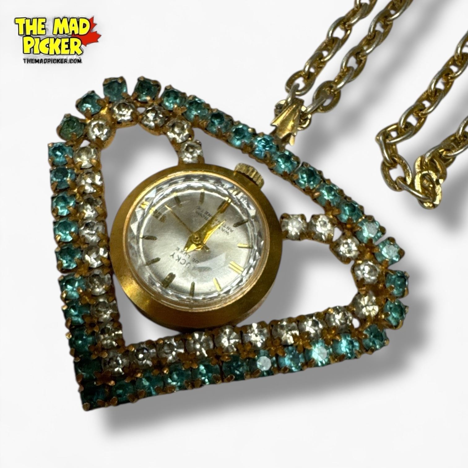 Vintage Lucky DeLuxe Rhinestone Pendant Watch (pendant is 2" x 2.5")