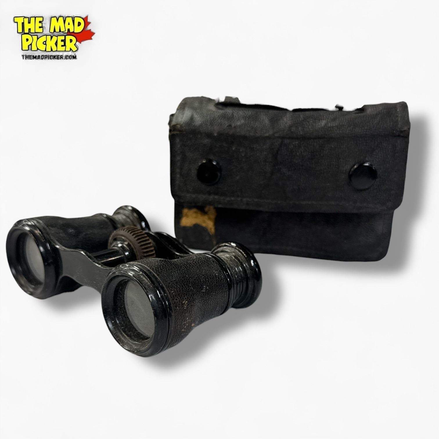 Vintage Mini Binoculars with Original Leather Pouch - 1" x 2.5" x 4"