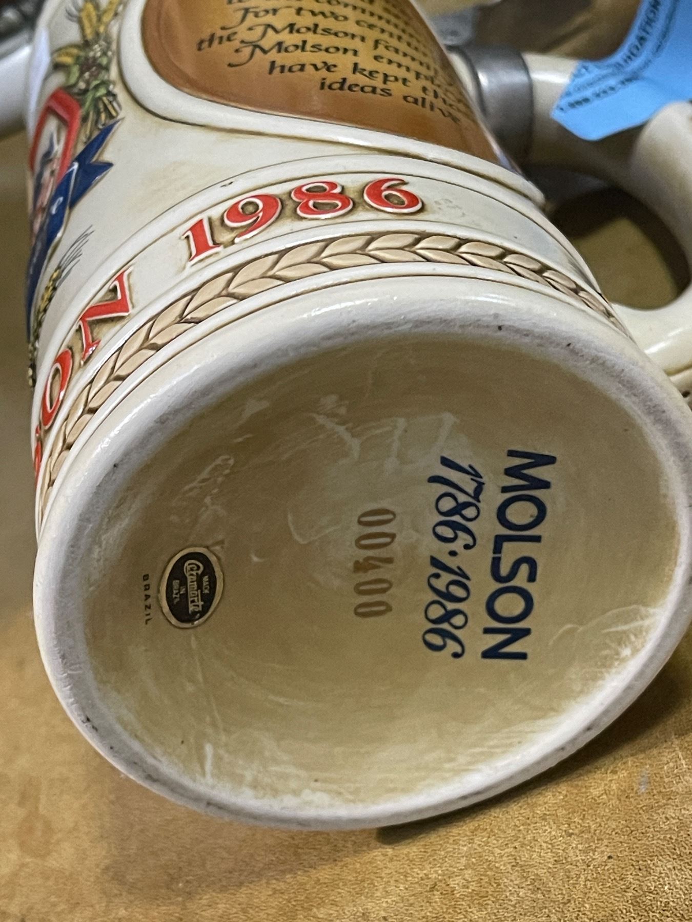 Vintage Molson Beer Stein: 1786-1986 200th Anniversary Lidded Mug