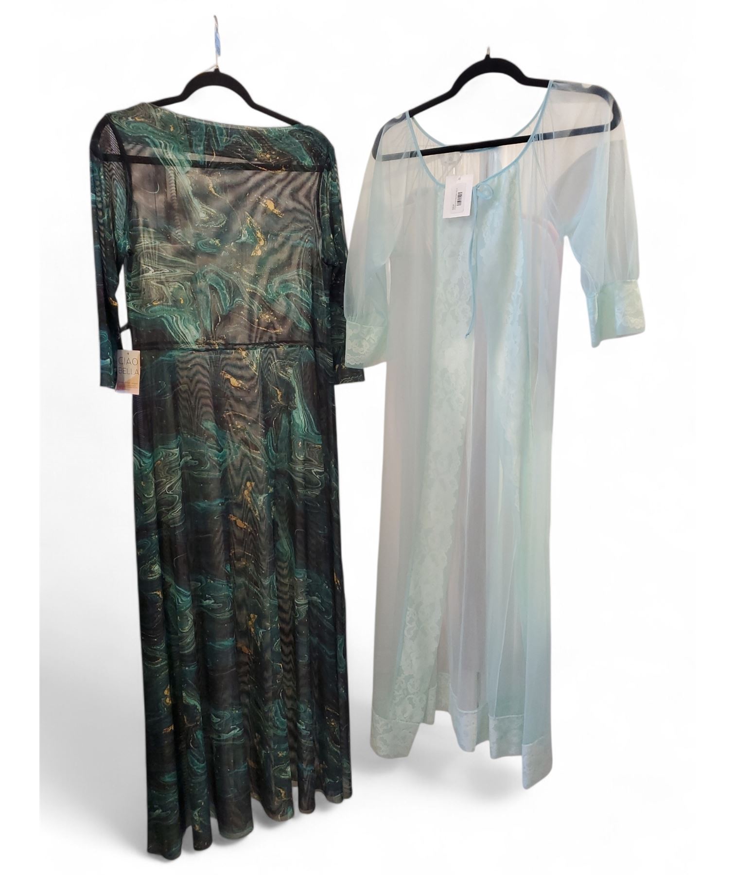 Vintage Movie Star Mint Lace Robe & Green Patterned Mesh Maxi Dress - Size S, R.V $119.99