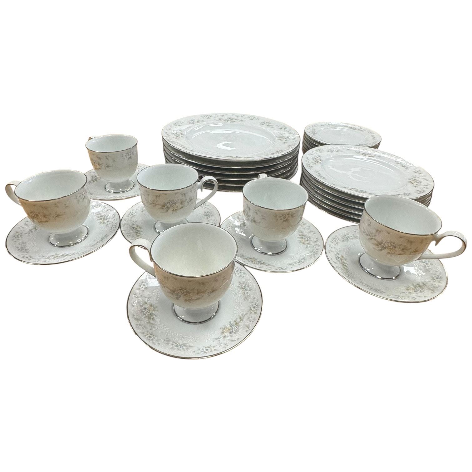 Vintage Noritake bone china set featuring the 'Patience' Pattern. Includes 31 pieces comprising plates, teacups, saucers, and side plates. Fine bone china design characteristic of Noritake craftsmanship. Item is as pictured.