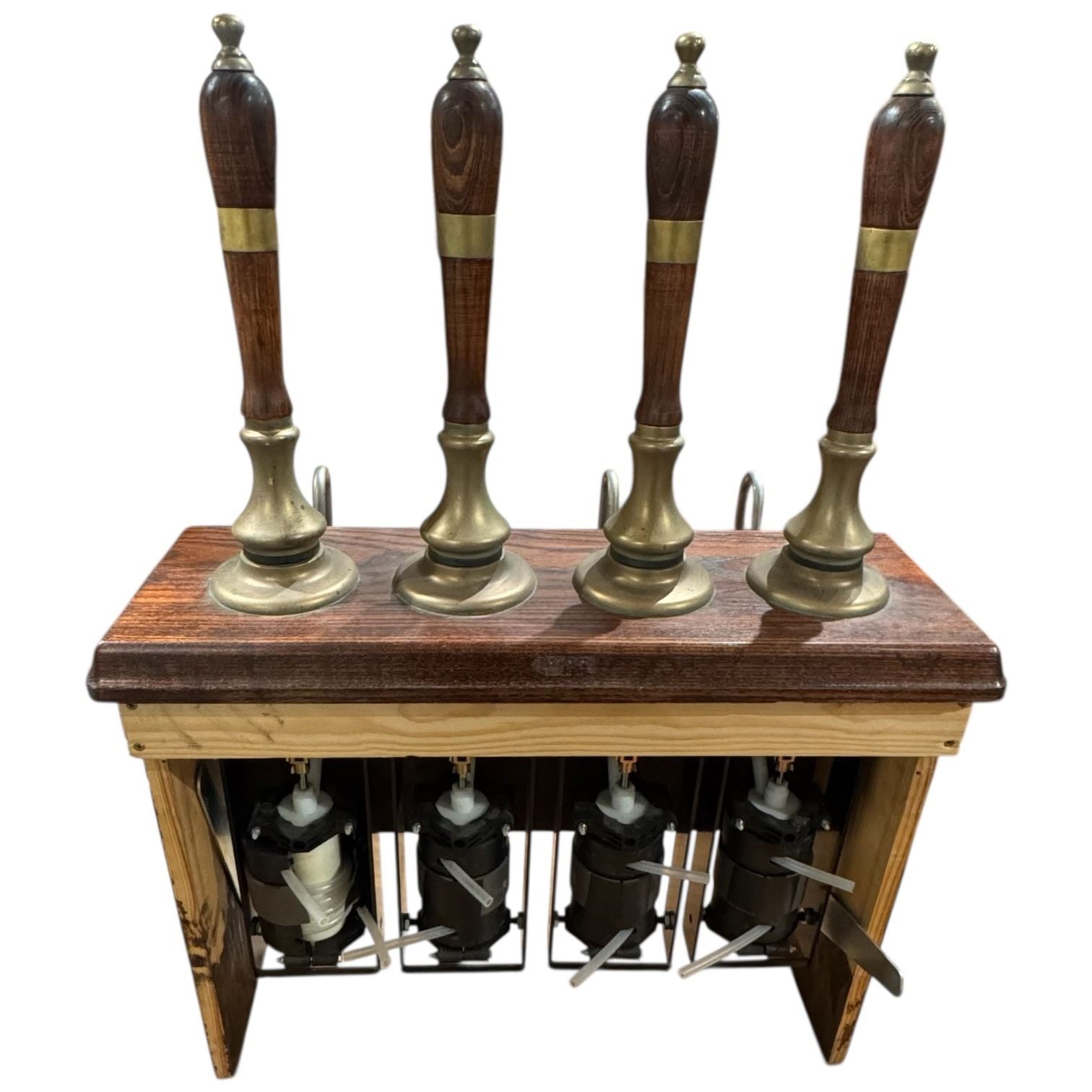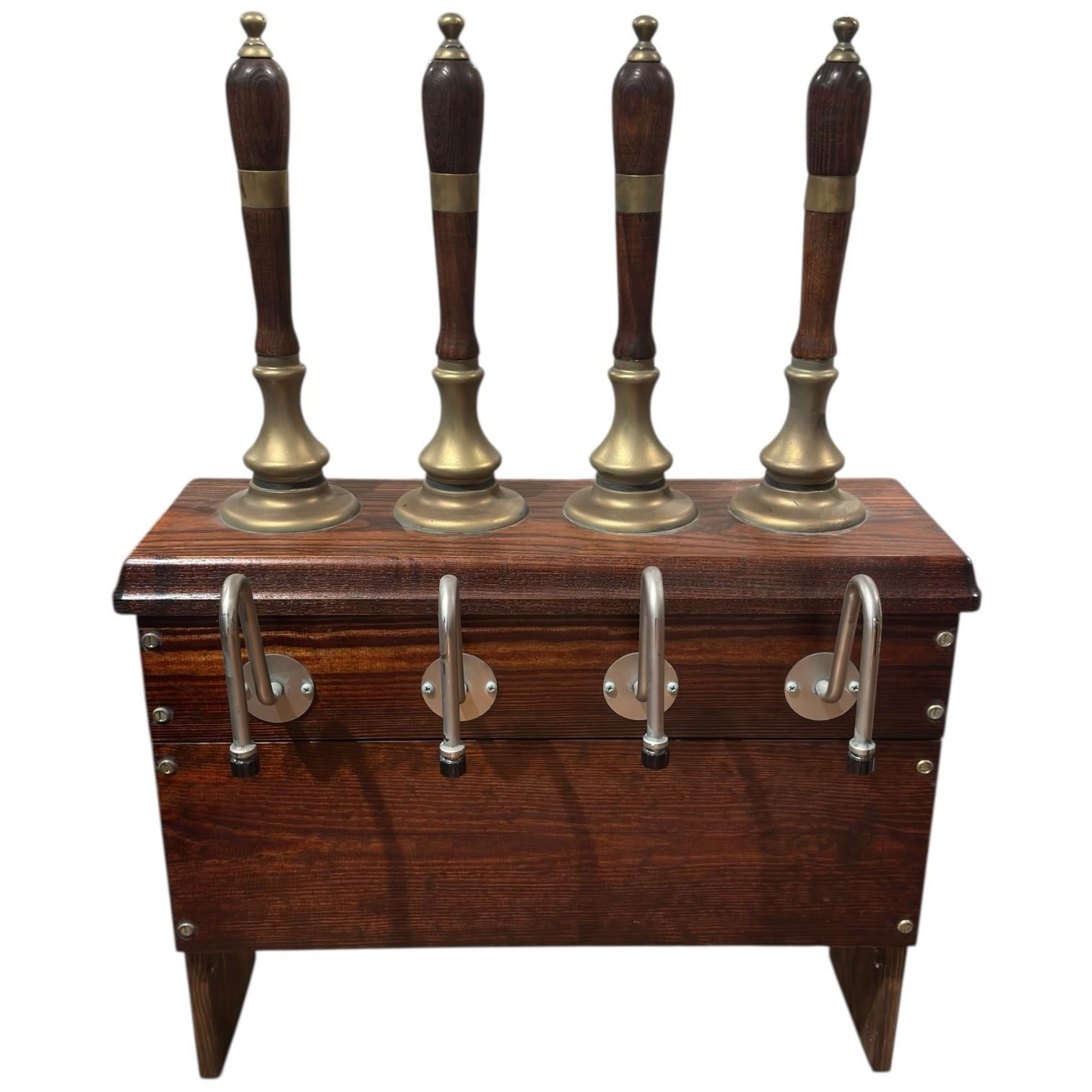 Vintage Oak Beer Engine with 4 Oak and Brass Beer Pulls