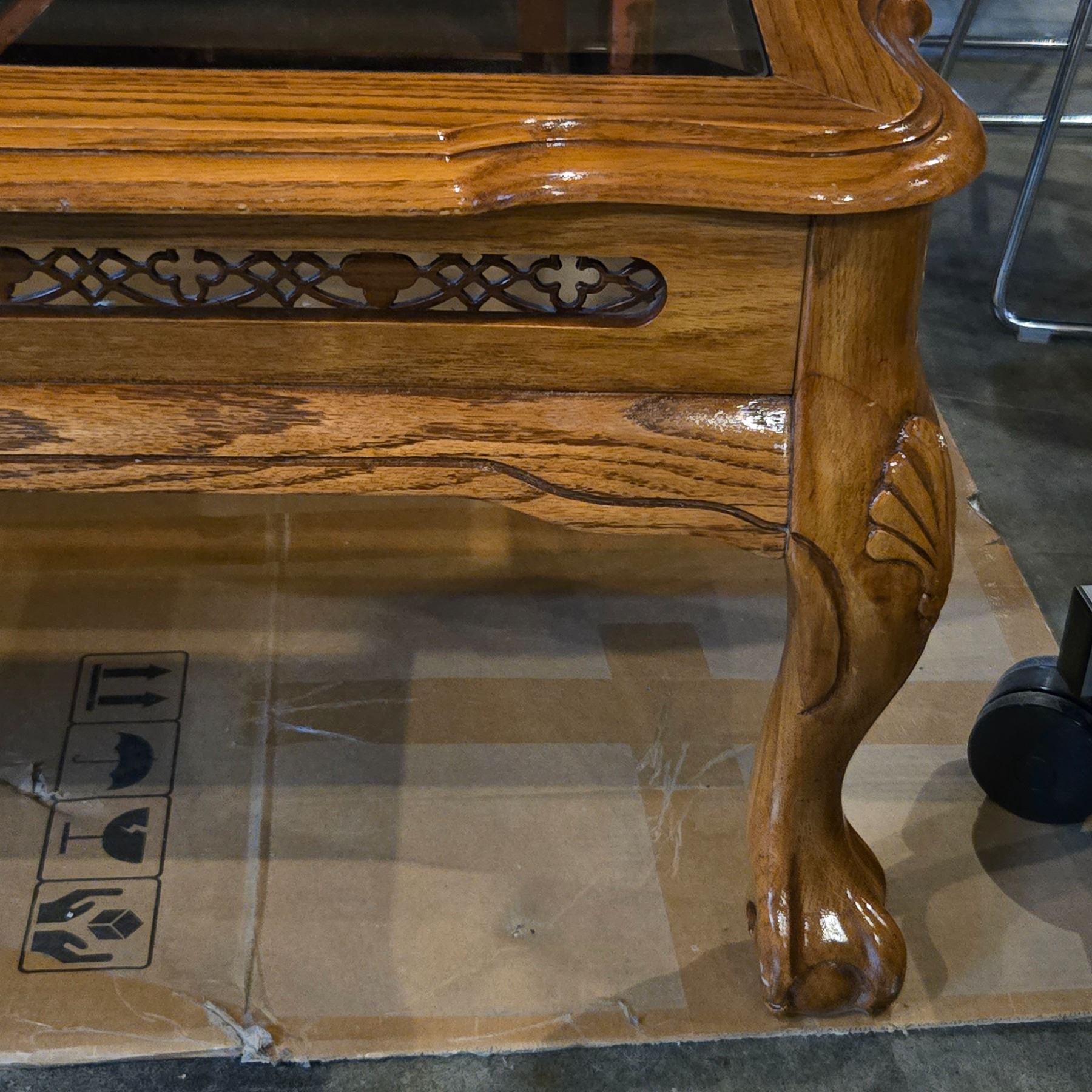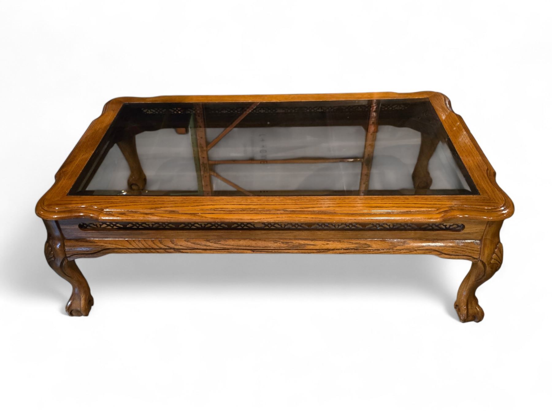 Vintage Oak Coffee Table w/ Glass Top - 48x28x16.5"
