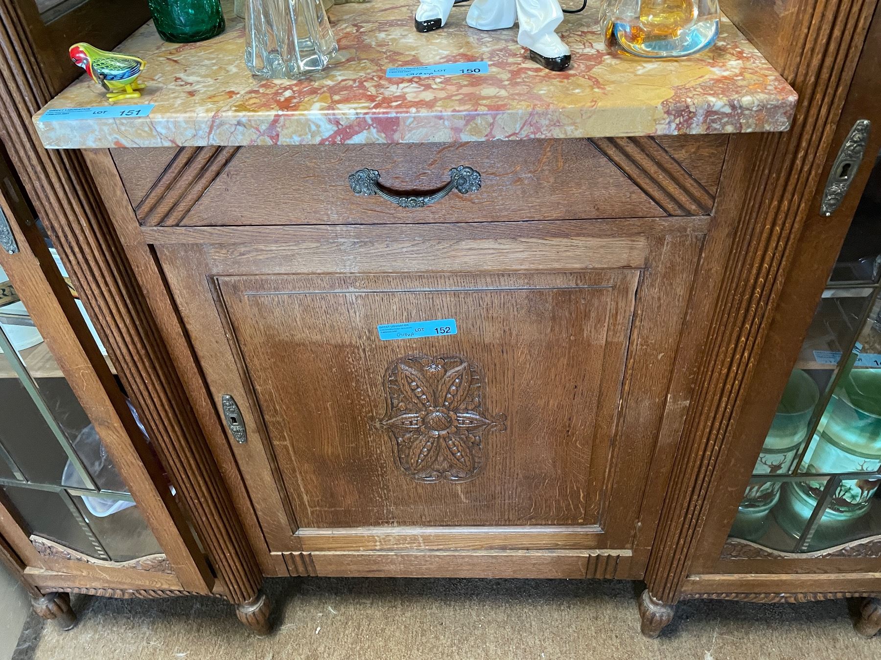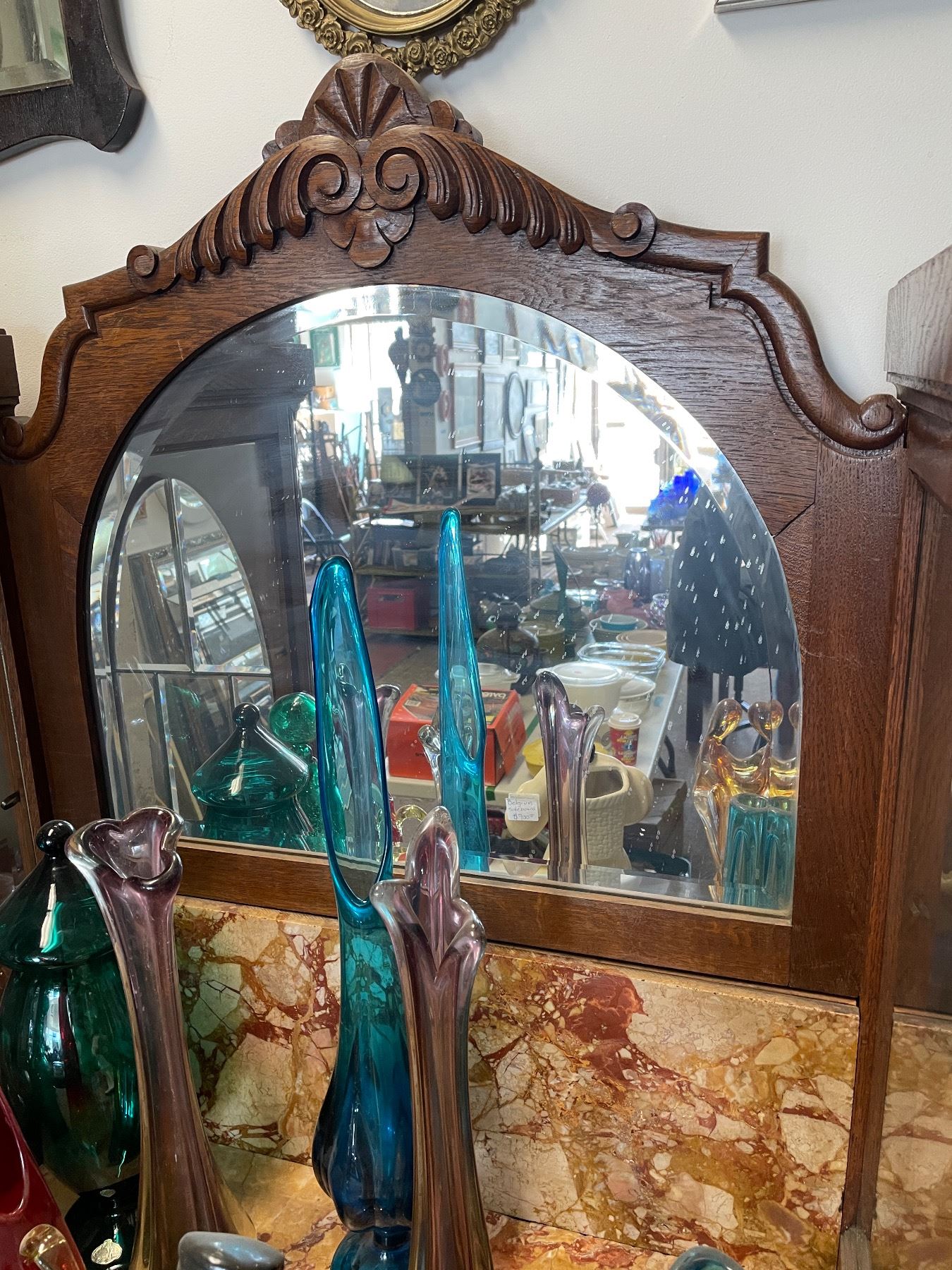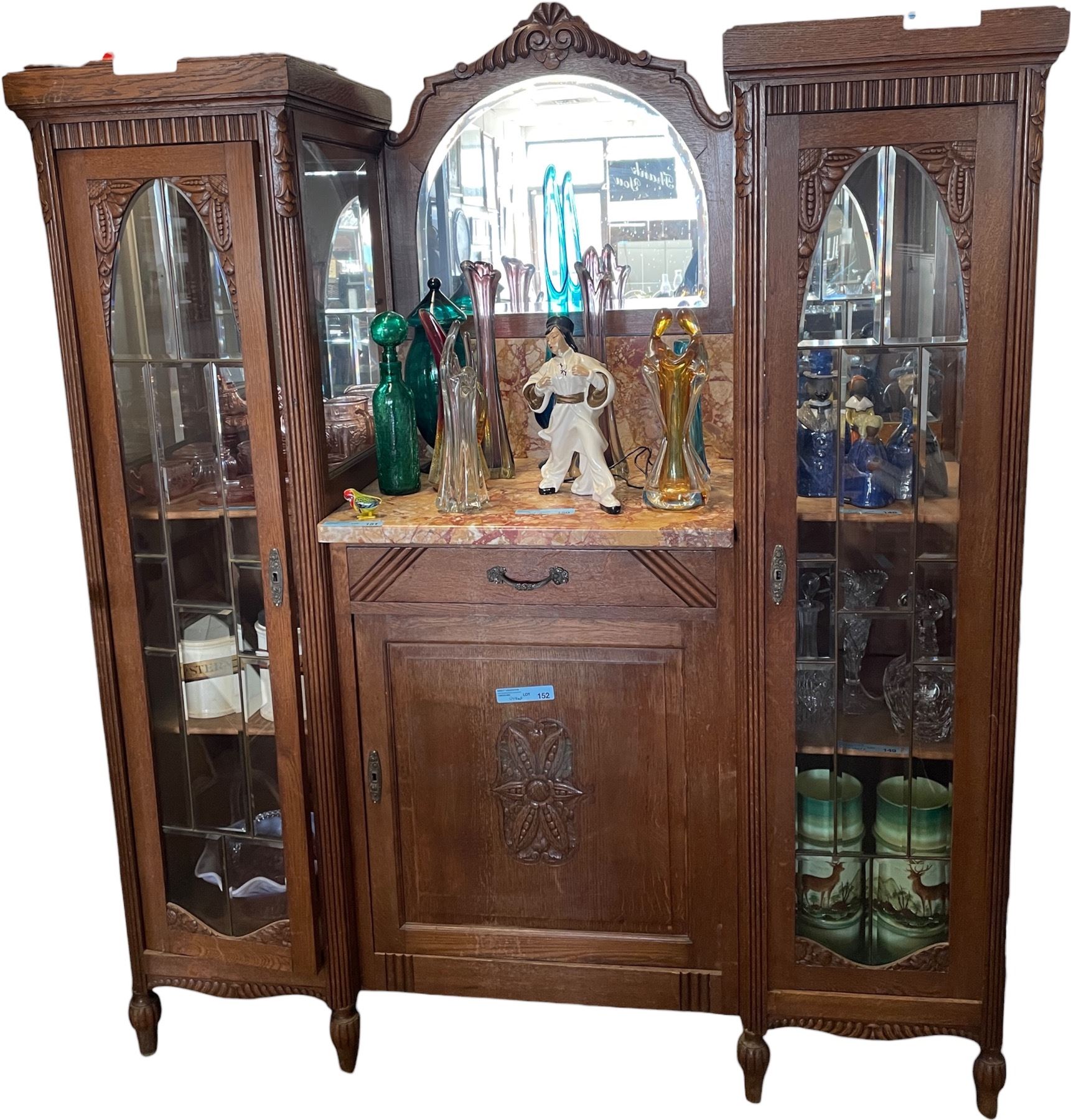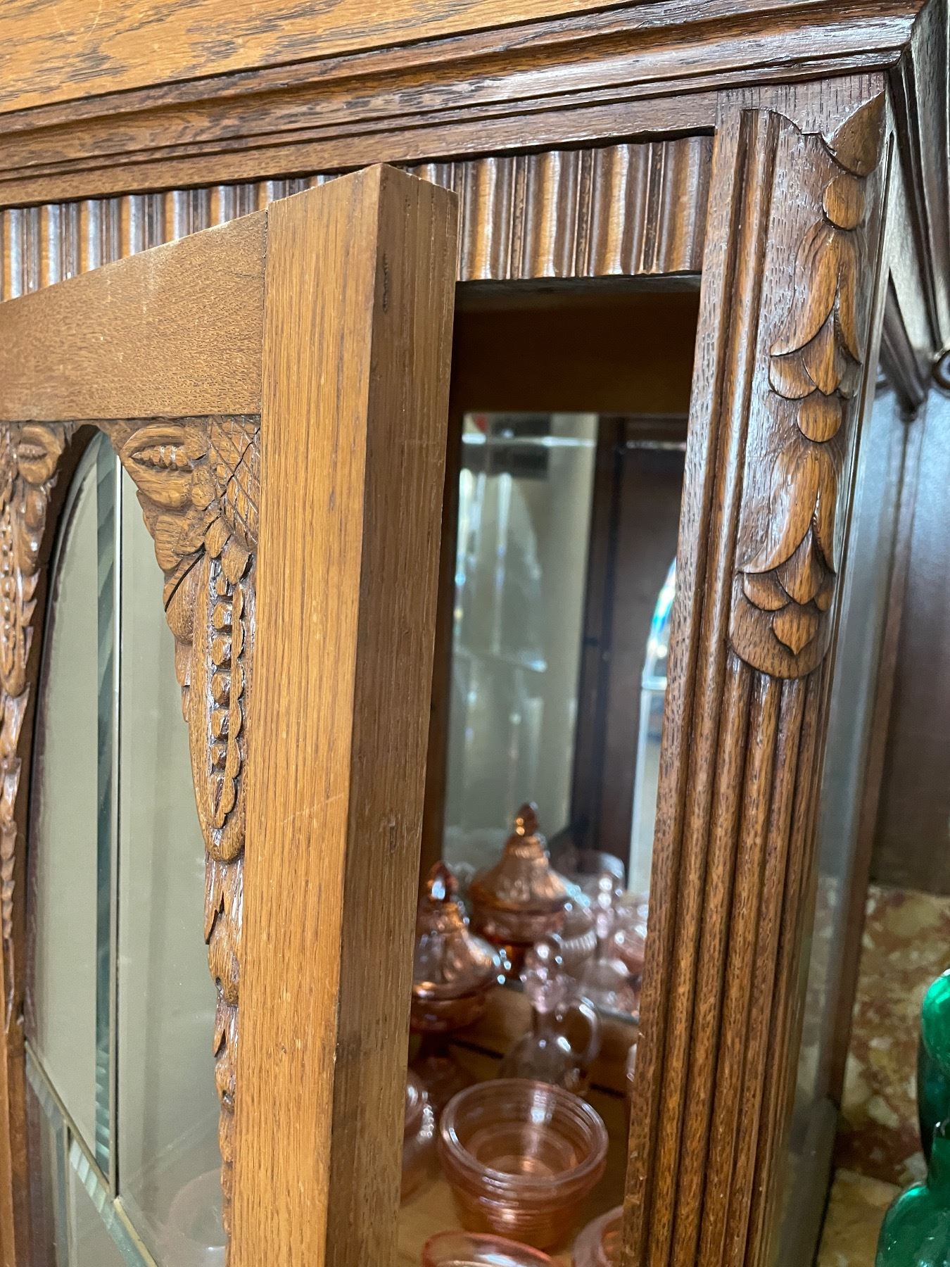 Vintage Oak Curio Display Cabinet with Leaded Glass 61in W x 22in D x 71 - Please Pick Up Last Day - Bidder Responsible For Removal)