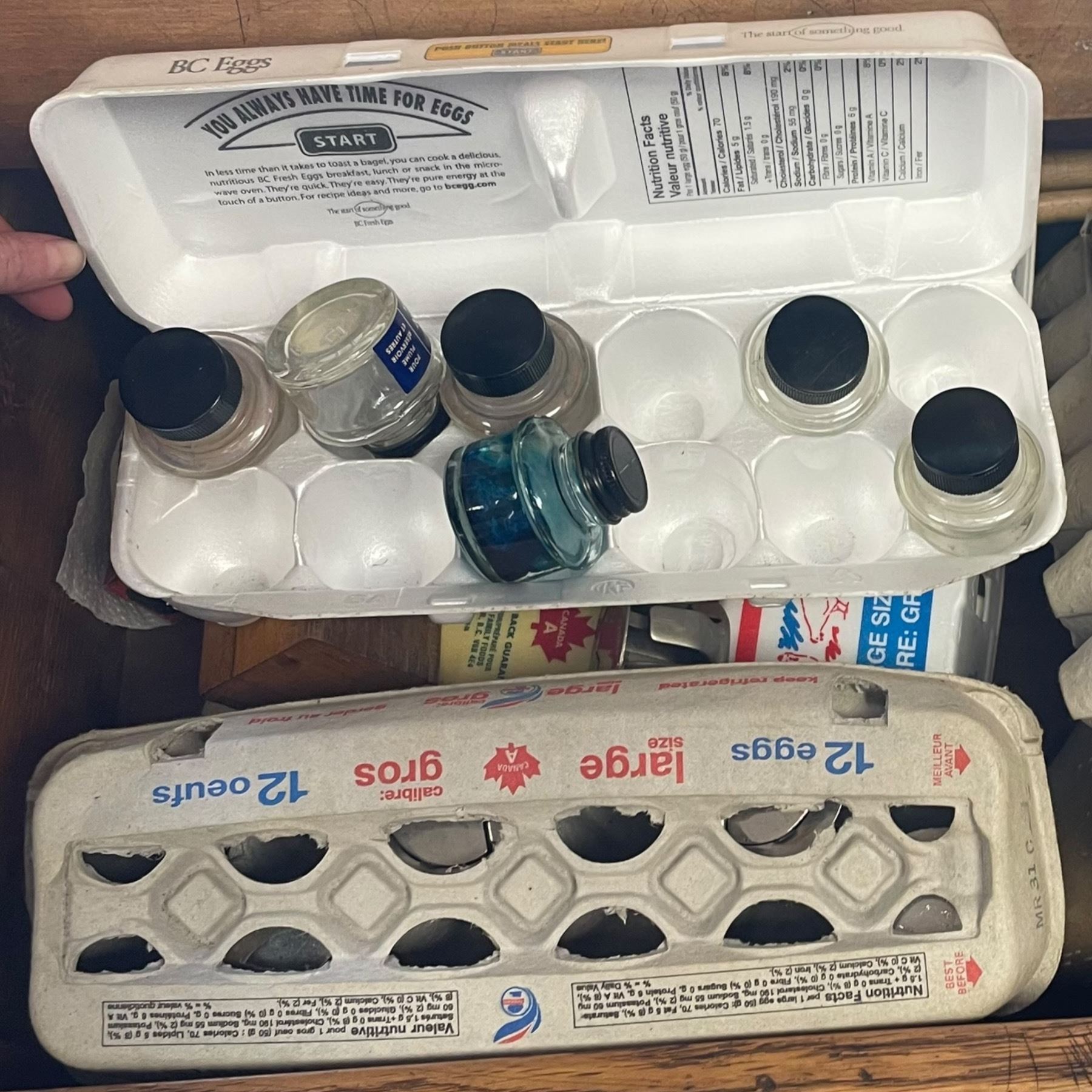 Vintage Oak School Desk & Contents * Replacement Inkwells, Ink Bottles and Chalk