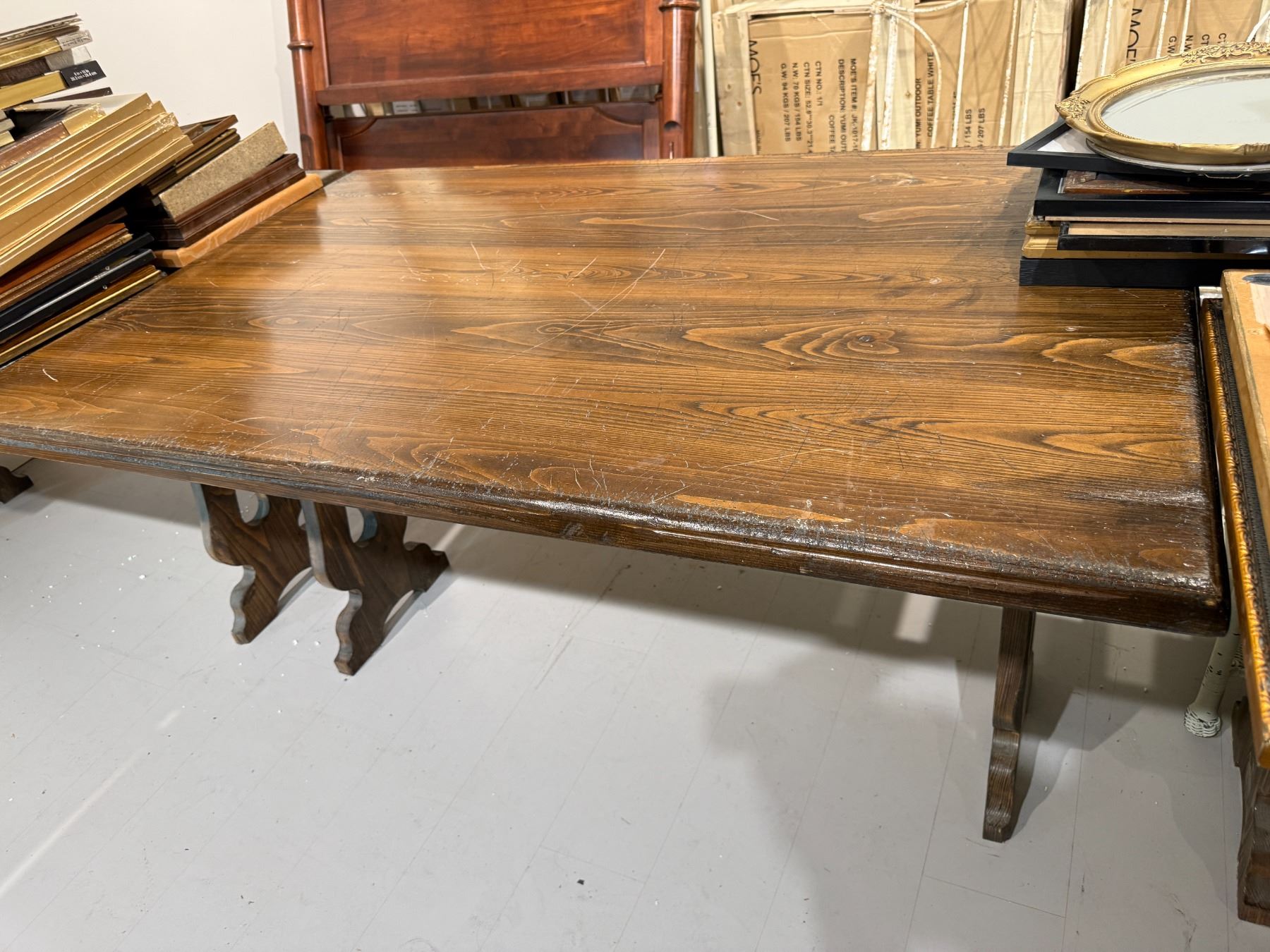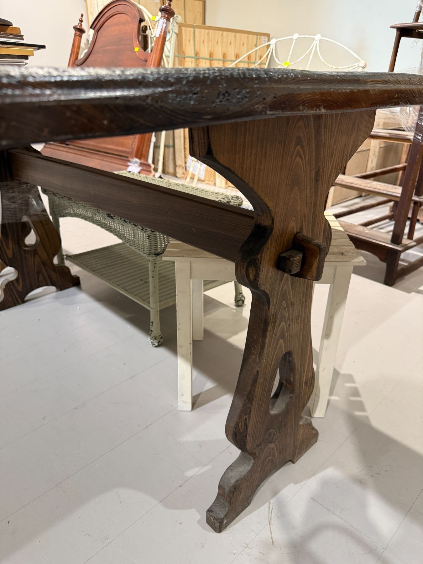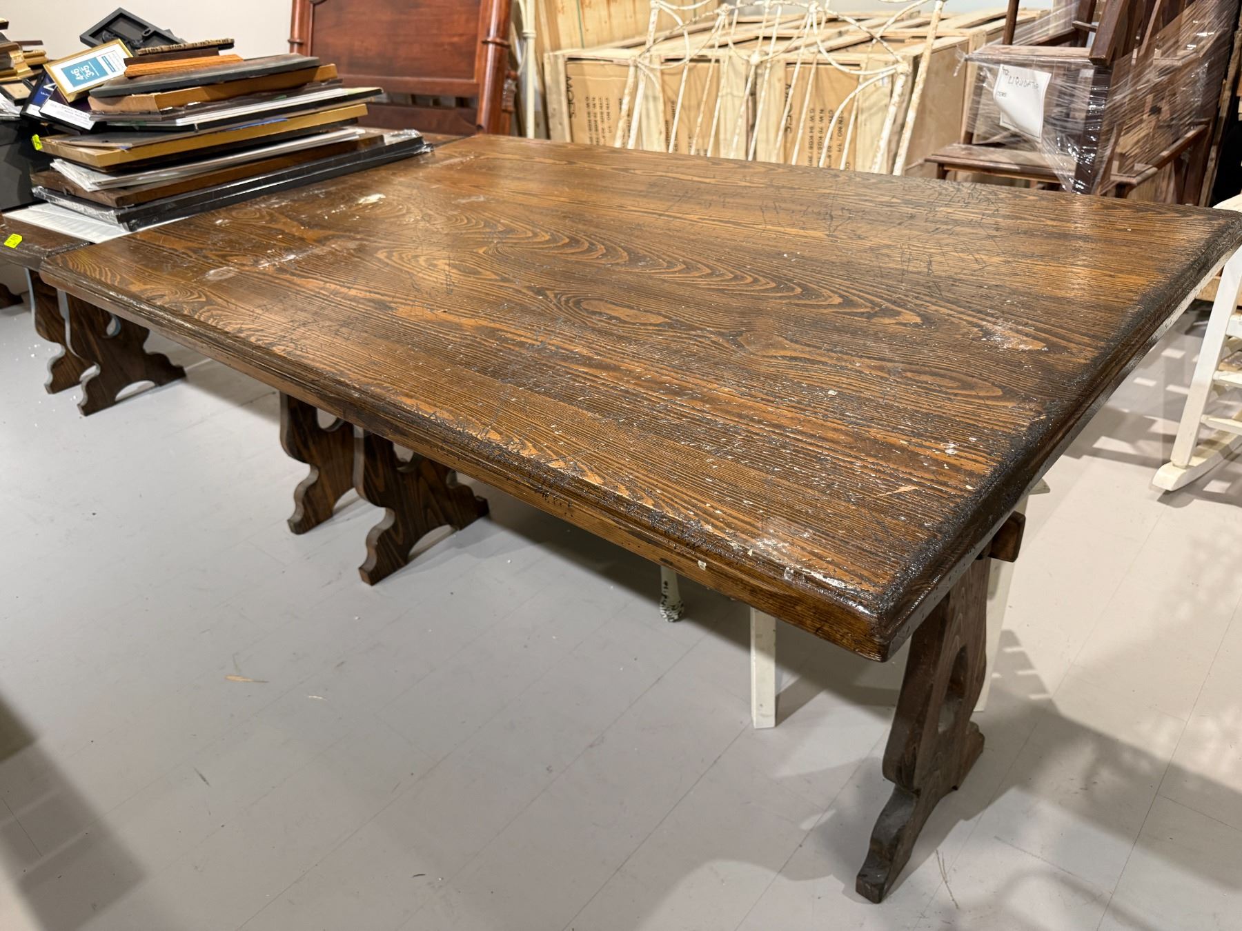 Vintage Oak Trestle Table * Heavy Duty Work Surface (Top of table measures: 2" thick x 39" wide x 60" long)