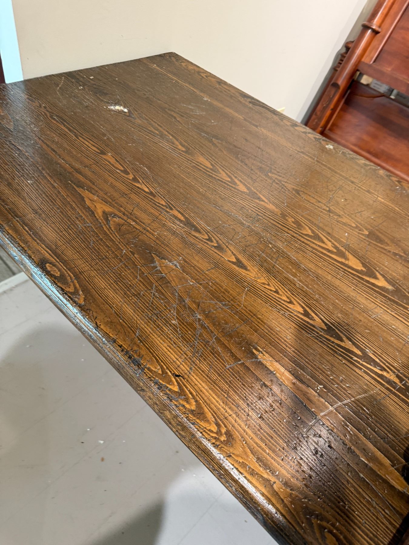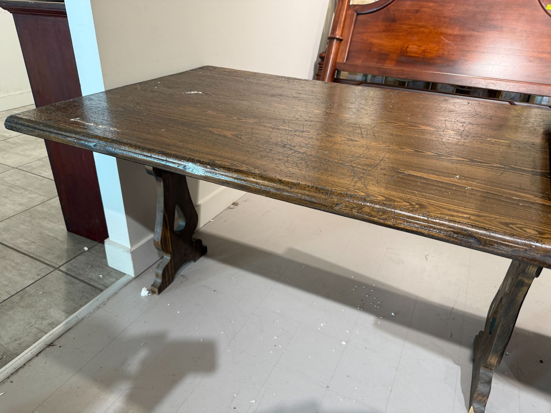 Vintage Oak Trestle Table * Heavy Duty Work Surface (Top of table measures: 2" thick x 39" wide x 60" long)