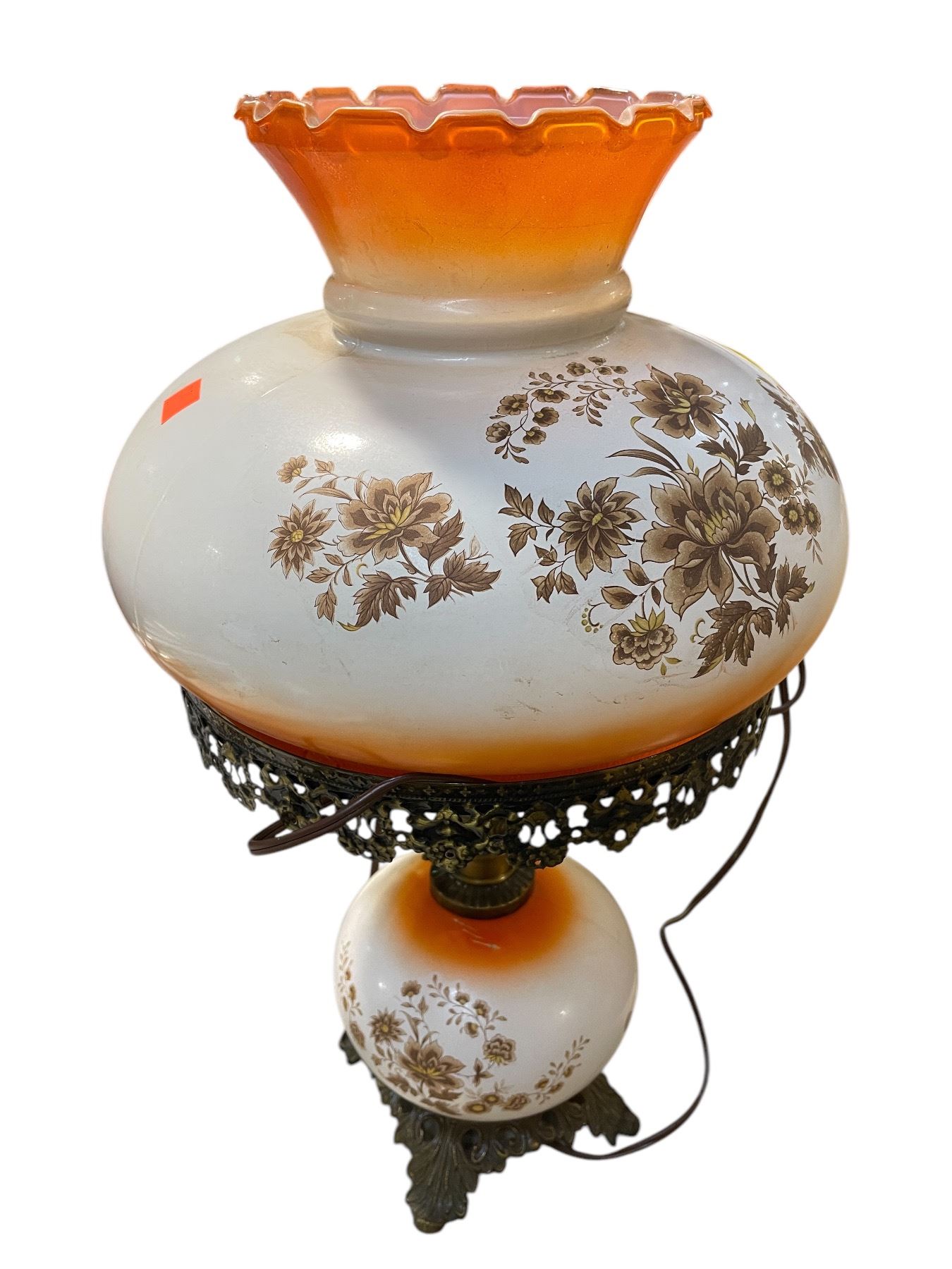 Vintage Orange & White Hurricane Lamp with/Floral Motif (22x11)