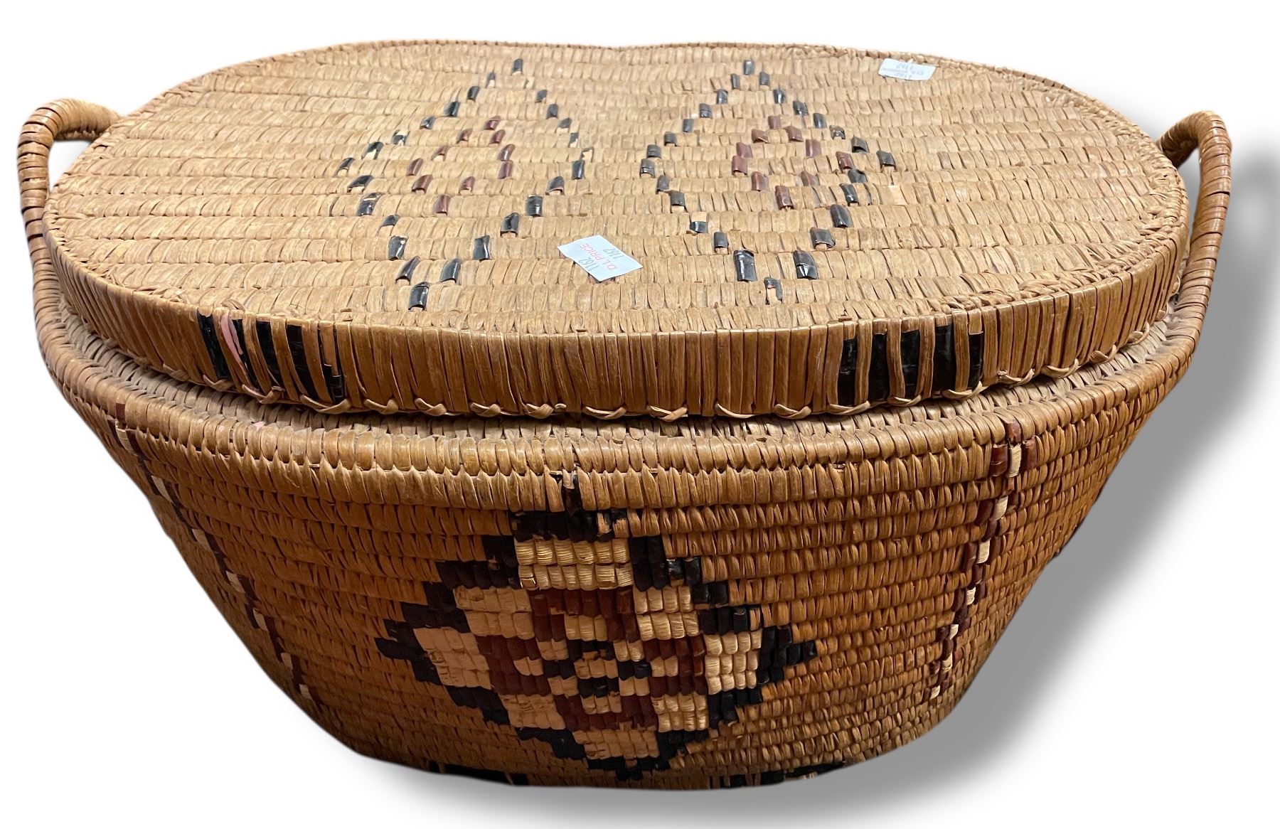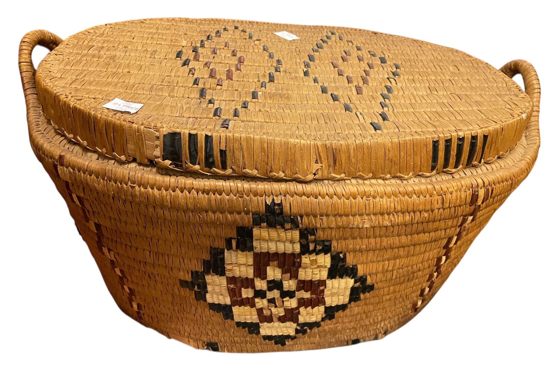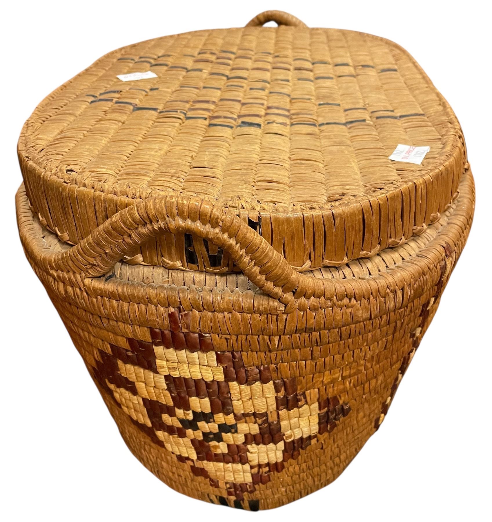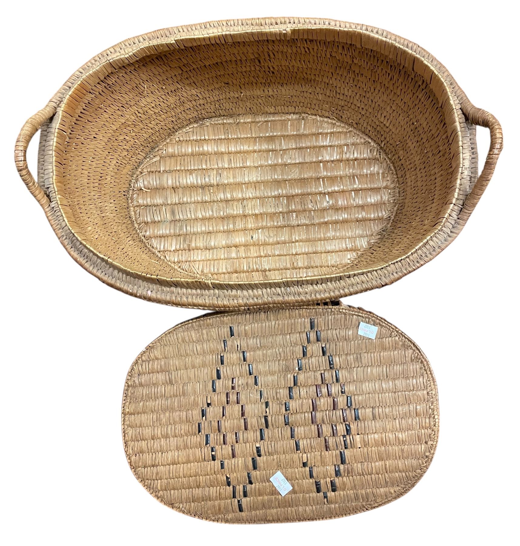 Vintage Oval Handwoven Basket - Geometric Diamond Pattern