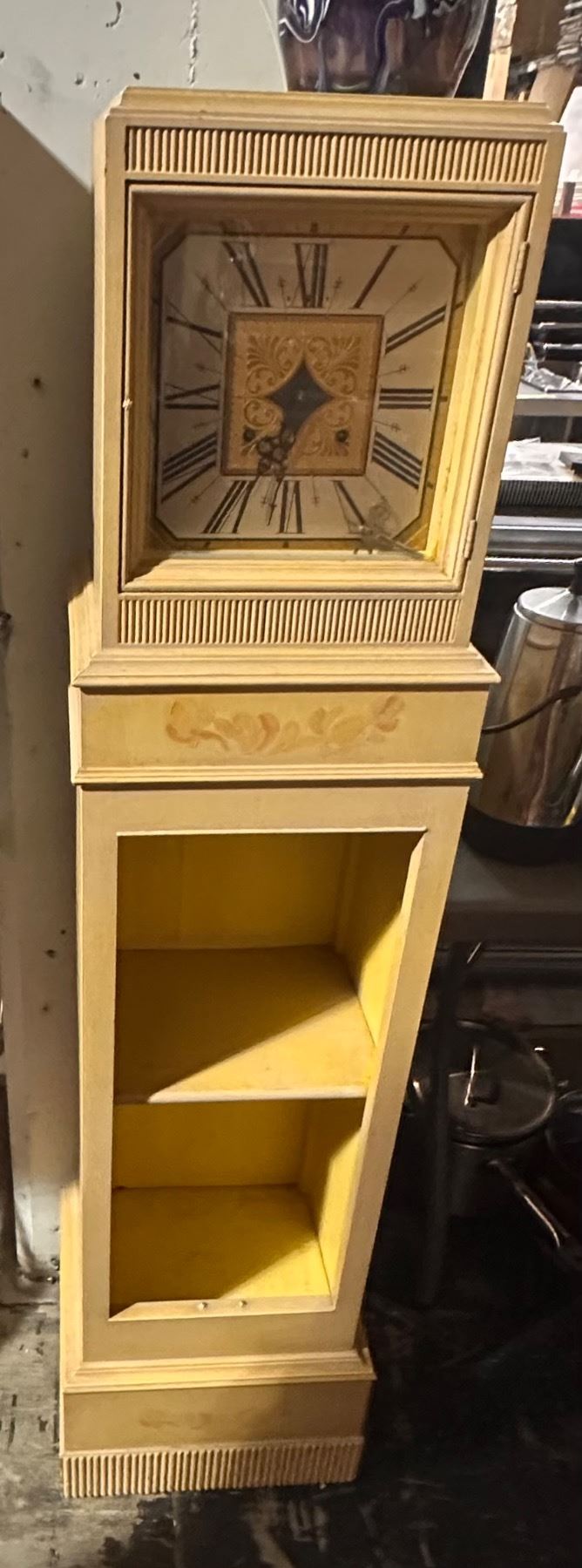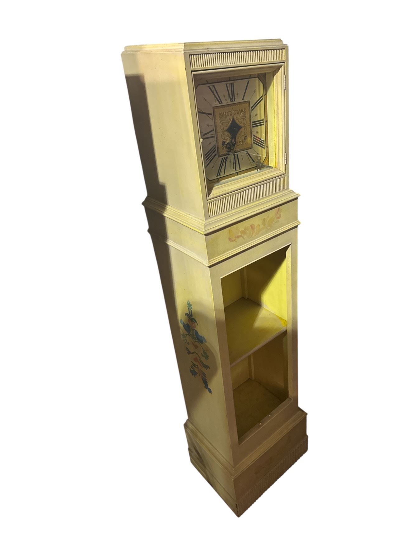 Vintage Painted Cabinet Style Floor Clock with Storage Shelf