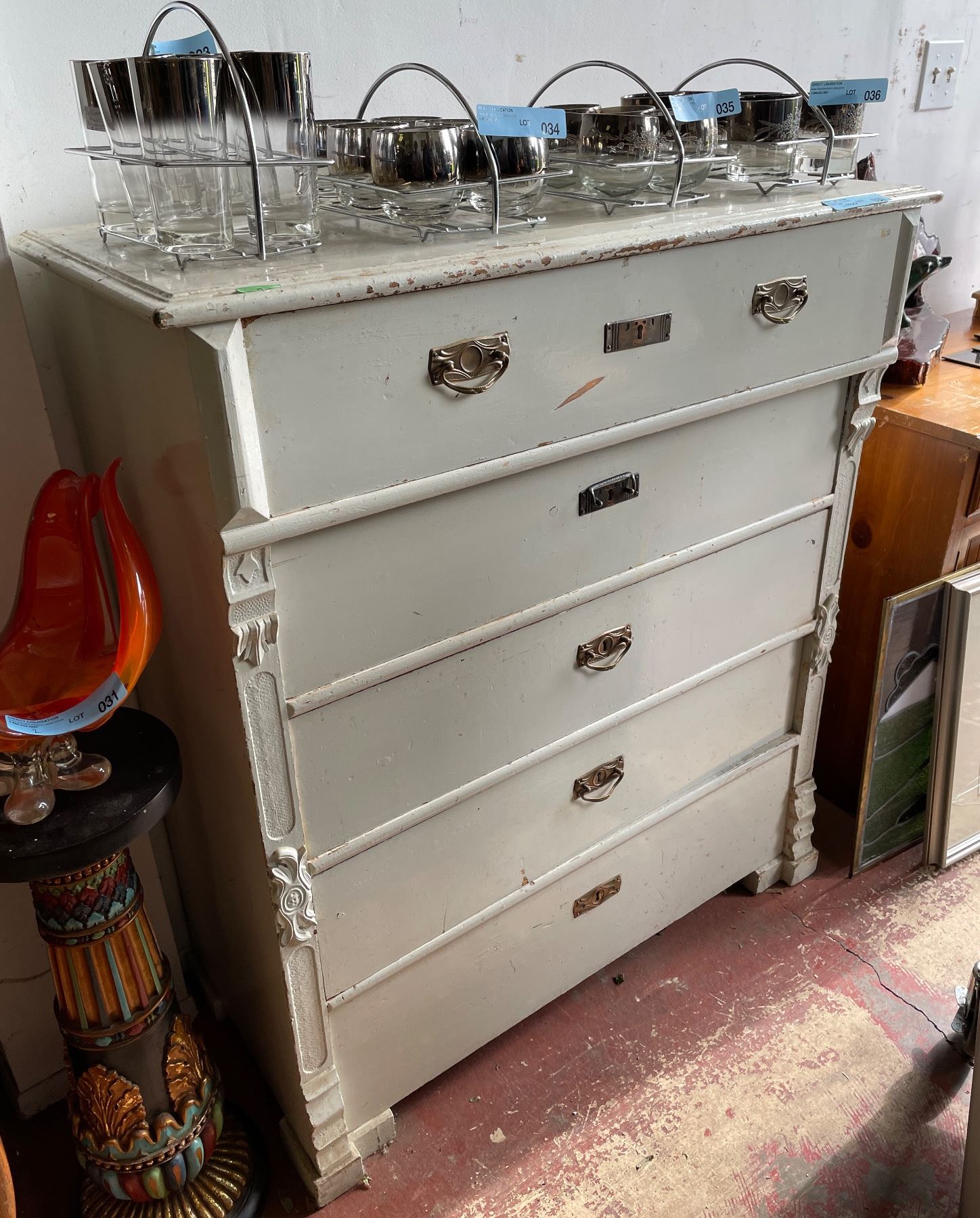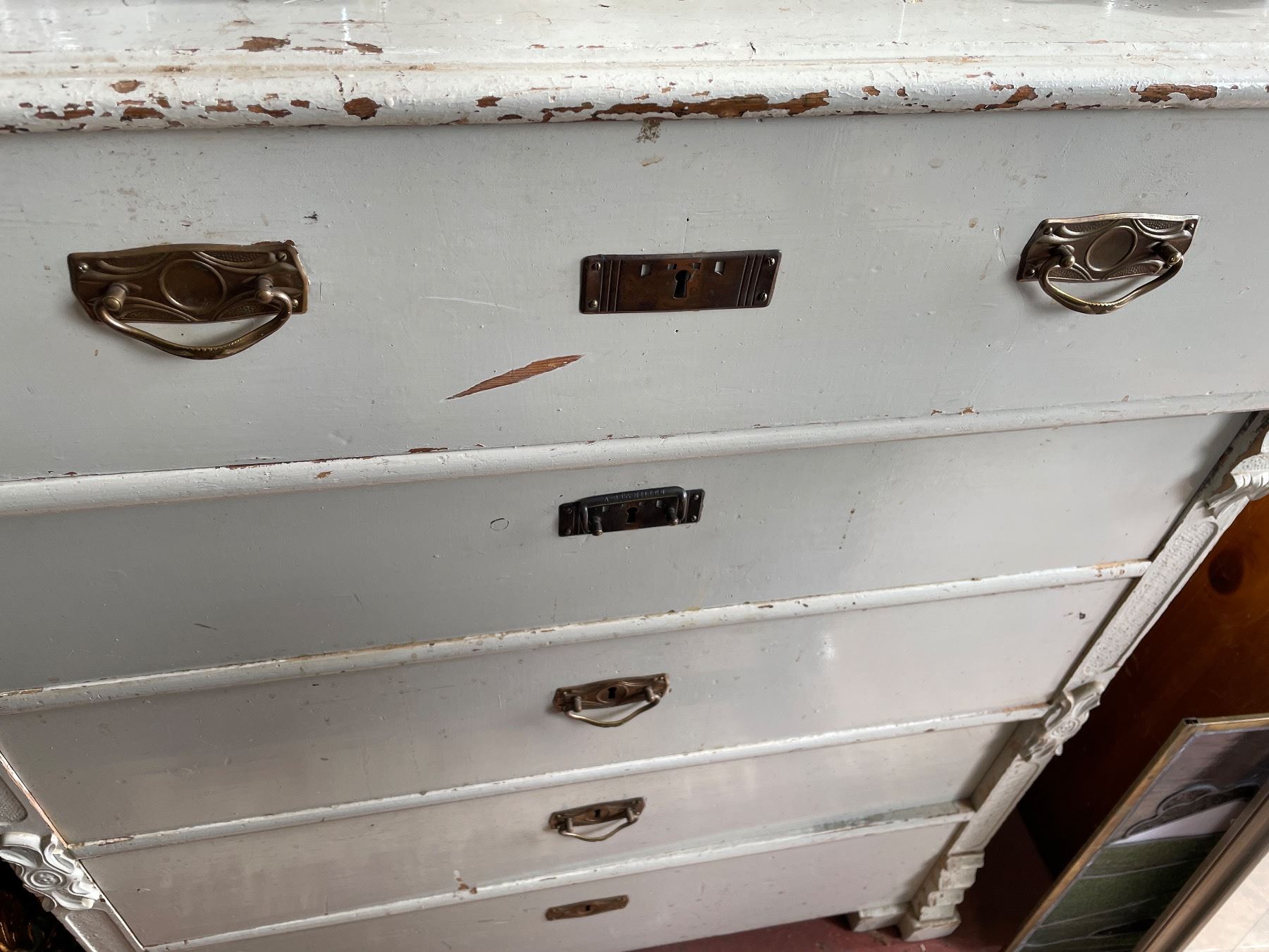 Vintage Painted Wood 4-Drawer Chest with Brass Pulls
