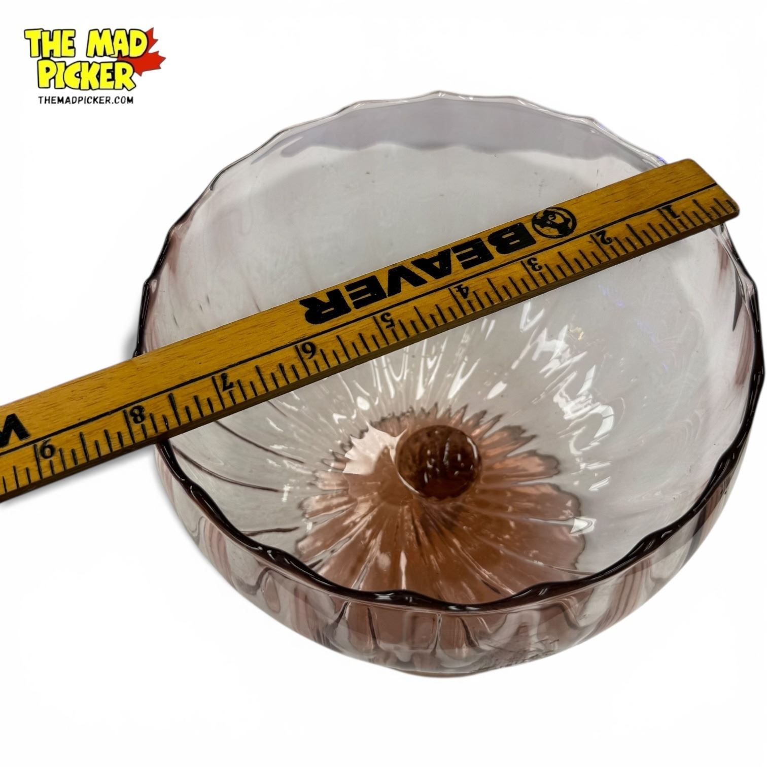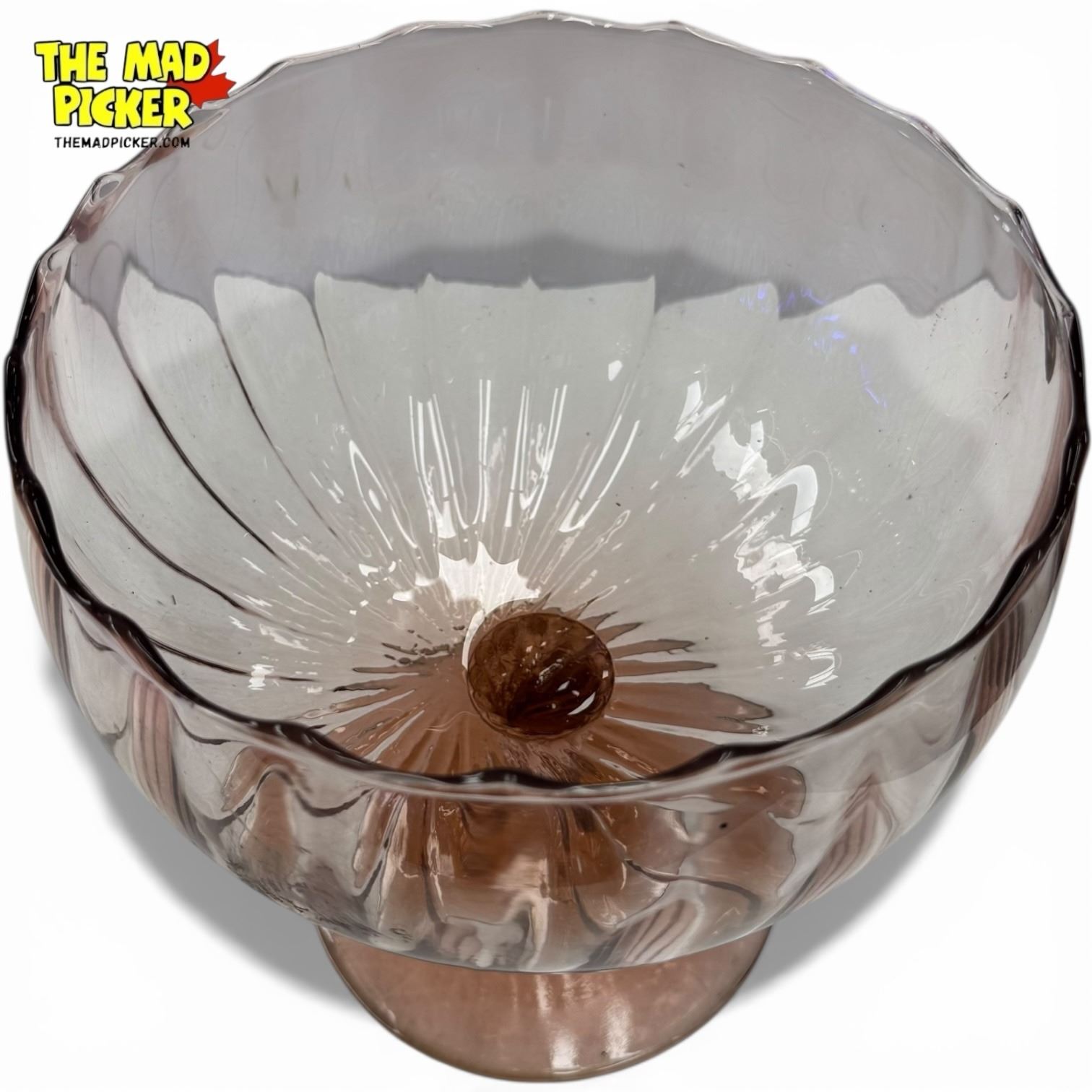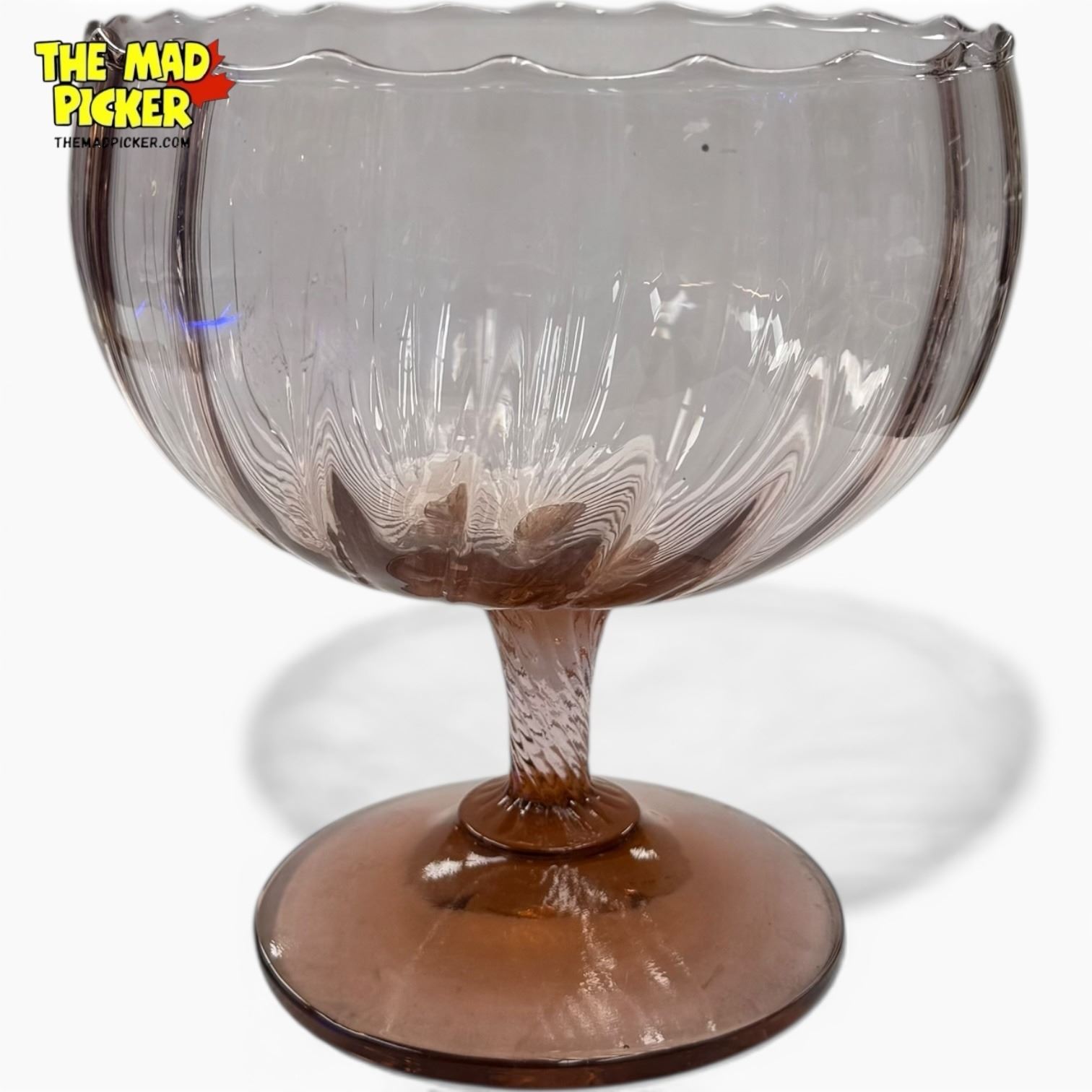 Vintage Pink Swirl Art Glass Pedestal Bowl - 9" tall x 8" diameter
