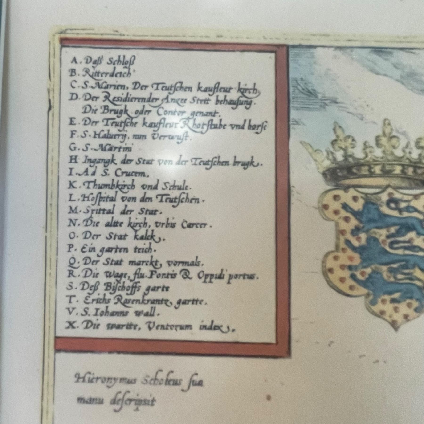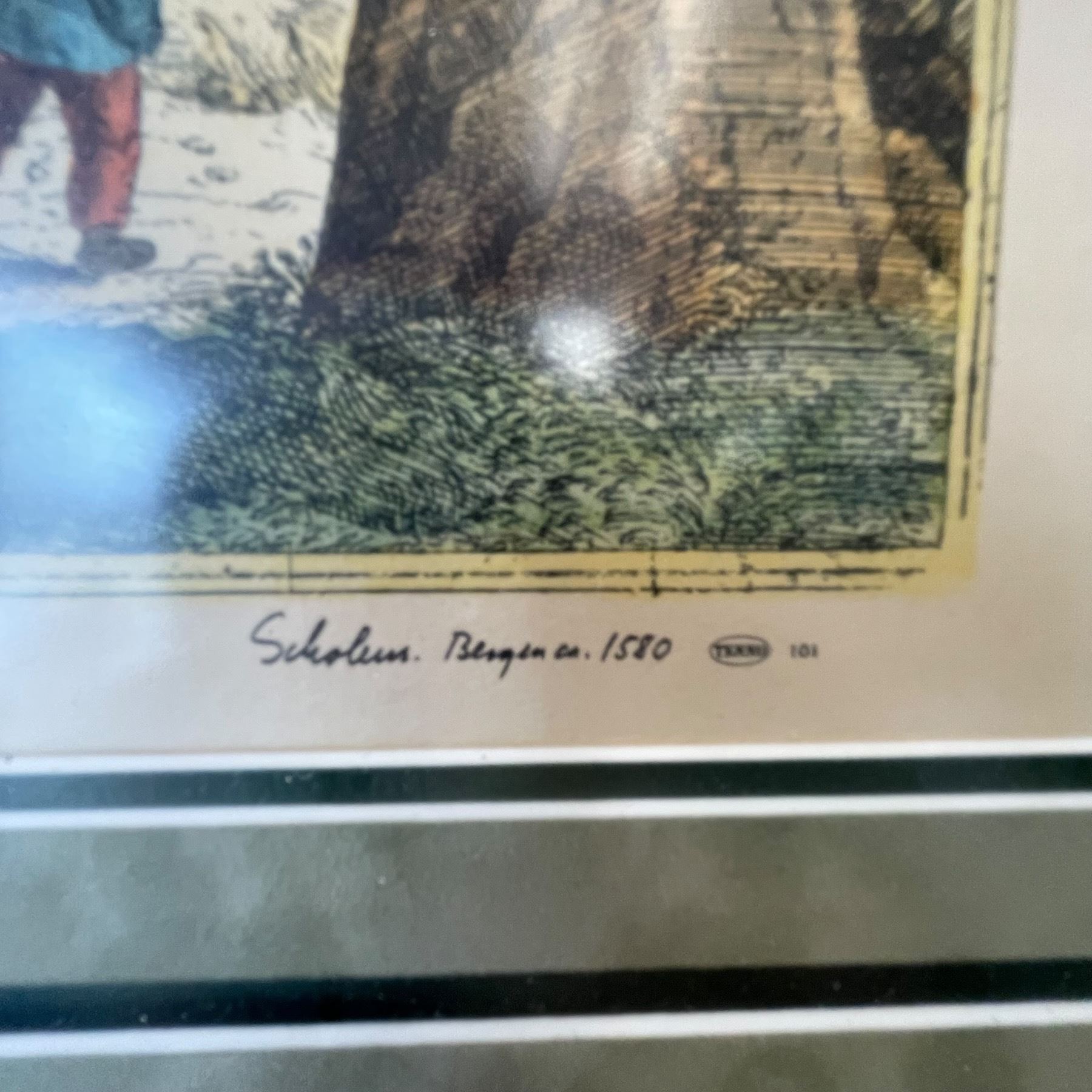Vintage Print of a Bird's-Eye View Map of Bergen, Norway, Based on a 1588 bHieronymus Scholeus Drawing (triple matted in a 31" x 25" frame)