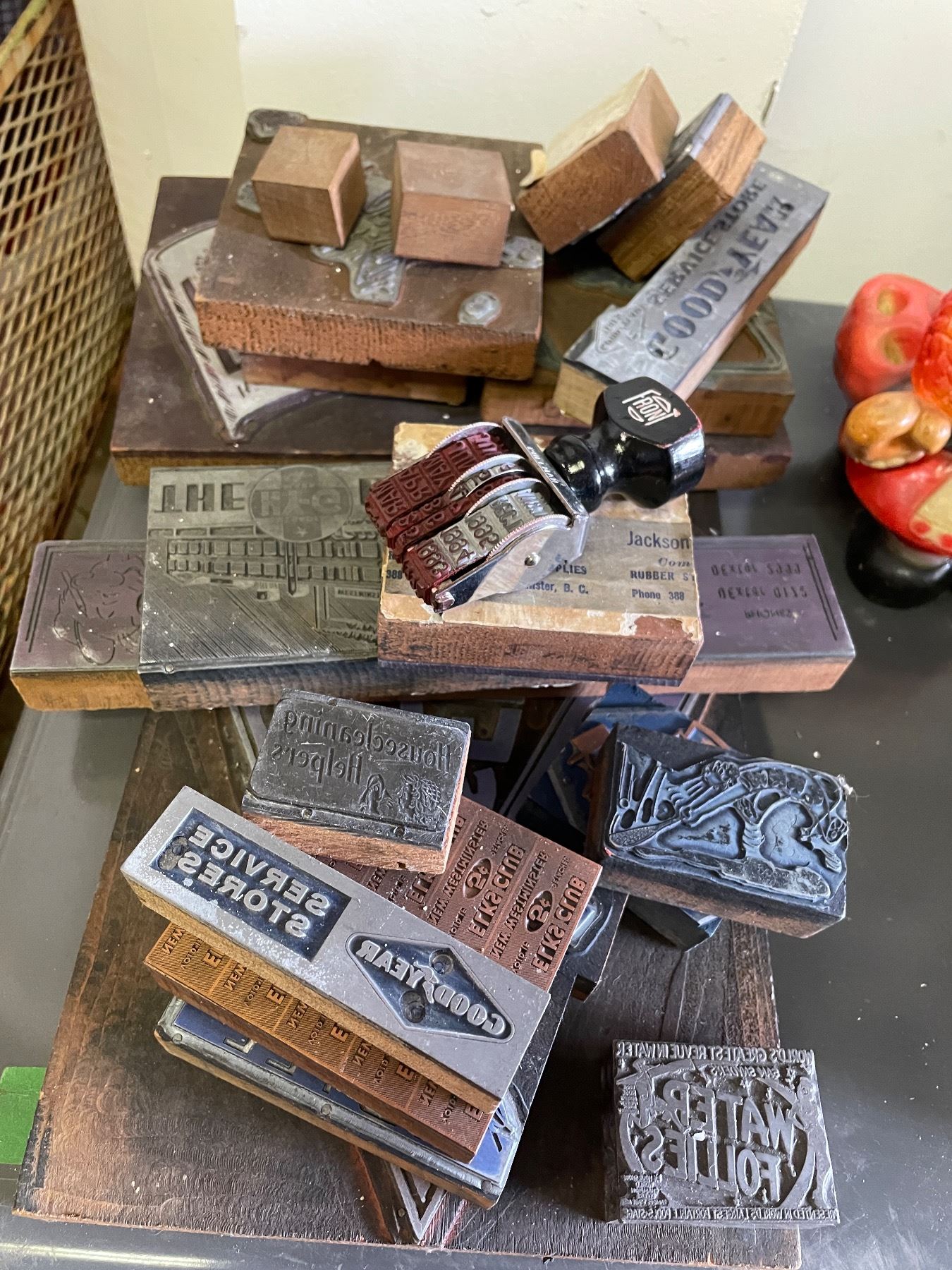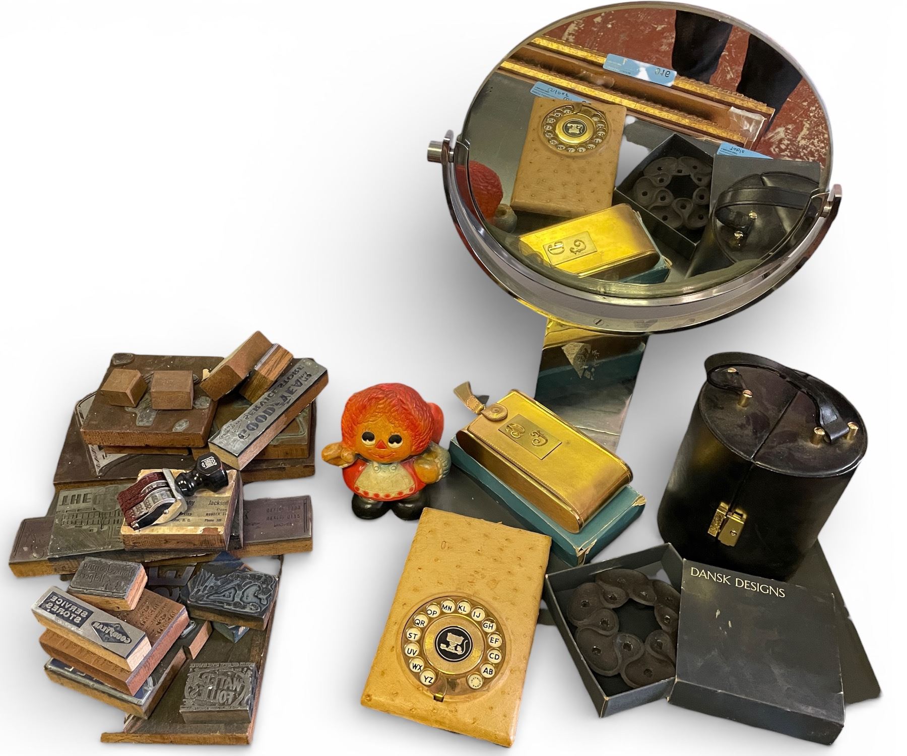 Vintage Printing Blocks, Vanity Mirror & Misc. Decorative Collectibles - Group Lot