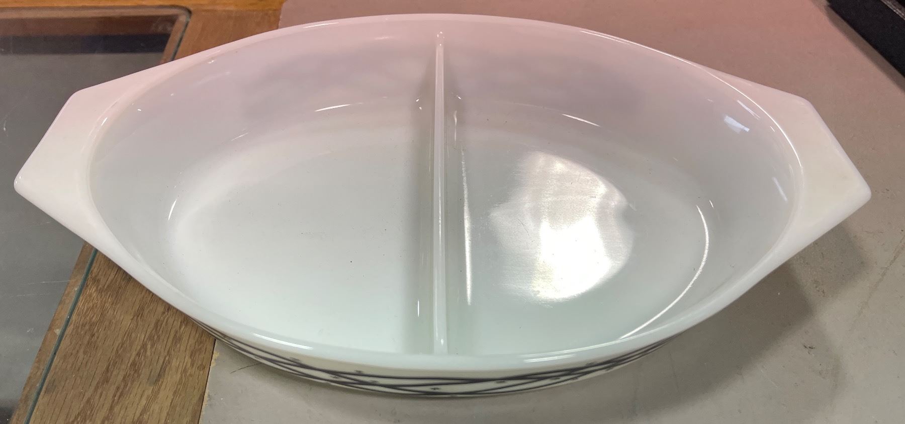 Vintage Pyrex Barbed Wire Pattern Divided Casserole Dish, without Lid