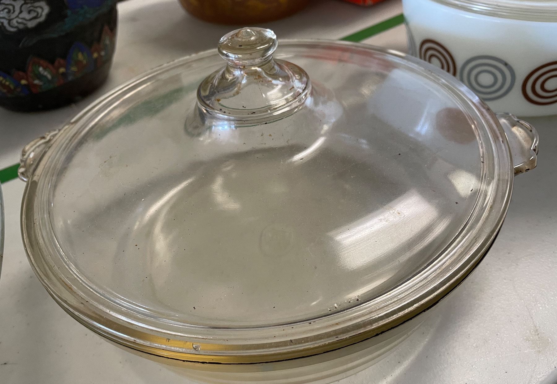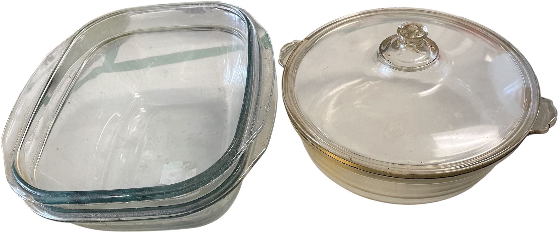 Vintage Pyrex England Covered Casserole and 2 Clear Bakeware Dishes