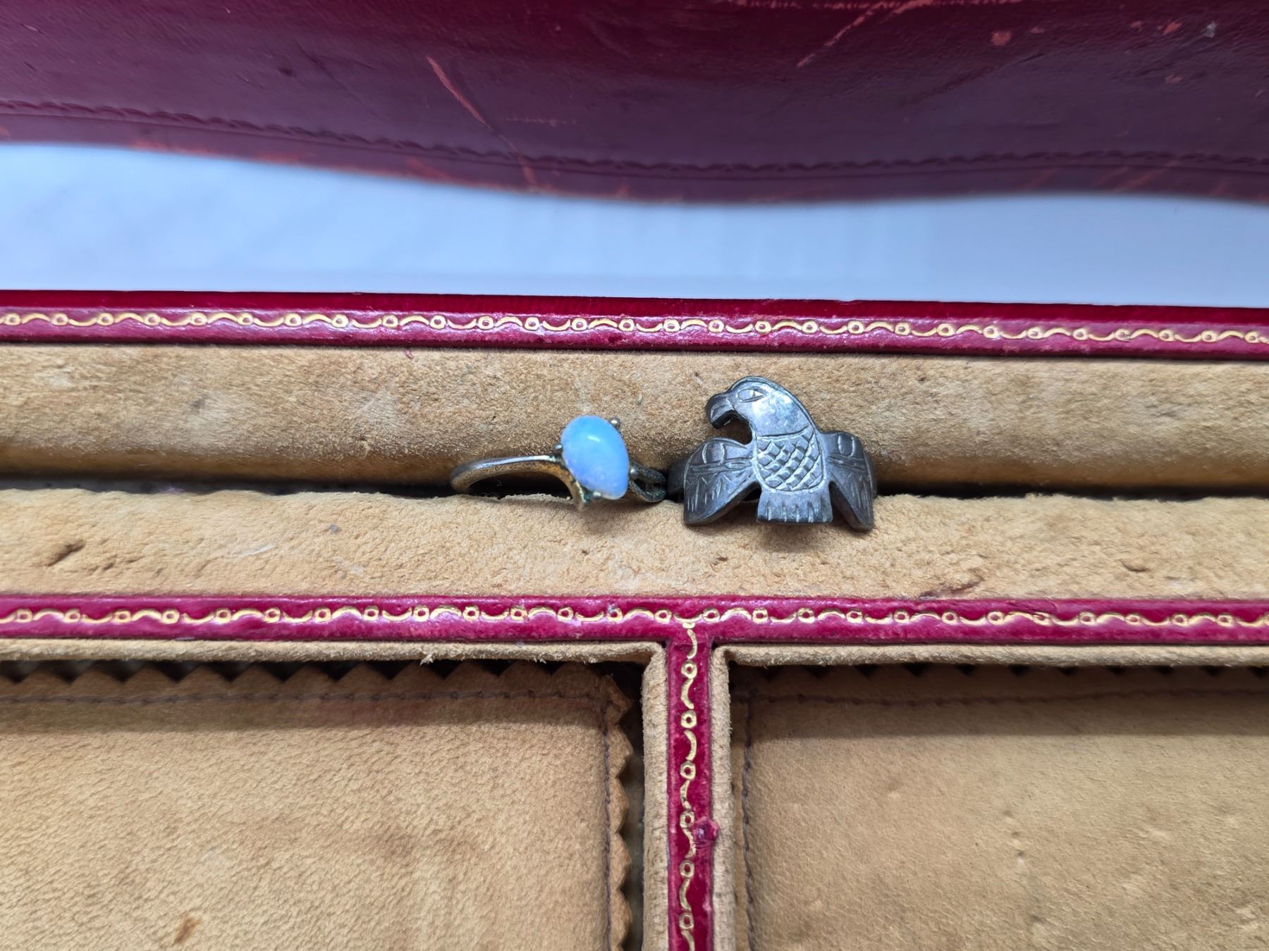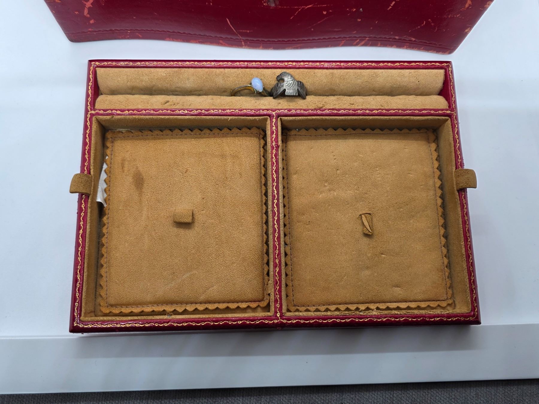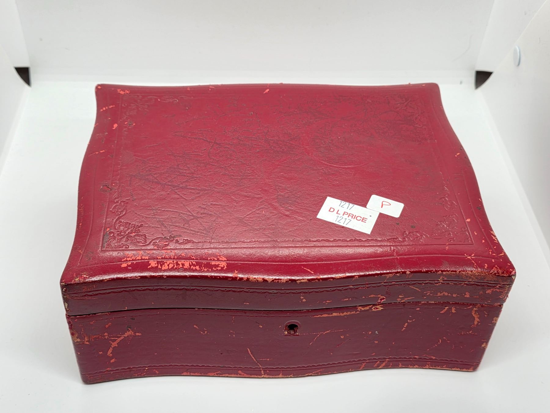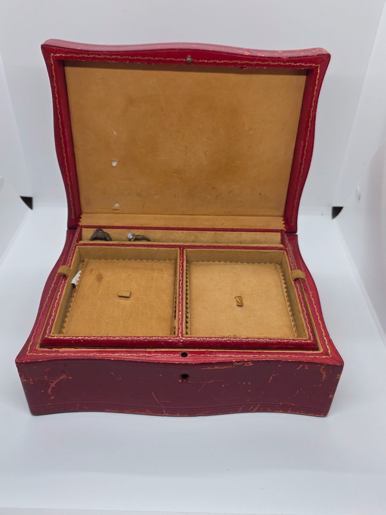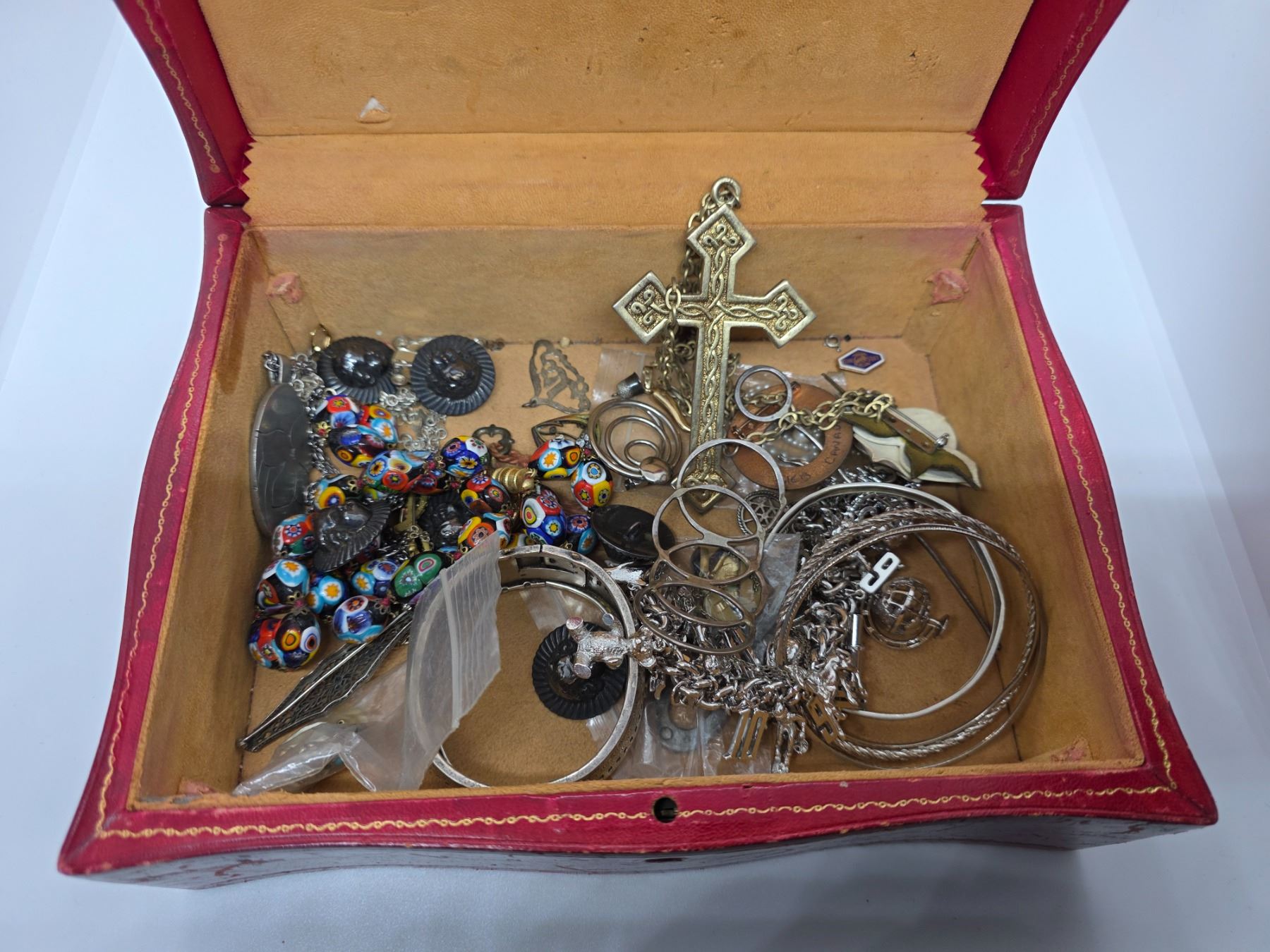 Vintage Red Leather Jewelry Box and Contents - Vintage Fashion & Costume Jewelry (7 x 10 x 4" tall)