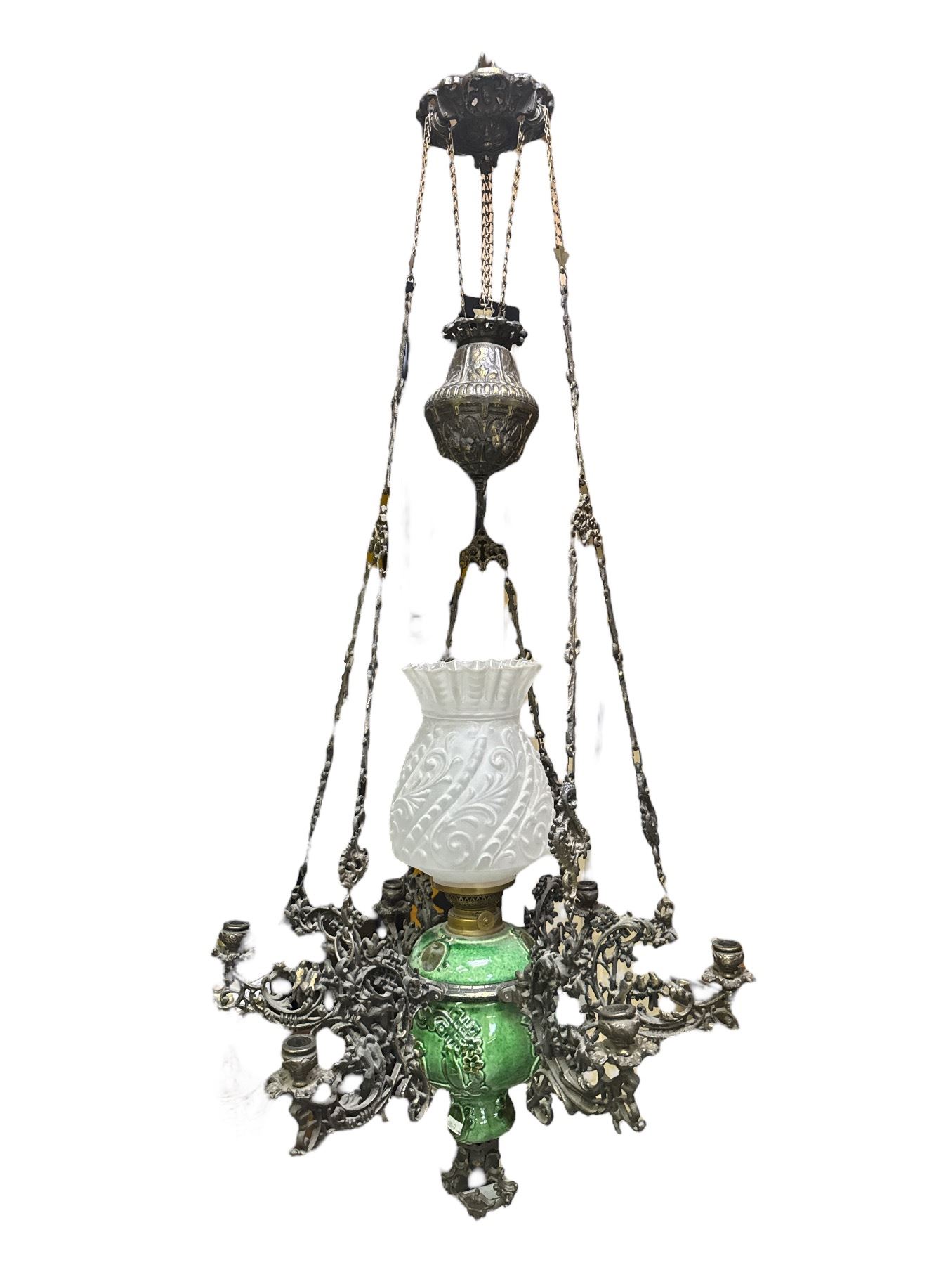 Vintage Reproduction Enameled Candelabra/ Oil Lamp With Pulley Feature