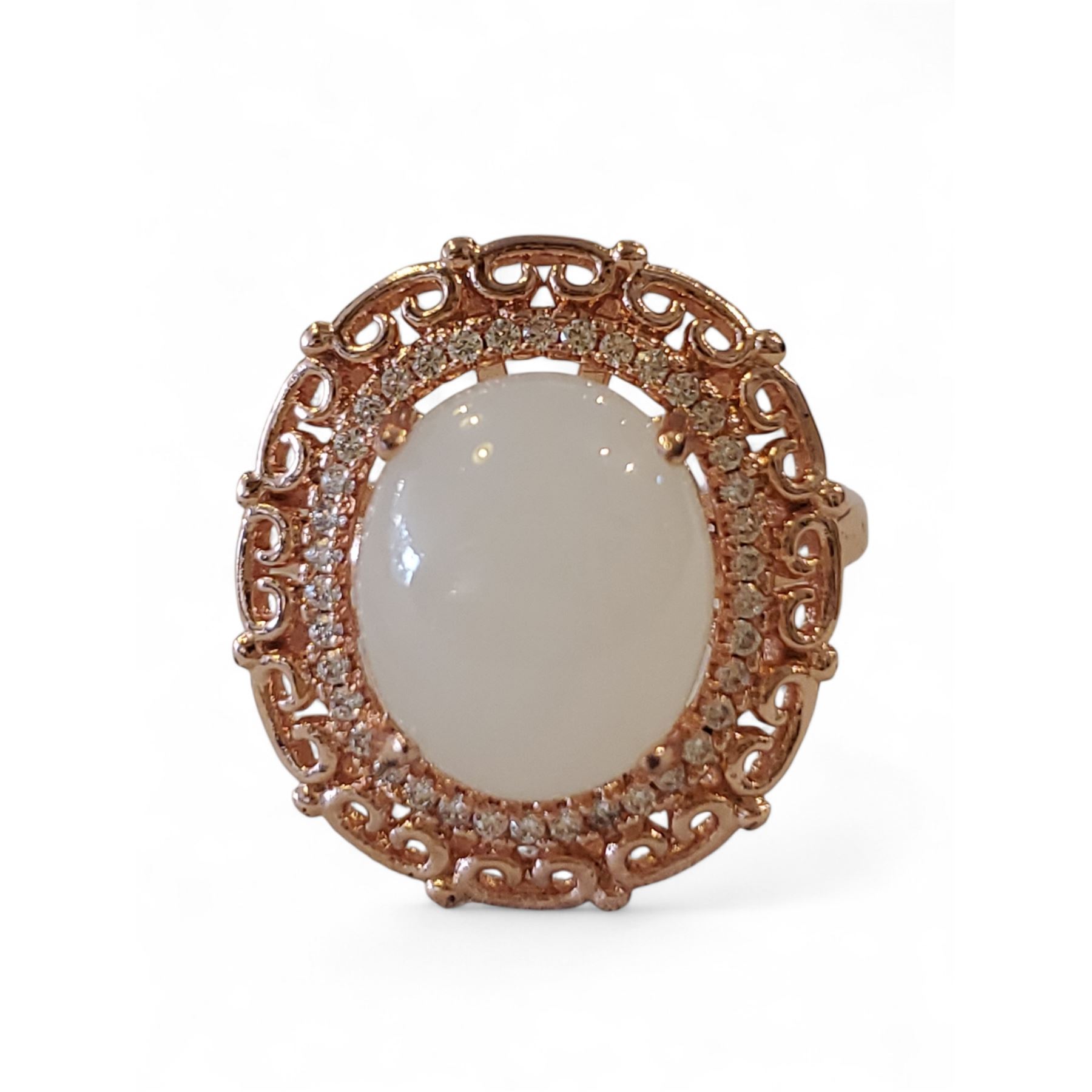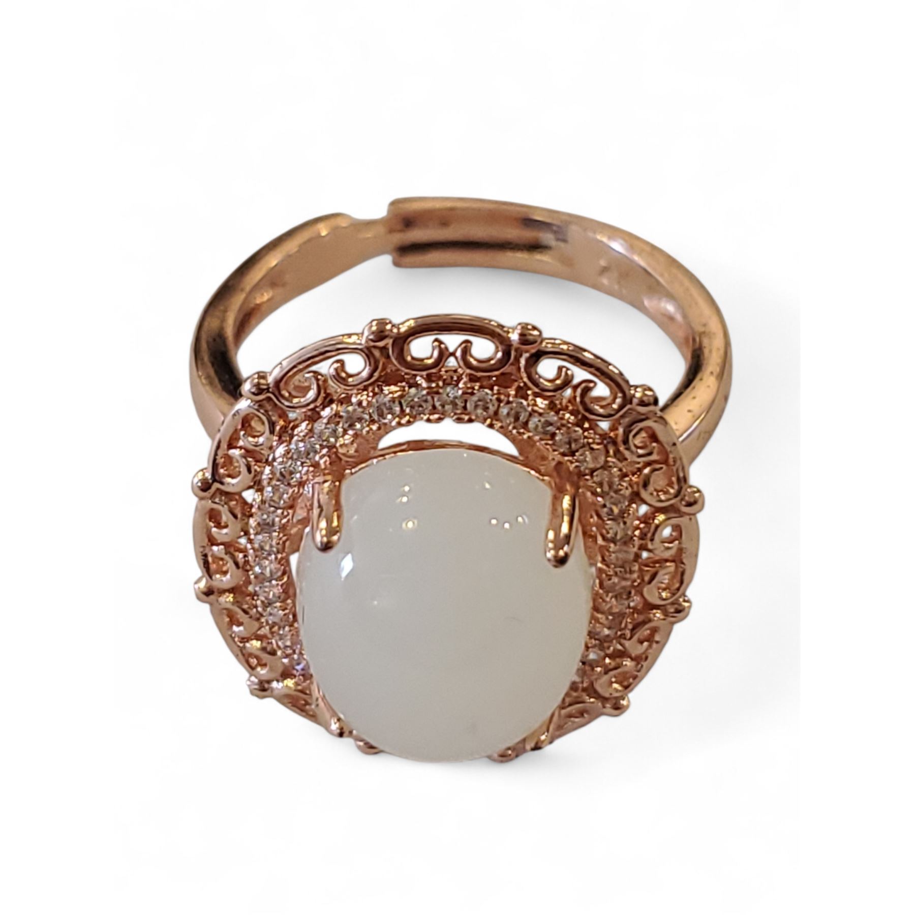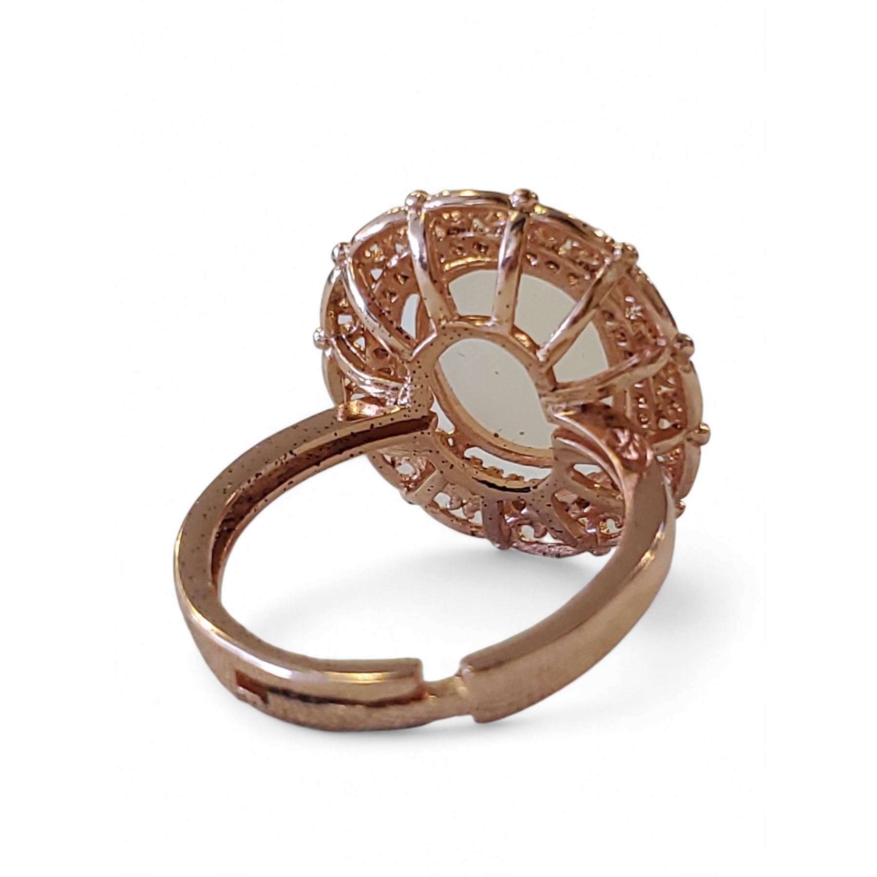 Vintage Rose Gold Zirconia Cabochon Halo Ring - Adjustable Size