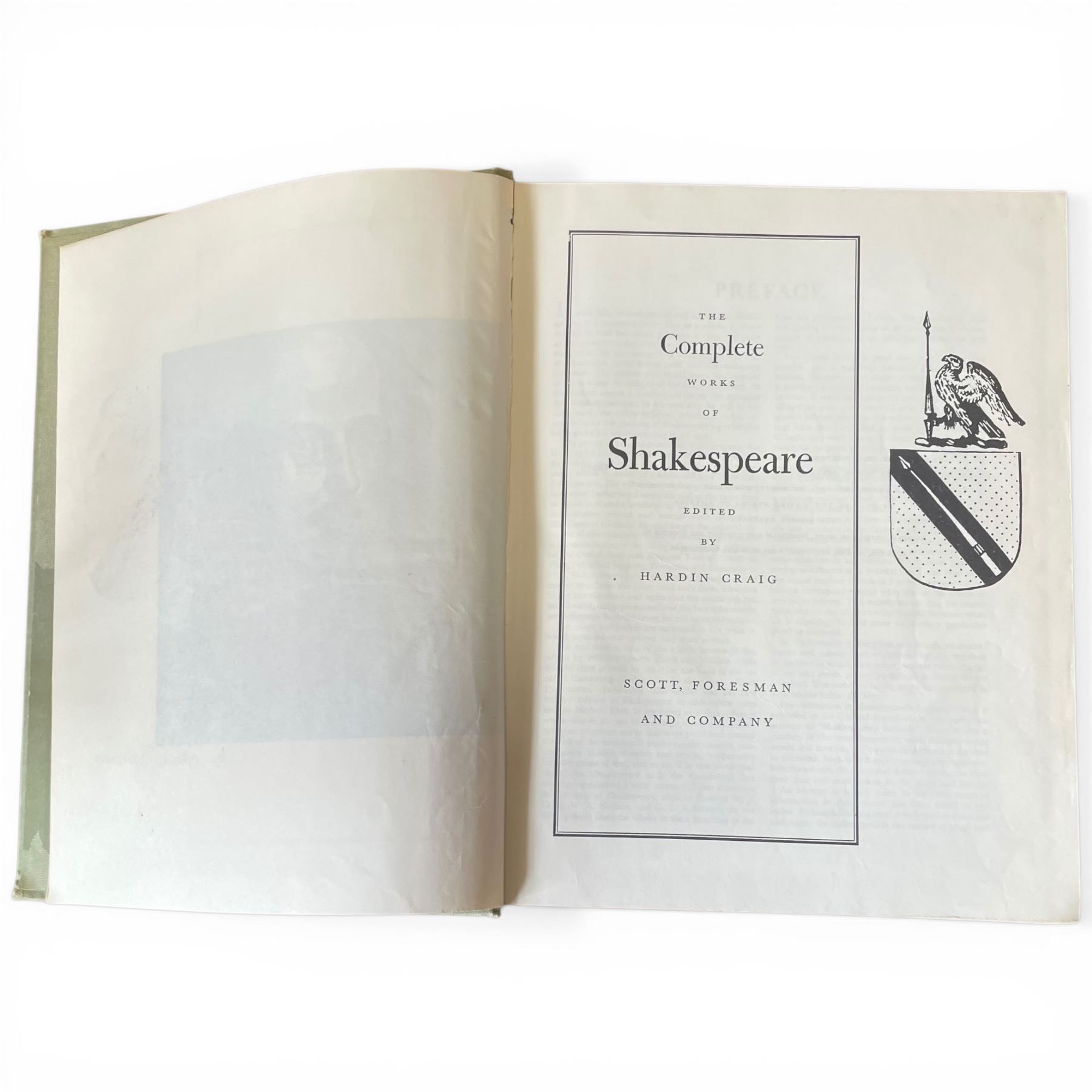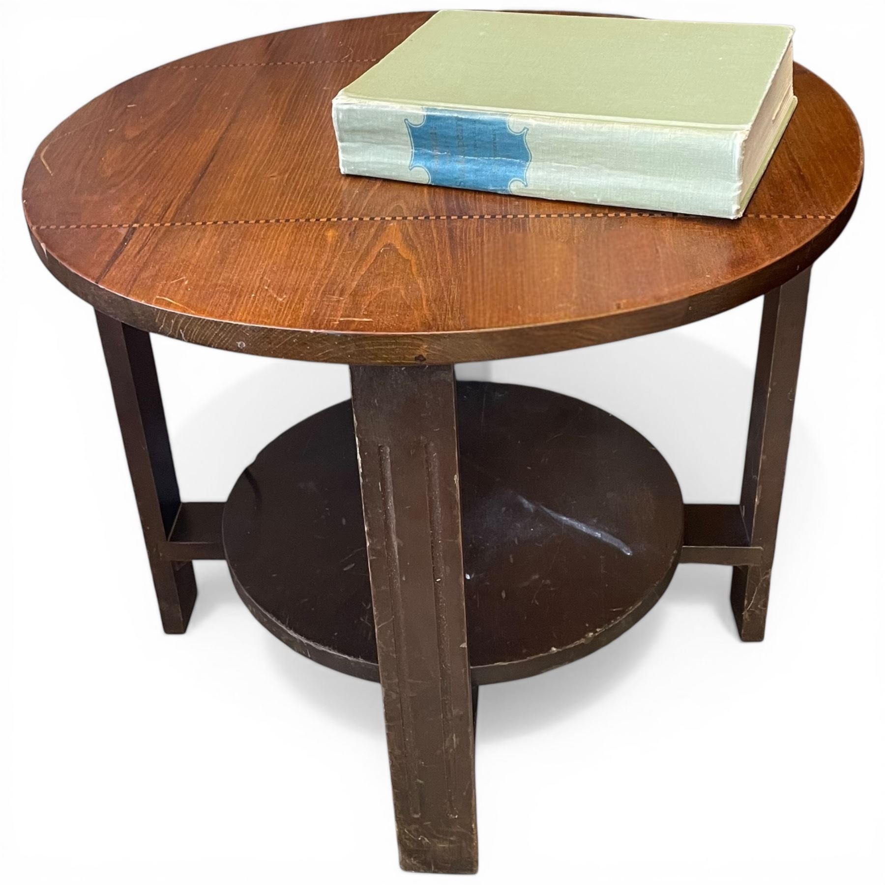 Vintage Round End Table with "The Complete Works of Shakespeare" Small burn on table (18" diameter x 22" tall)