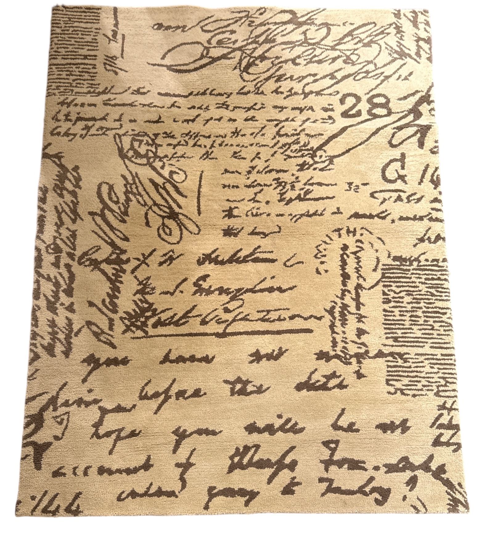Vintage Script Hand Tufted Calligraphy Area Rug - Approx 60in x 82in