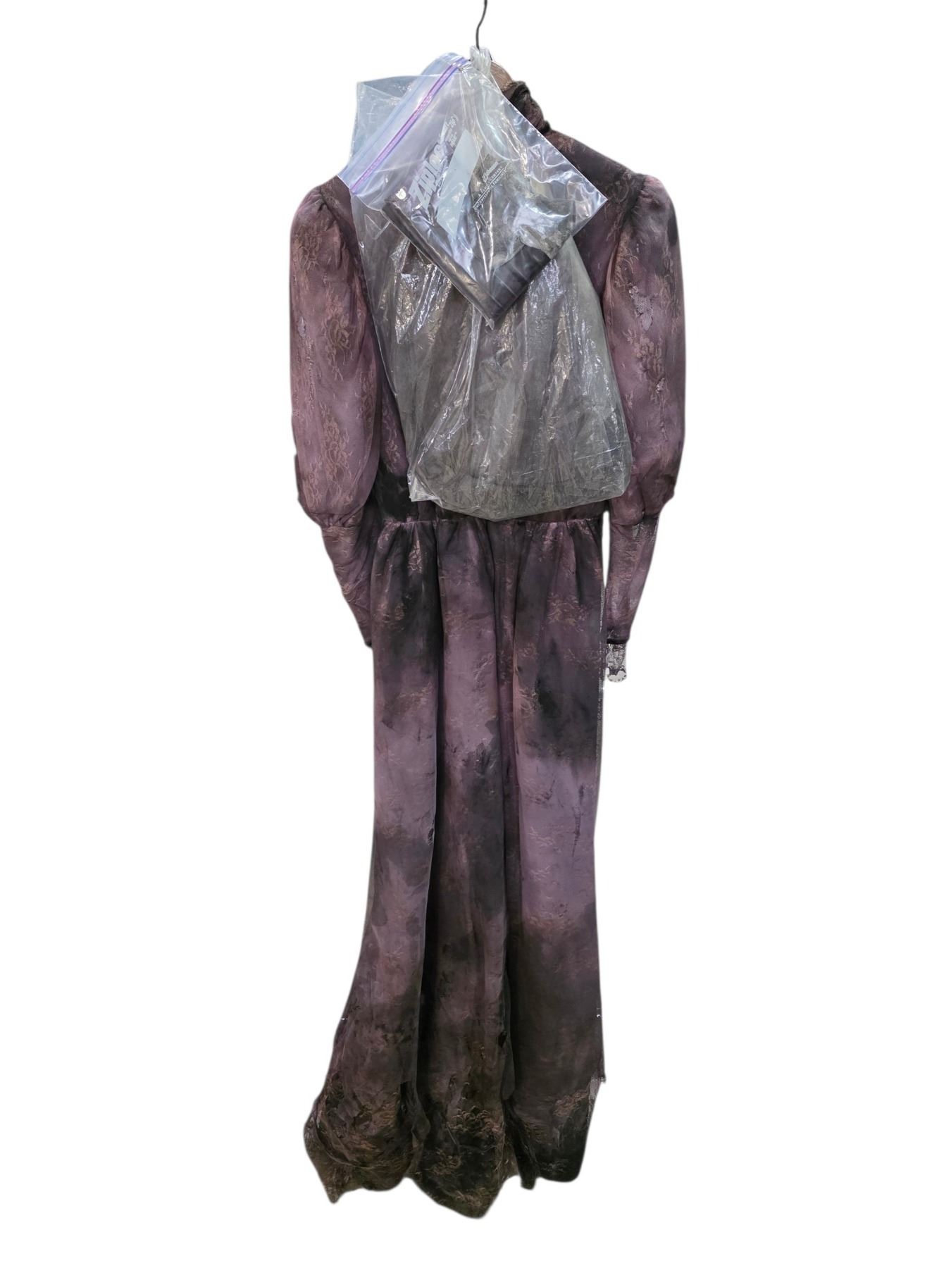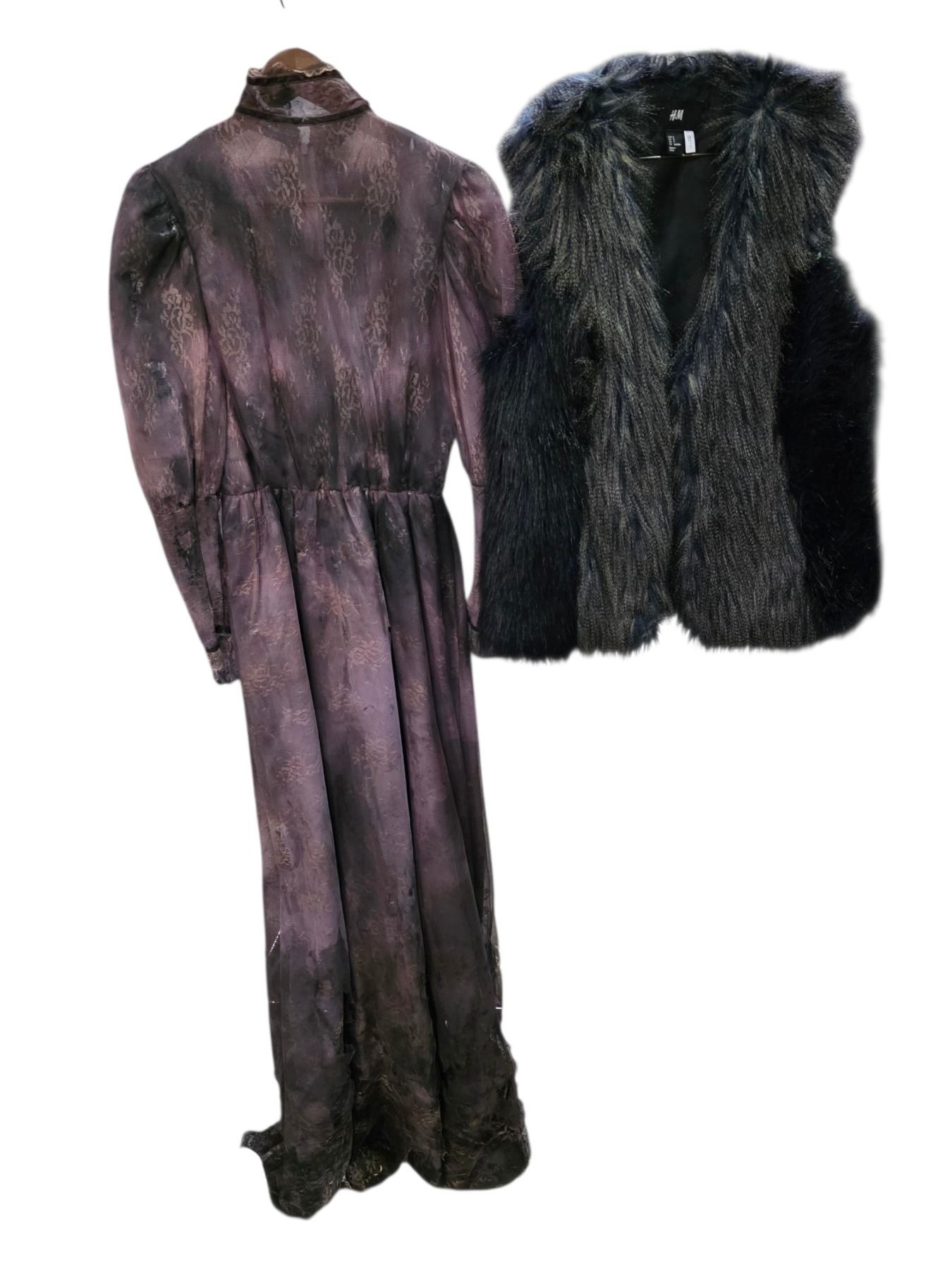 Vintage Sheer Lace Maxi Dress with Long Sleeves & Black Faux Fur Vest - Film/TV Wardrobe