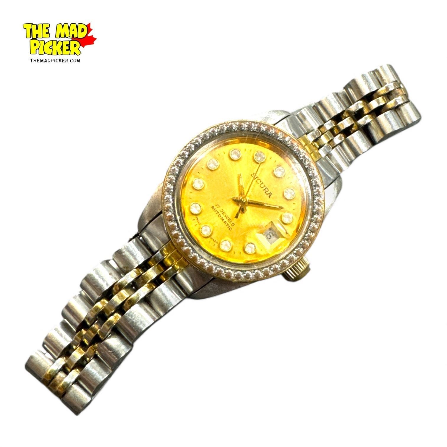 Vintage Sicura 17 Jewels Automatic Women's Watch w Two Tone Stainless Steel Bracelet Working