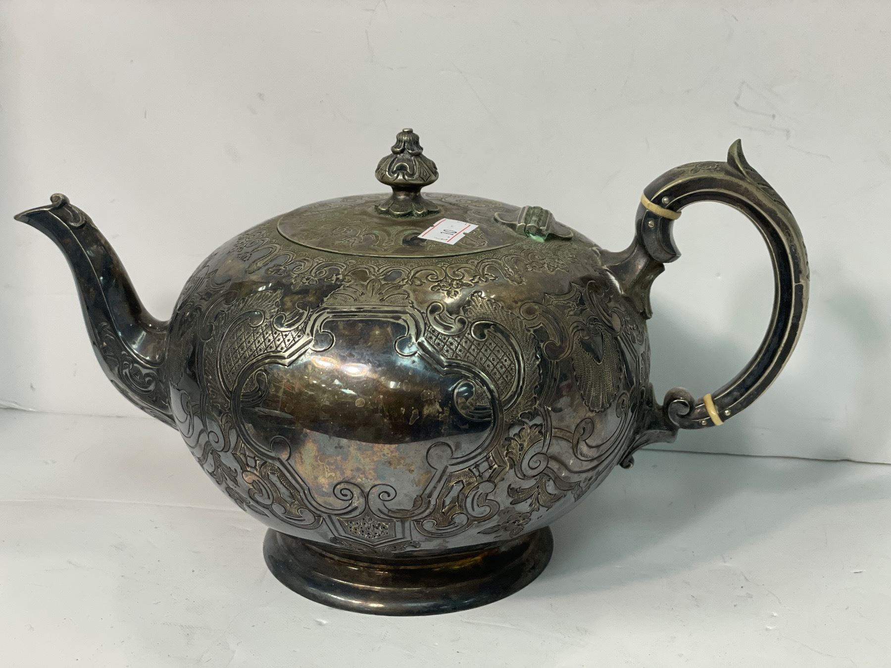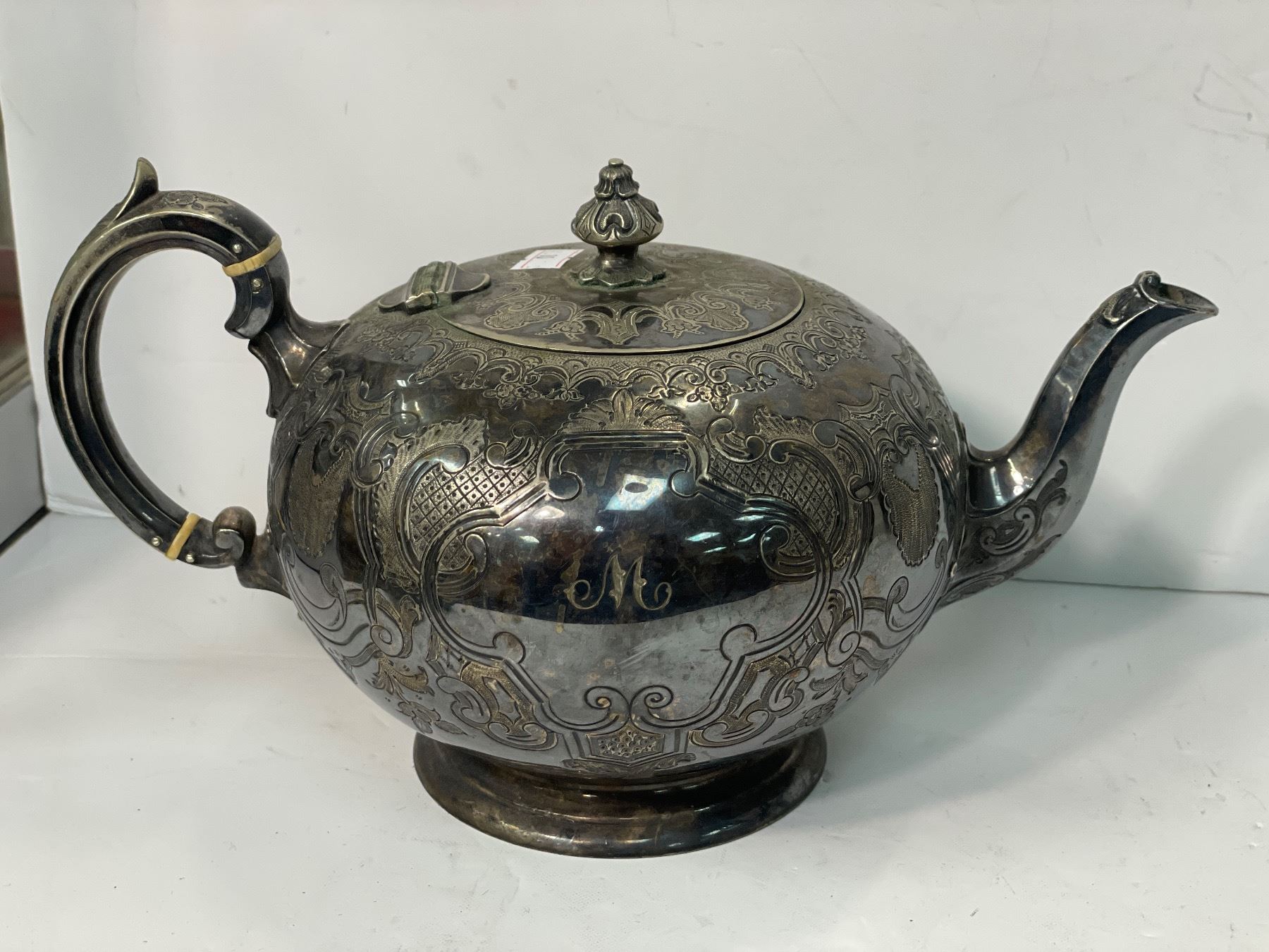 Vintage Silver Plate Engraved Teapot With Initial "M"