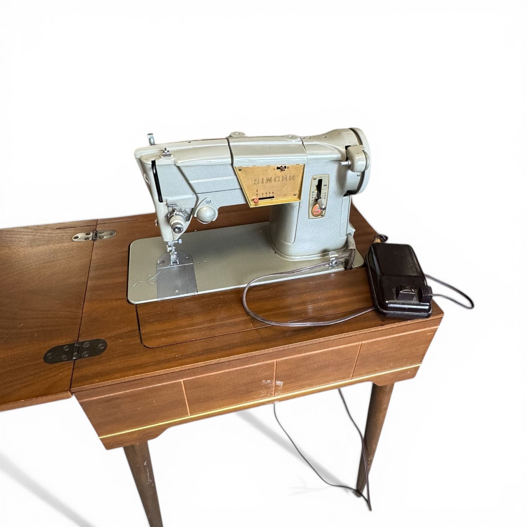 Vintage Singer Sewing Machine in Stand with Electric Foot Pedal