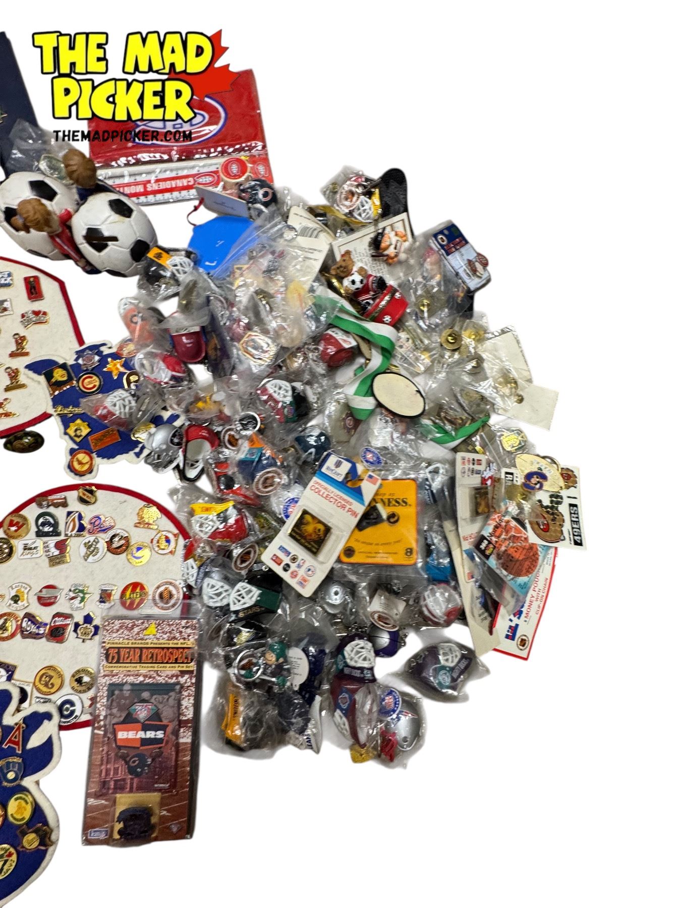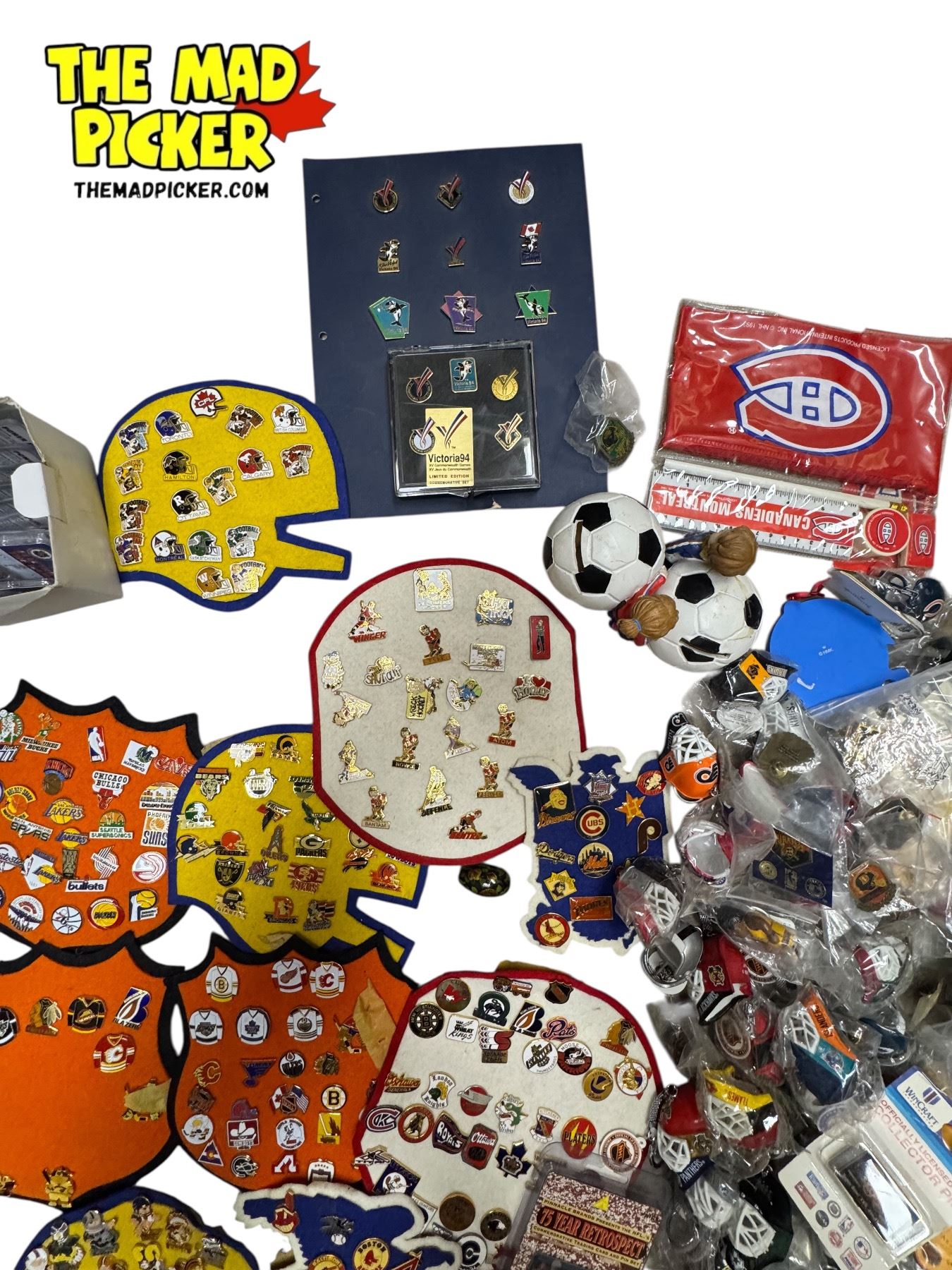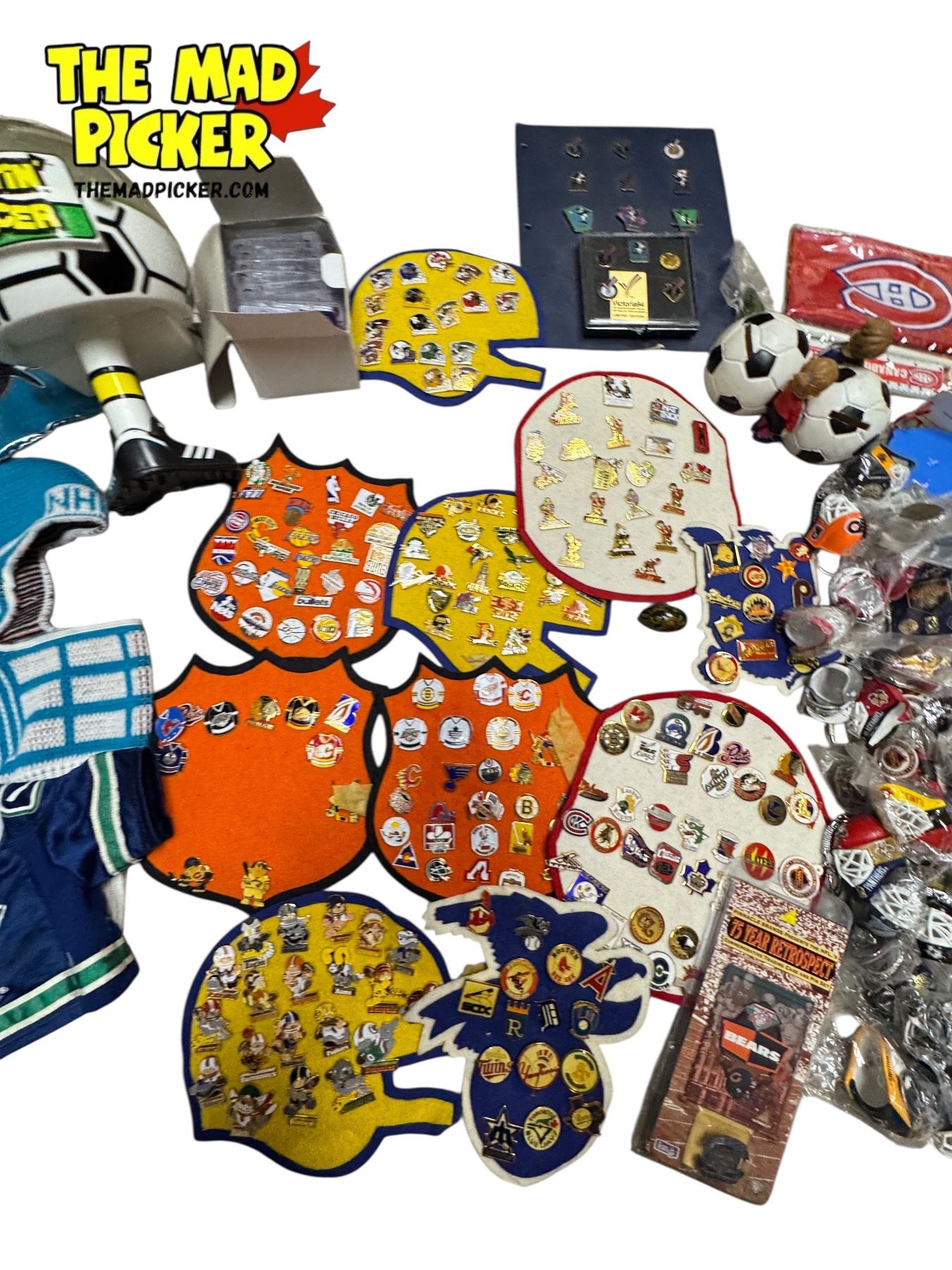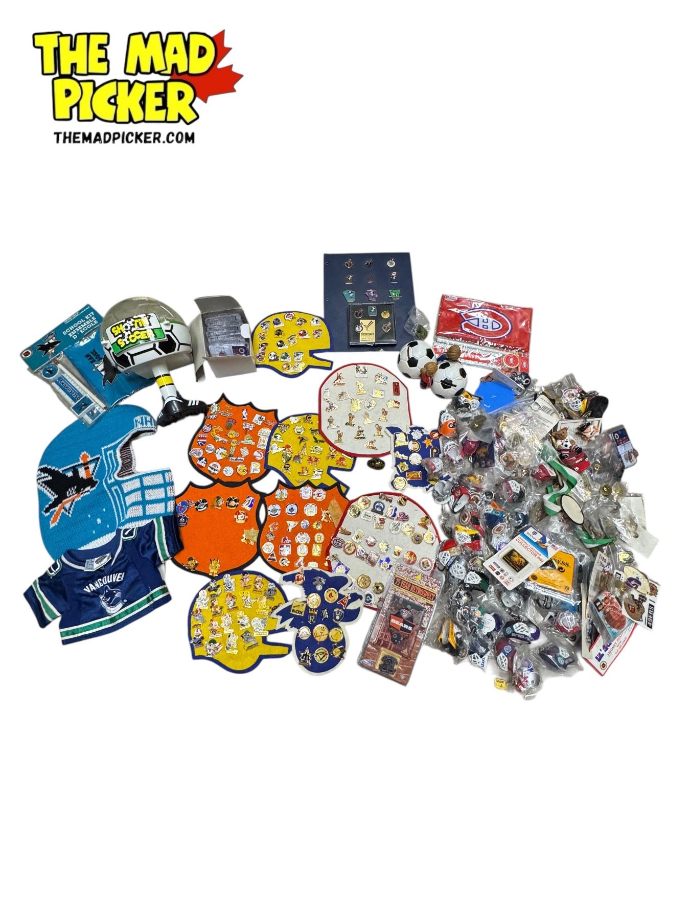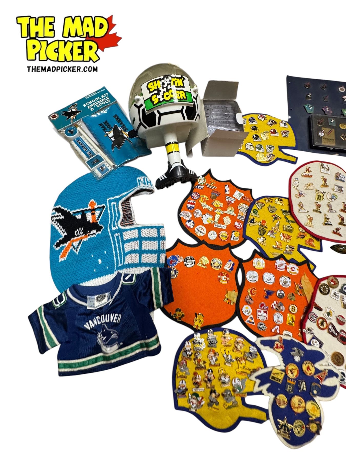 Vintage Sports Collectibles: Shootin Soccer Game, Pins, San Jose Sharks Mask, & More
