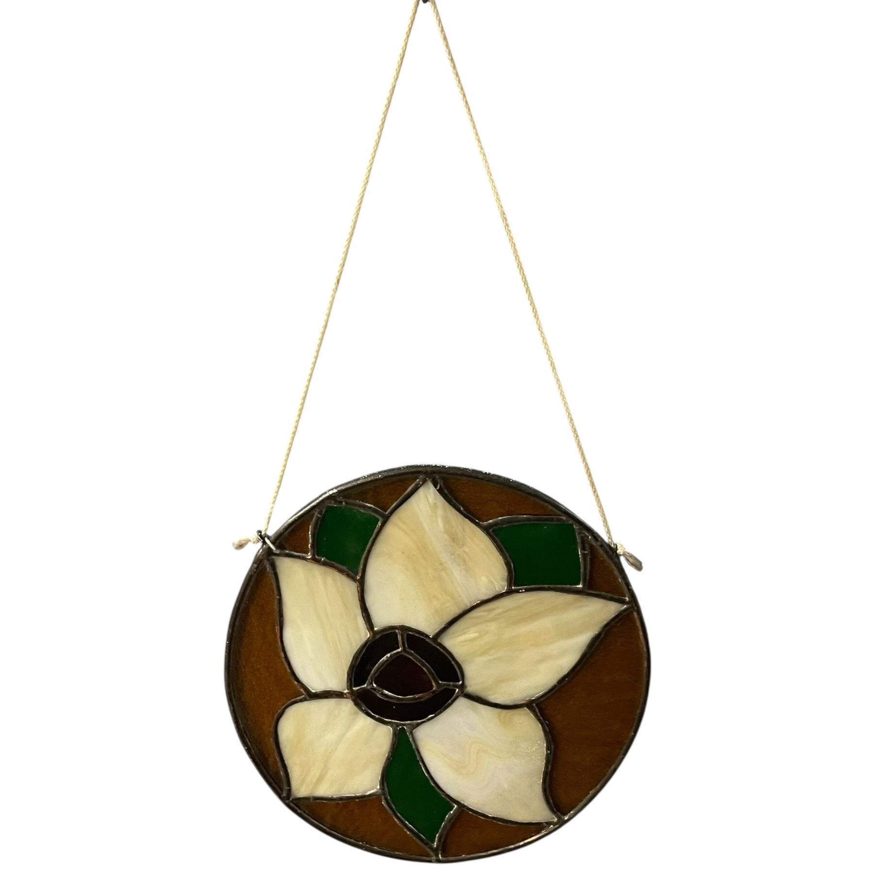Vintage Stained Glass Flower Window Hanger 7.5" Diameter