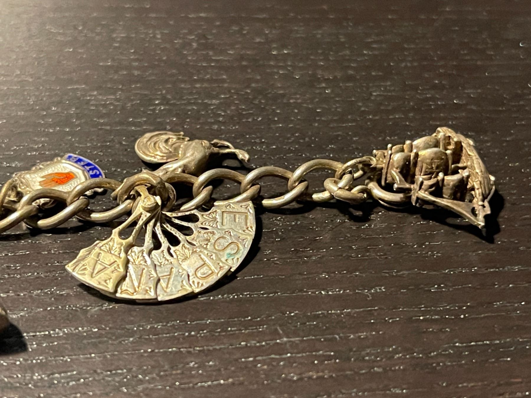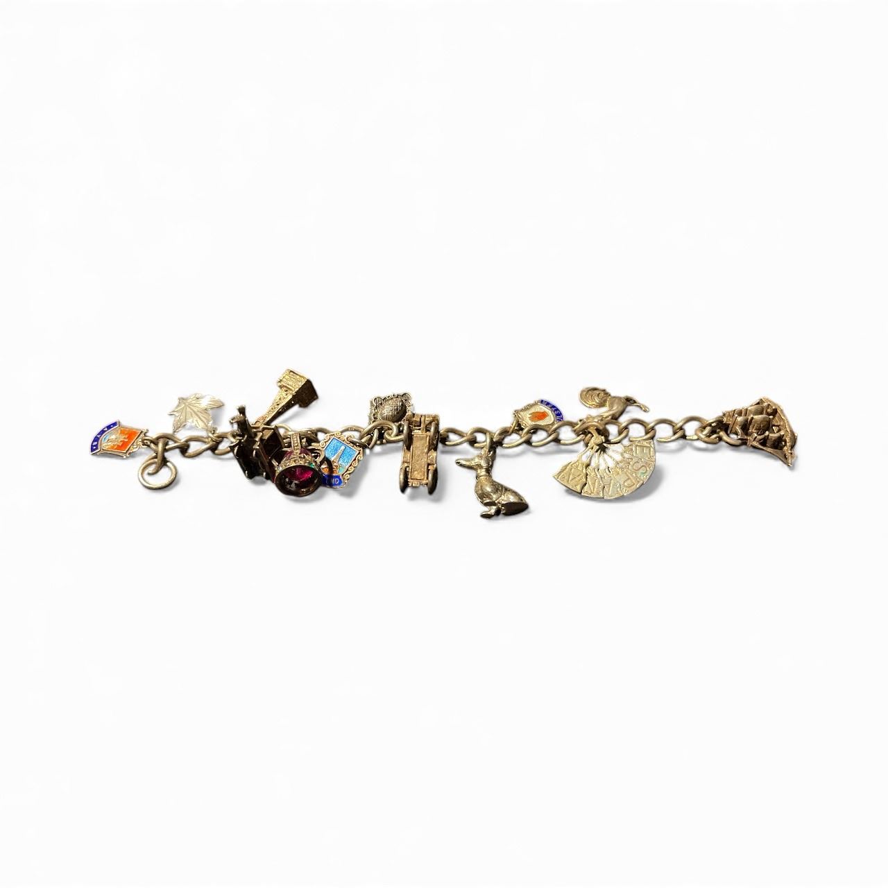 Vintage Sterling Silver Charm Bracelet with 12 Charms - Total weight: 45.5 grams