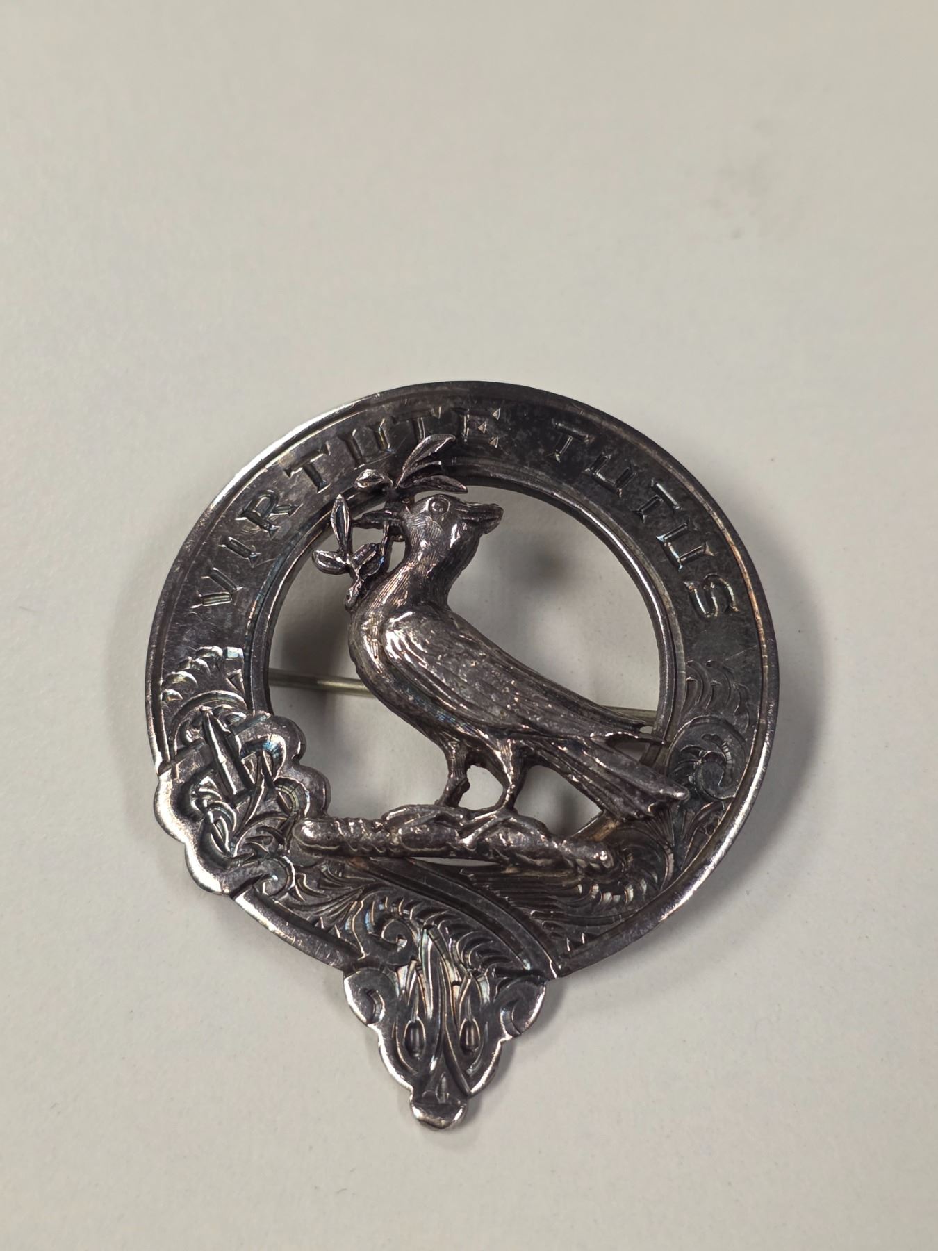 Vintage Sterling Silver "Clan Blair of Balthayock" Cap Badge/Brooch - (45 x 54mm) - Weight: 24 grams