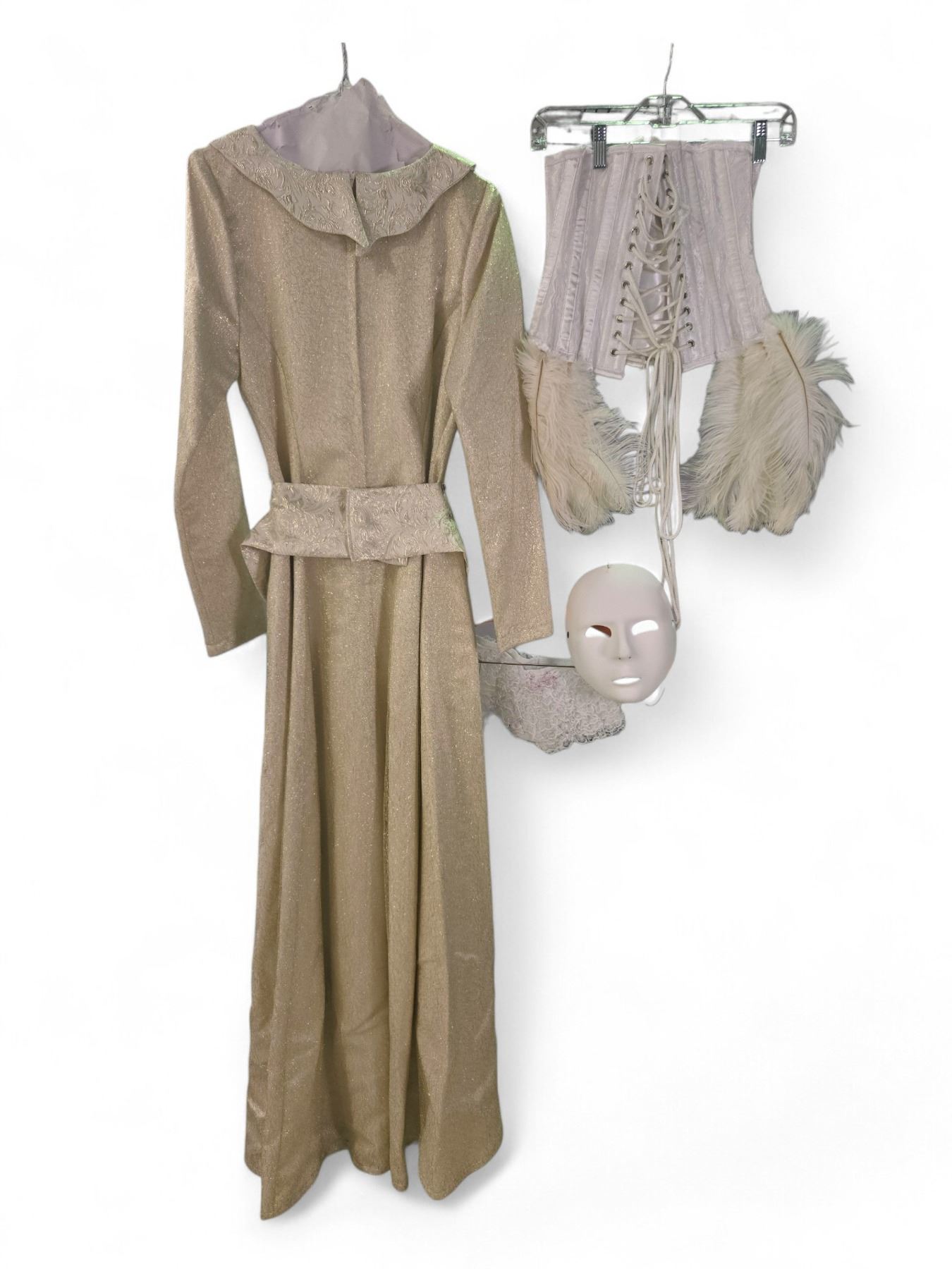 Vintage-Style Gold Dress with Corset & Accessories - Film/TV Wardrobe Set